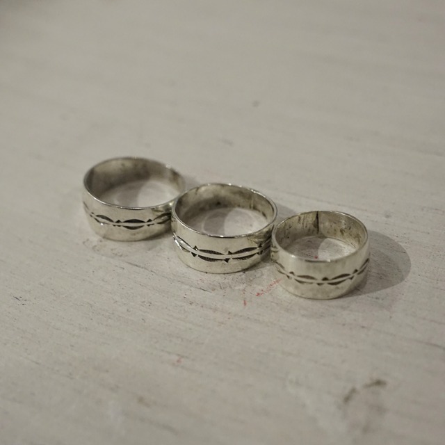 青の民と呼ばれるサハラ砂漠周辺で暮らす遊牧民"トゥアレグ族"の伝統的なシルバージュエリーが入荷致しました。 こちらは本場アフリカ西部のニジェール地方で現代まで技術を引き継ぐ職人によって生産された個体になります。 トゥアレグジュエリーの1番の特徴は、使用される銀の純度。 銀の含有量が非常に高くほぼ純銀に近い"トゥアレグシルバー"と呼ばれる素材を使用することで生まれる独特の柔らかさ、美しい光沢が大変魅力的です。 元々はキャラバンのお守りとして製作されていたもので、旅の途中で迷わないための魔除け、襲撃にも負けないまじないなどの意味を持つとされ、遊牧民として生きてきた歴史そのものが刻まれております。 こちらはやや幅のあるバンド型リング。 表面には連続する刻線が施され、シンプルながらも陰影によって立体感が生まれています。 程よいボリューム感があり手元の主役として使いやすいモデル。 高純度銀のため指に馴染みやすく、着用を重ねることで表情の変化も楽しめる一本です。 大量生産では決して生まれない時間と手仕事の痕跡がそのまま形になったジュエリーです。 この機会に是非お試しください。 Size: 10号,17号,19号 ◎こちらの商品は送料無料にて 発送させて頂きます。 ※一部例外を除き、 基本的に返品、交換は受け付けません。 ※ 商品についてのご質問、お問い合わせは お問い合わせフォームまで。