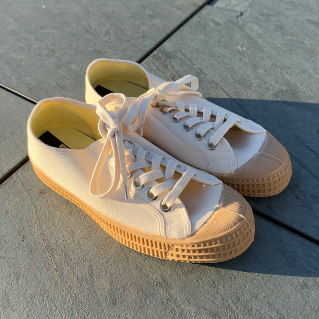 NOVESTA”は1939年創業、自社工場でキャンバス×ナチュラルラバーをヴァルカナイズ製法で仕立てる希少なヨーロッパスニーカーブランドです。 無駄を削ぎ落としたミニマルな佇まいと、確かな素材・職人の手仕事によるディテールが魅力。 日常のスタイルに長く寄り添う一足を求めるなら、選びたいブランドのひとつです。 以下公式サイトからの引用となります。 NOVESTAの代表モデル。 工場の創業当初から残っているミリタリー/ワーク用途で使われていた型をベースとした定番のスニーカー。 耐久性に優れたバルカナイズド製法で作られています。 素材は天然ゴムのソールに綿キャンバス。素朴な味わい。 中敷きを外して洗うこともできます。 アッパーは生成り、ソールは天然ゴムの色を活かしたガムソール仕様です。 ※天然ゴムを利用したモデルのため、左右のソールの色が多少異なる場合がございます。 この機会に是非お試しください。 UPPER: COTTON SOLE: RUBBER LACES: COTTON MADE IN SLOVAKIA ◎当店でご用意しているサイズ以外のサイズもお取り寄せ可能です。 他のサイズをお探しの方はお気軽にお声がけください。 ◎15000円分以上のお買い上げで、 送料が無料になります。 もしよろしければ他のアイテムも 合わせてご覧くださいませ。 ※一部例外を除き、 基本的に返品、交換は受け付けません。 ※ 商品についてのご質問、お問い合わせは お問い合わせフォームまで。