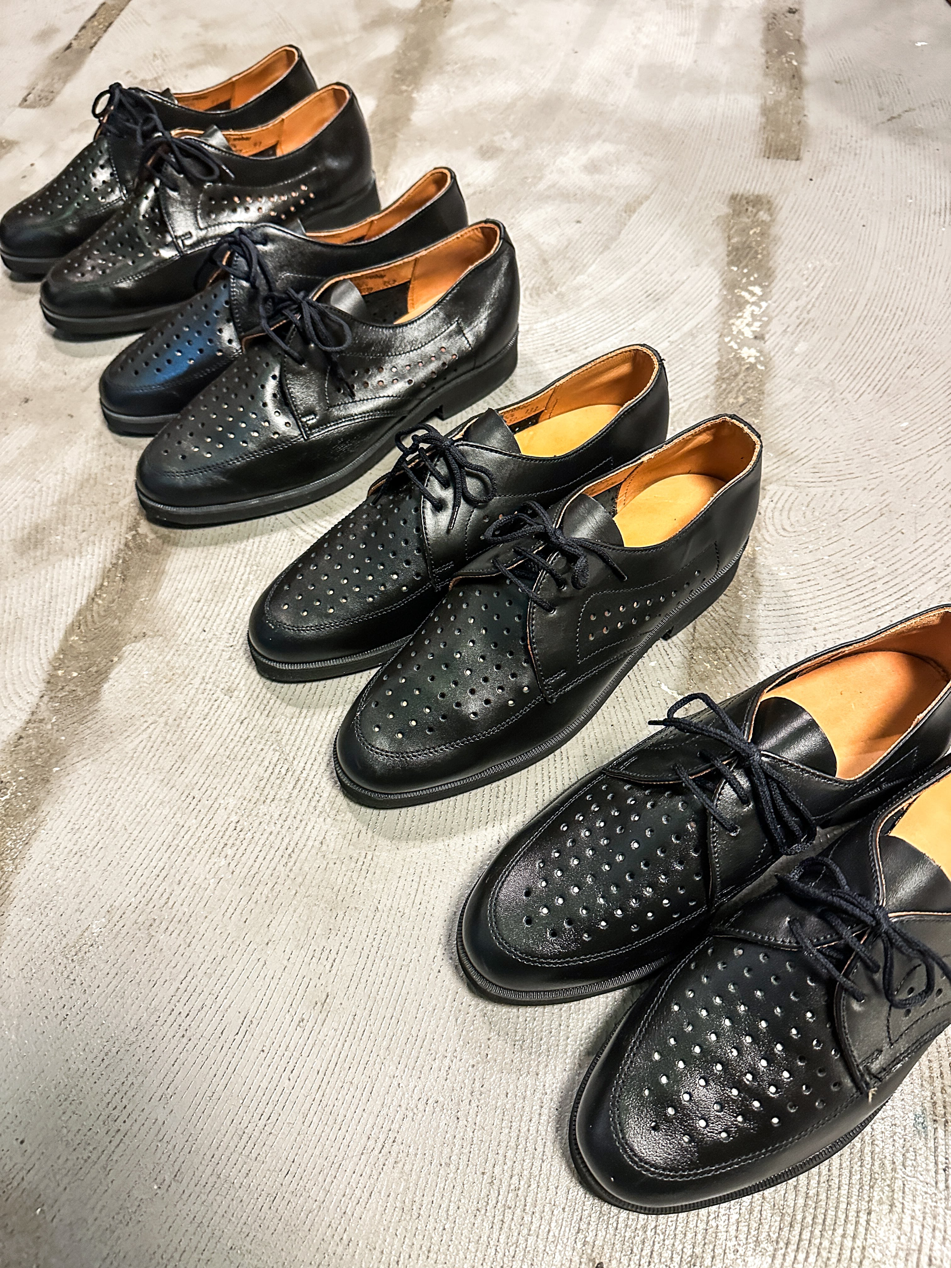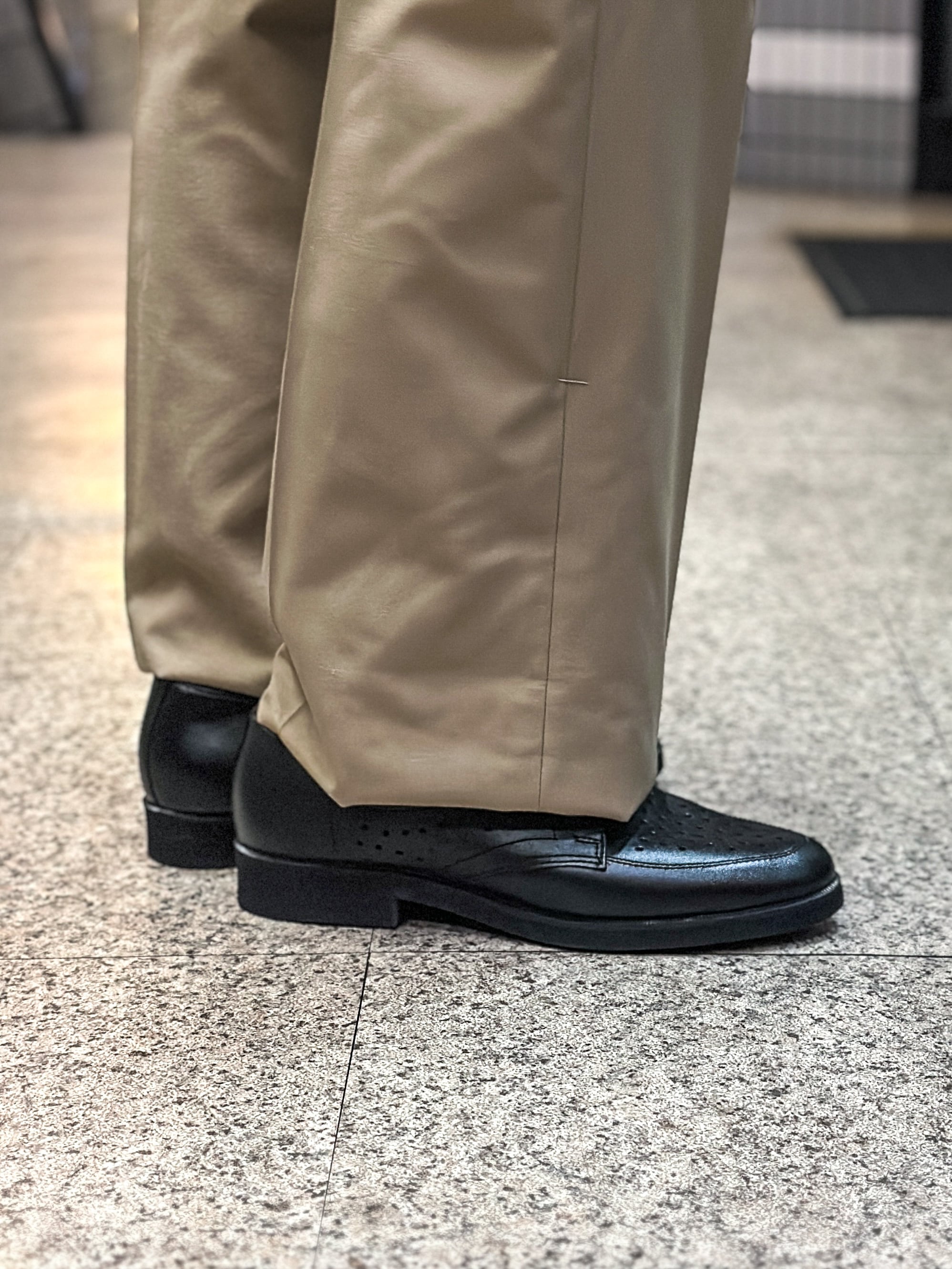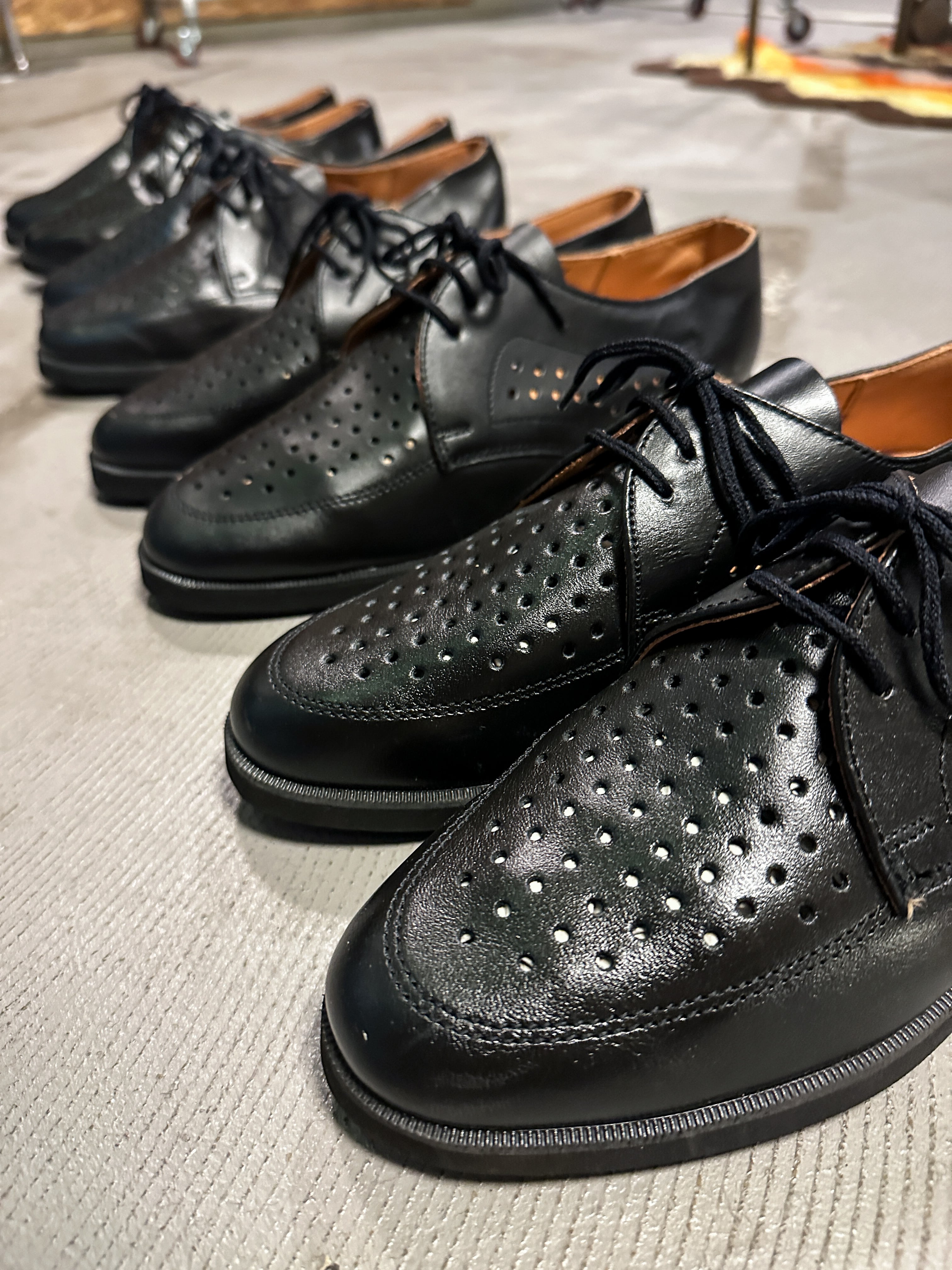 デザインとしての面白さはもちろんのこと、これにより通気性の良さと柔らかさを実現しておりこれからの季節にこそおすすめしたい一足です。