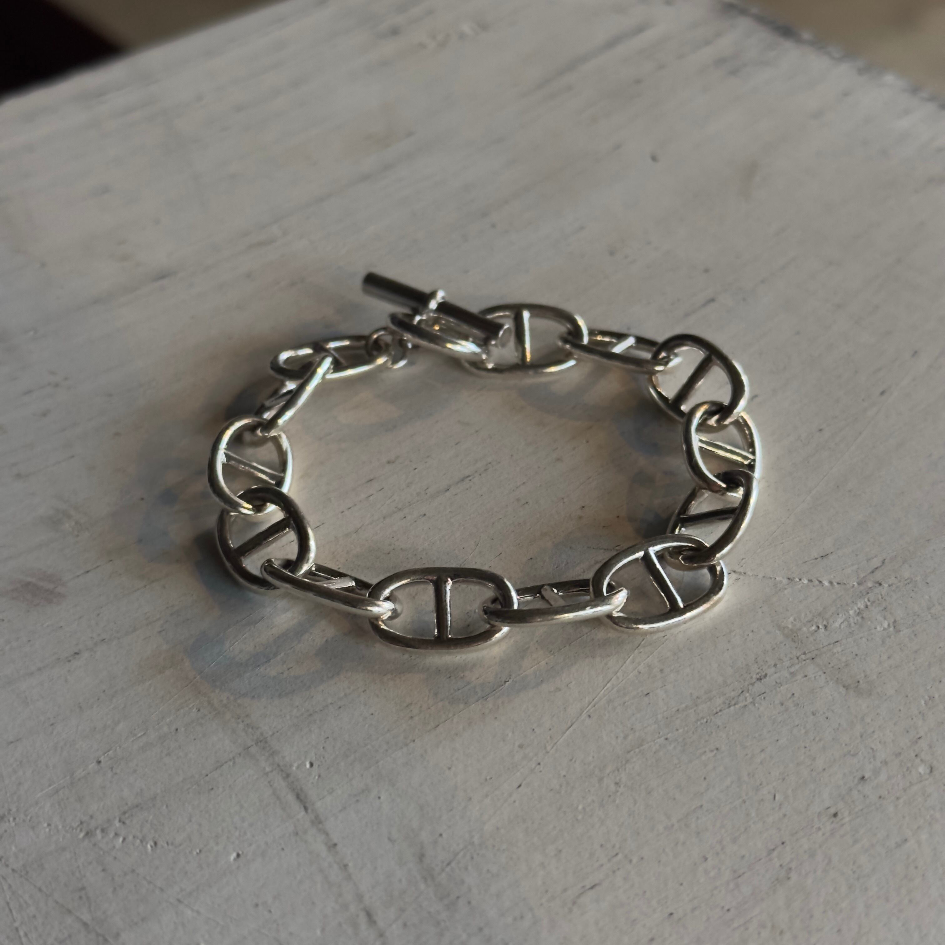チェーンの形状は船を留めておくために使われる"錨の鎖"がモチーフになっており、通称アンカーブレスレットと呼ばれております。