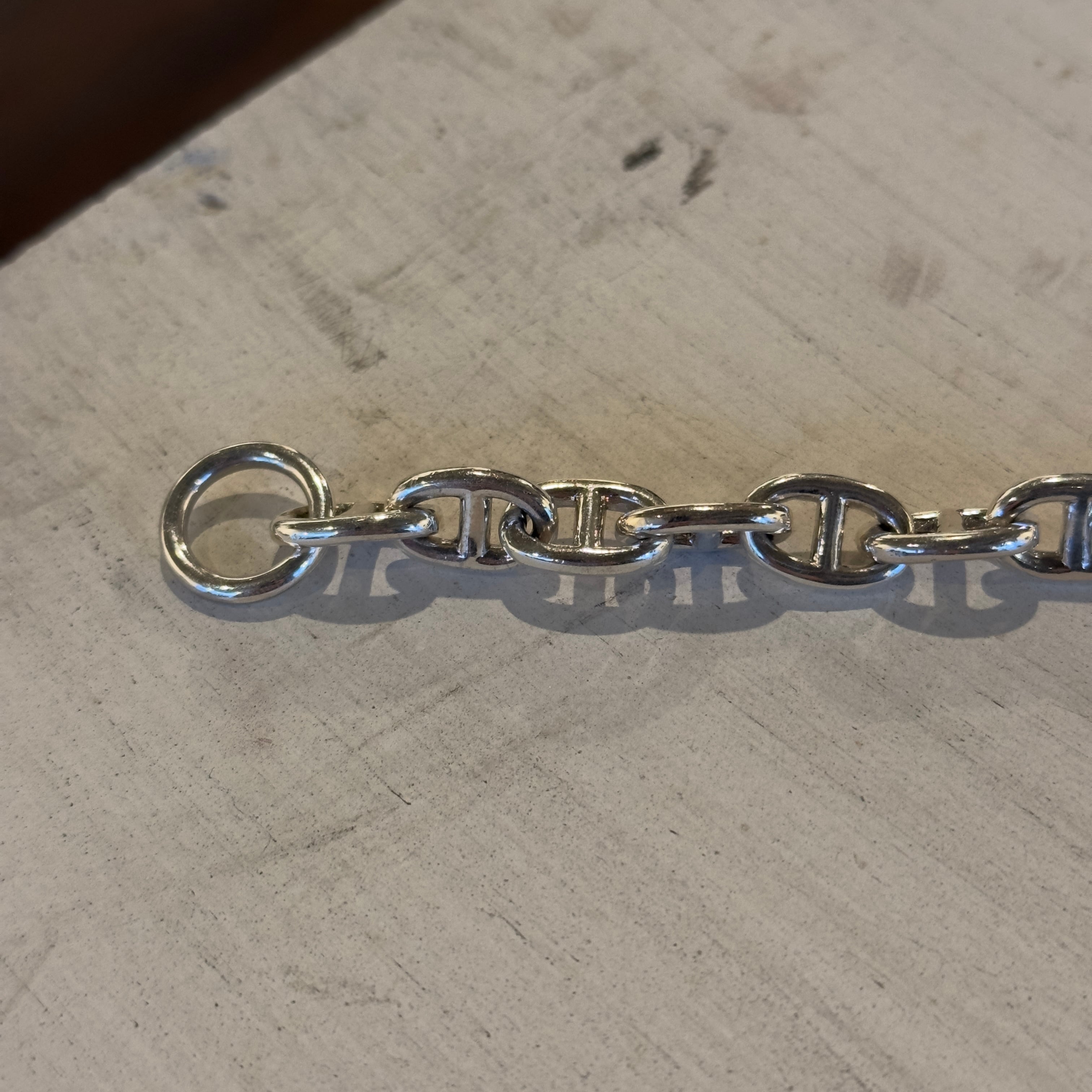 チェーンの形状は船を留めておくために使われる"錨の鎖"がモチーフになっており、通称アンカーブレスレットと呼ばれております。