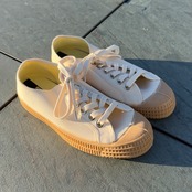 アッパーは生成り、ソールは天然ゴムの色を活かしたガムソール仕様です。