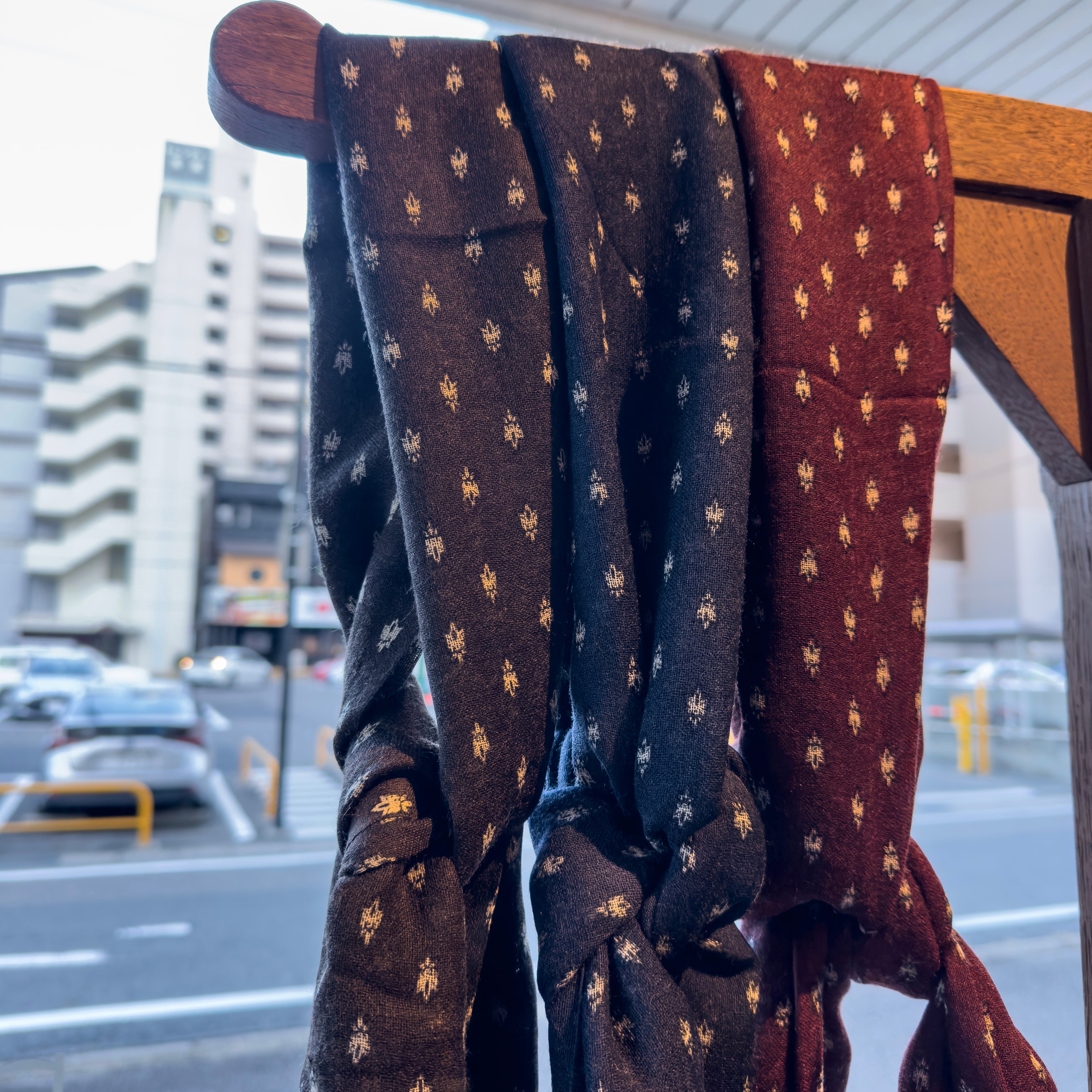 それぞれが落ち着いたトーンの中に映える細かな模様が秋冬の装いにほどよい彩りを添える一本です。