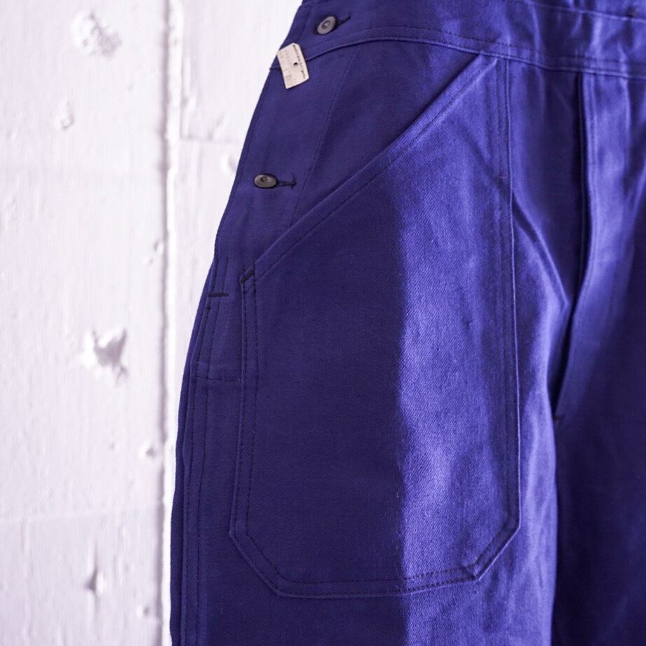 素材には、当時のフランスらしい深い インクブルーのコットンツイル を採用。