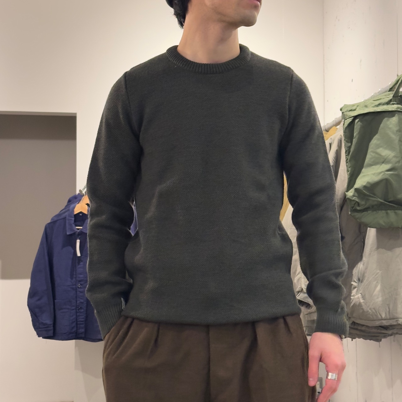 [NITTO KNITWEAR] YOURI" Merino Wool Crew Neck Sweater(Olive) made in France
