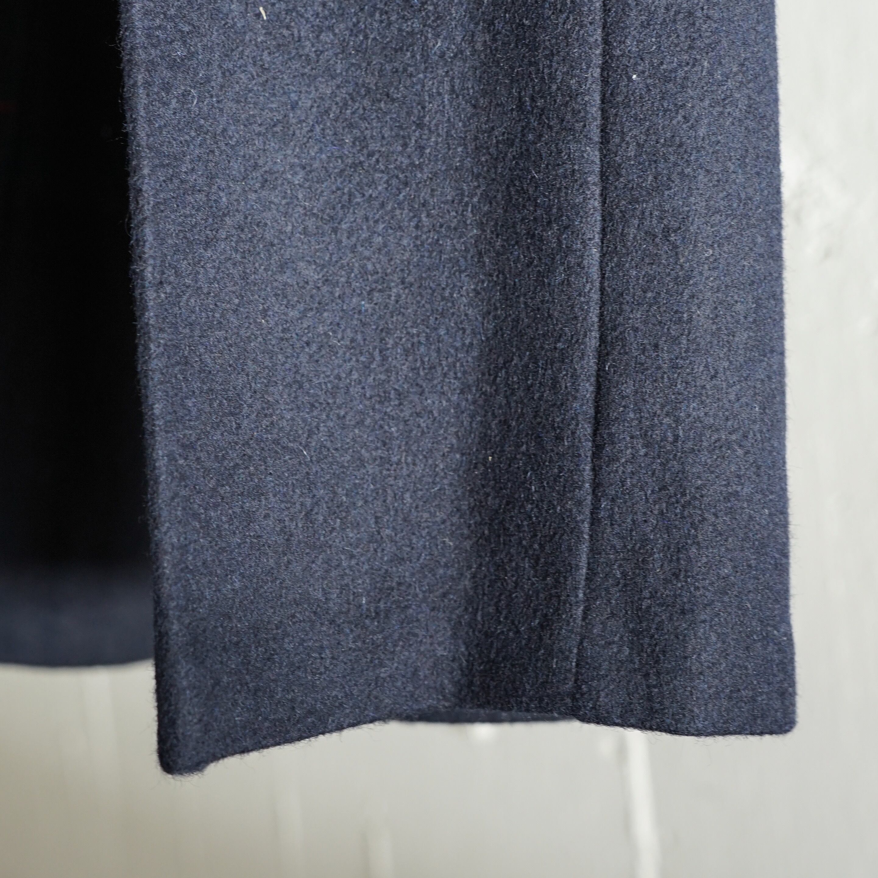 生地には高密度に織られたダークネイビーウール生地を使用。