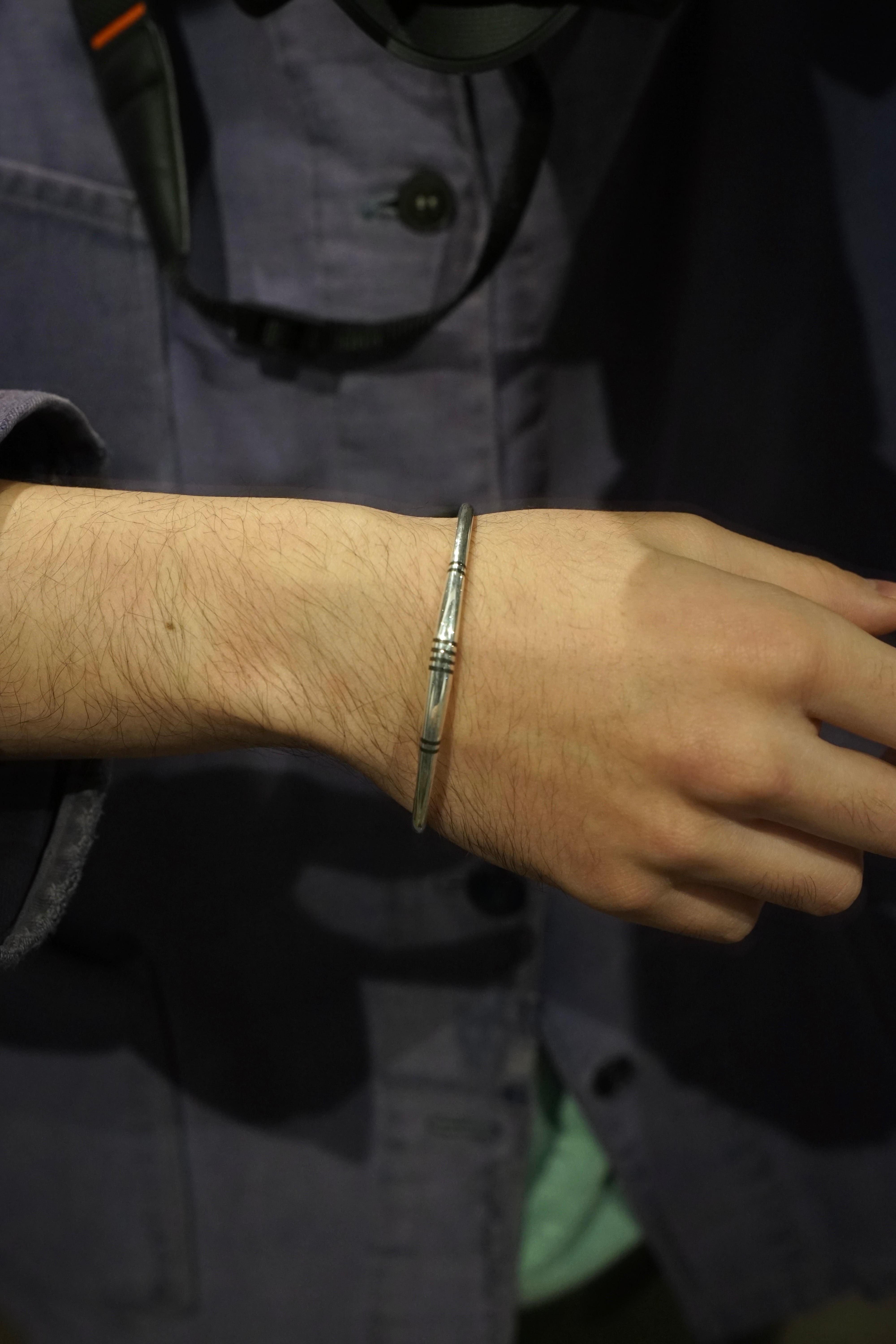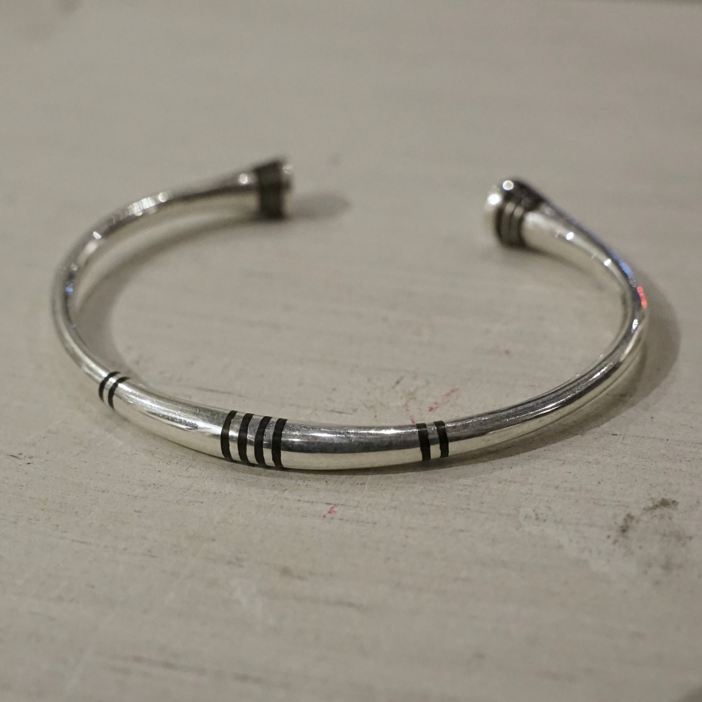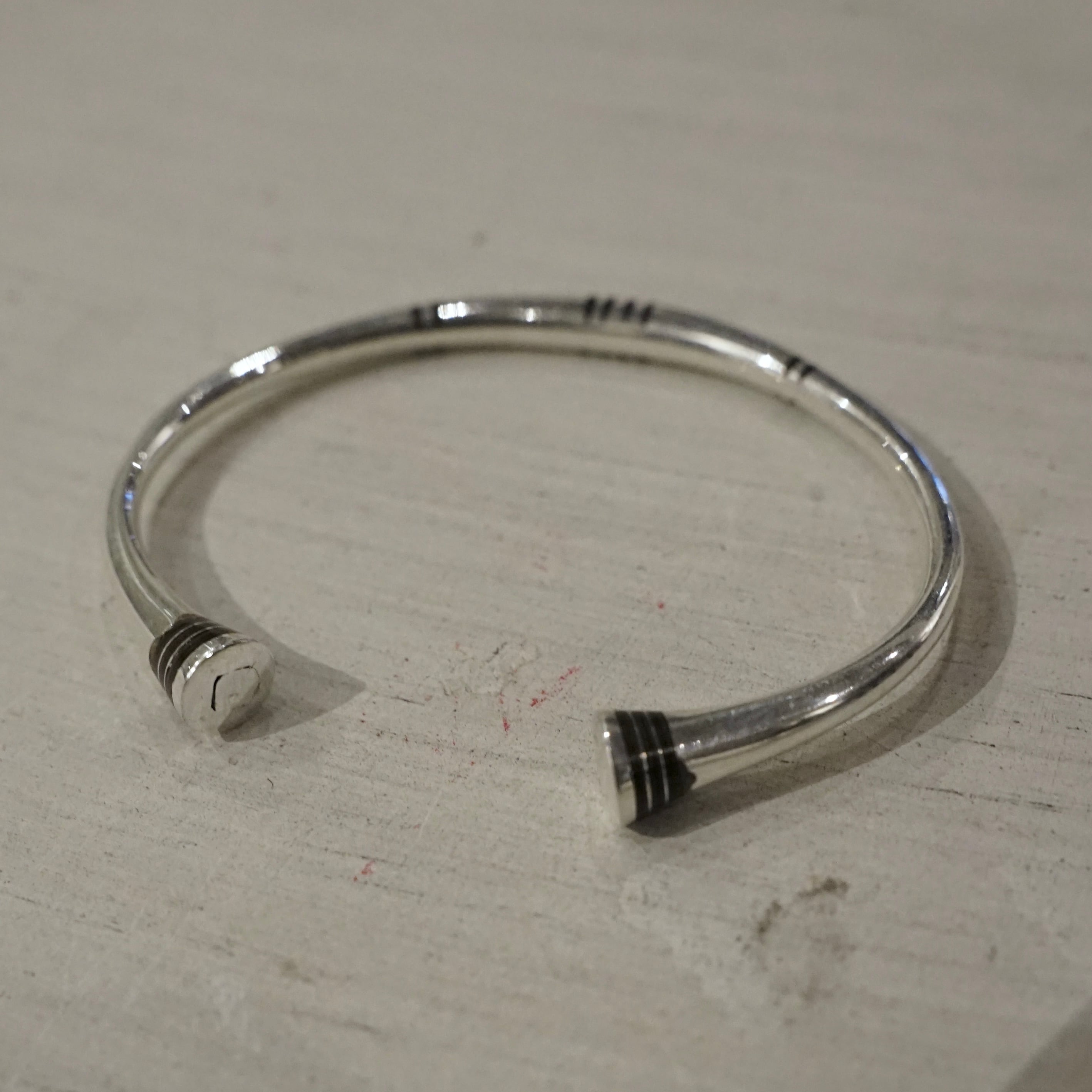 単調になりがちな丸線バングルにリズムを与える構造になっております。