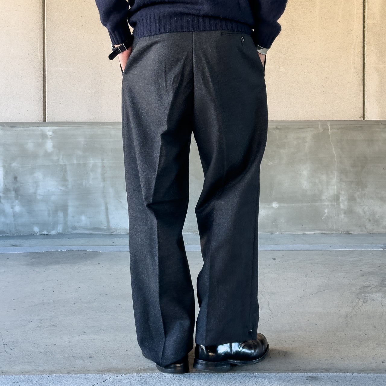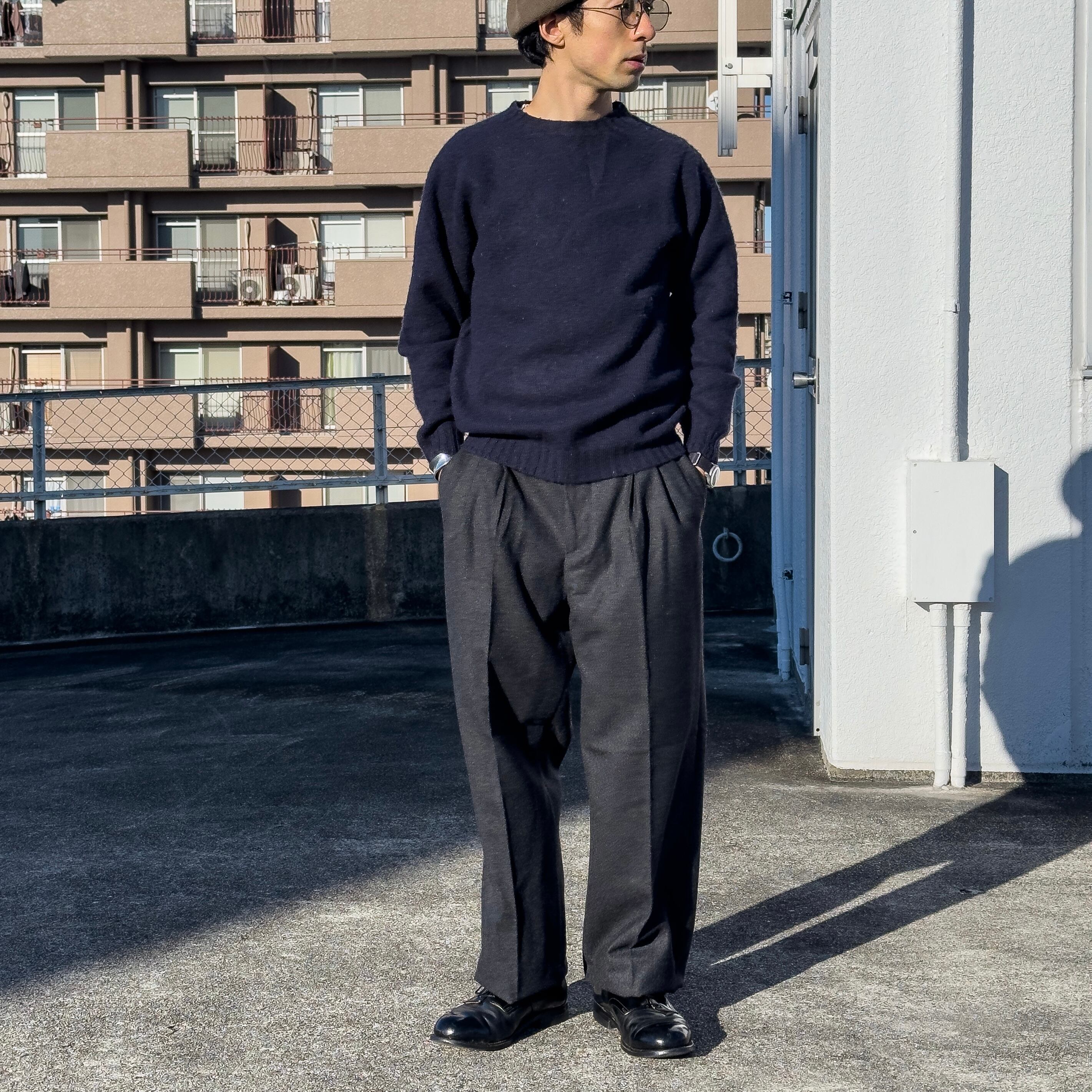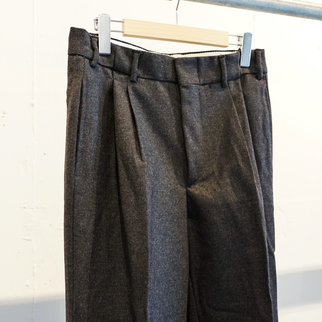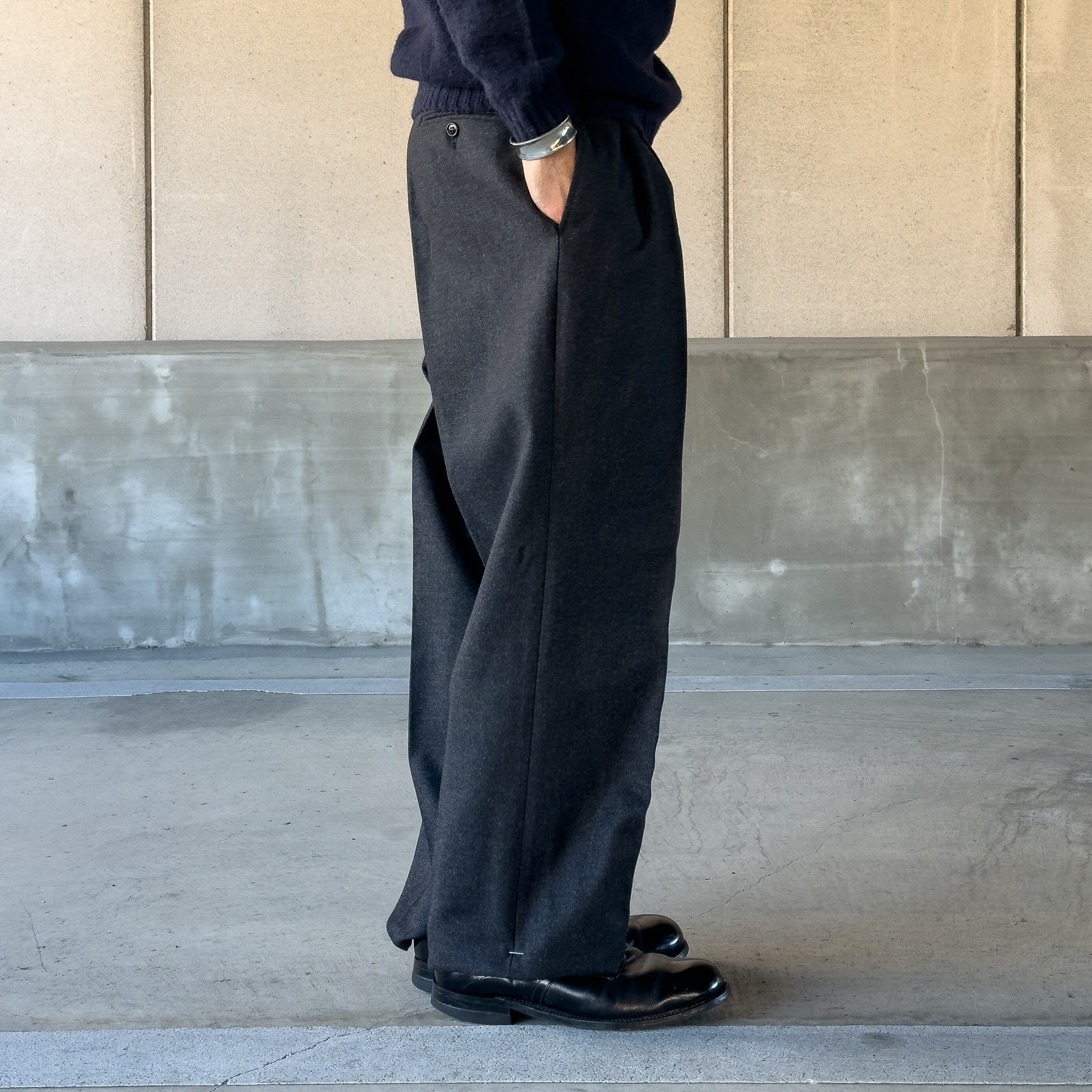 ワークパンツやドレスパンツのどちらにも偏らず、日常のスタイリングに取り入れやすい一本となっています。