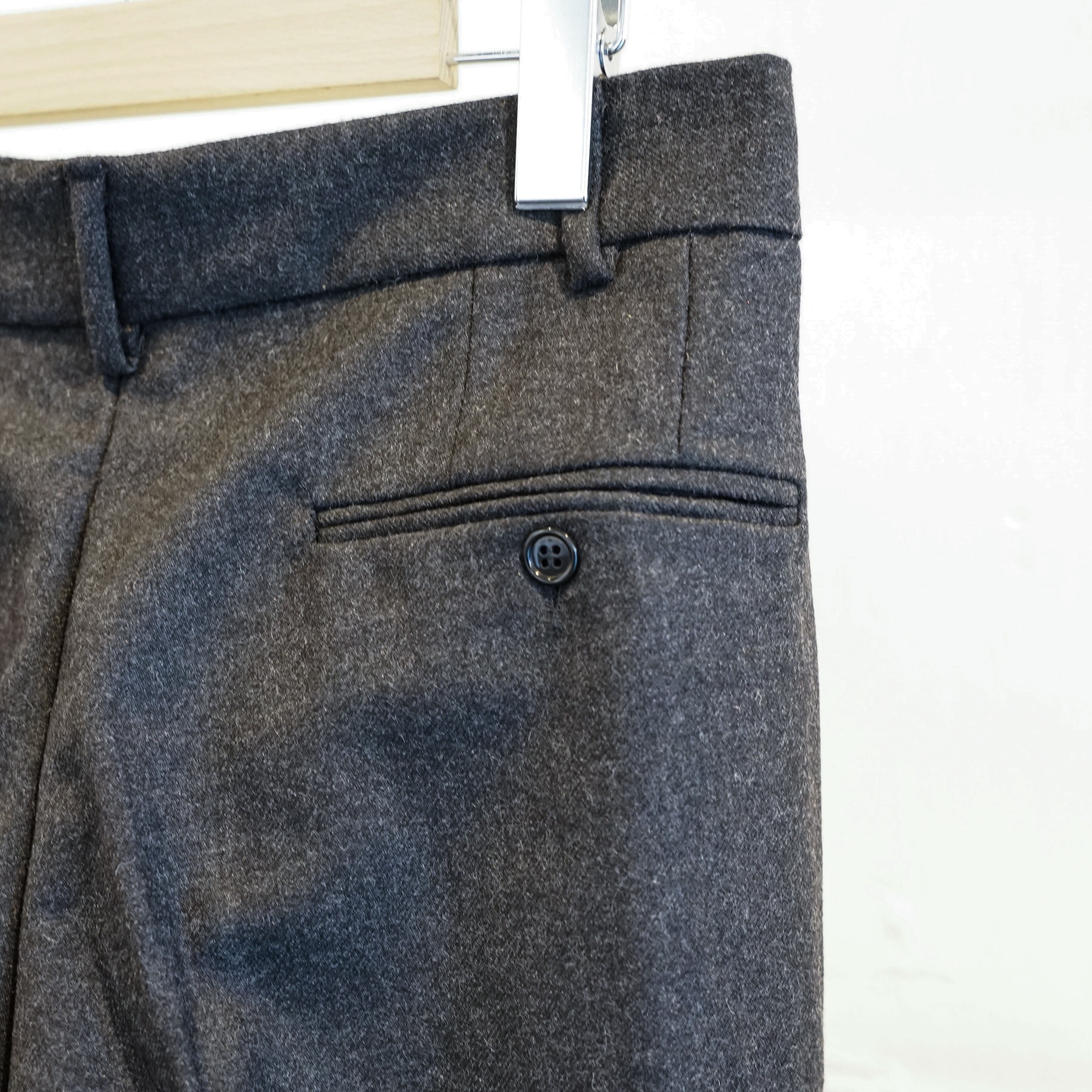 ディテールは非常にミニマルでサイドにスラッシュポケット、片側バックポケットのみ。