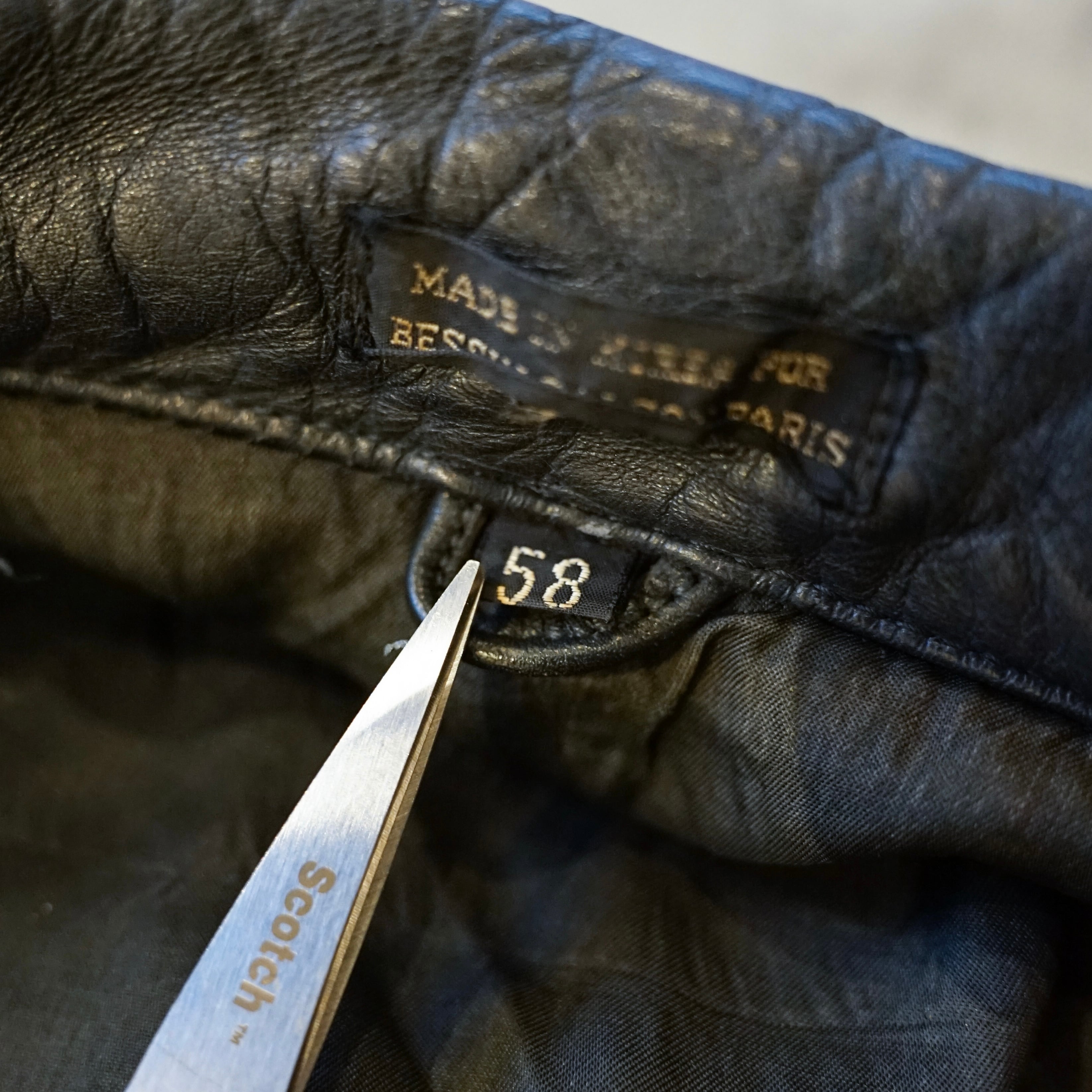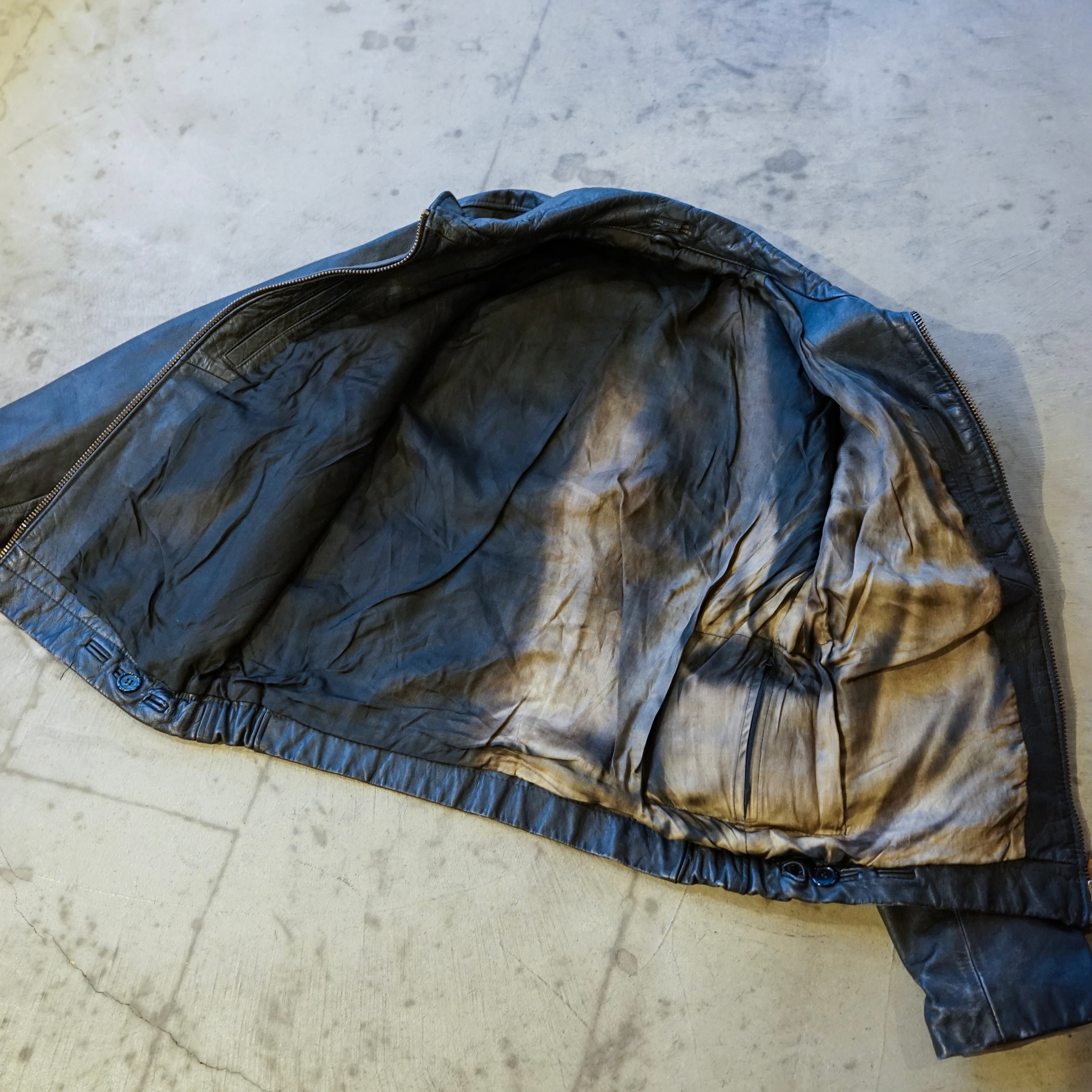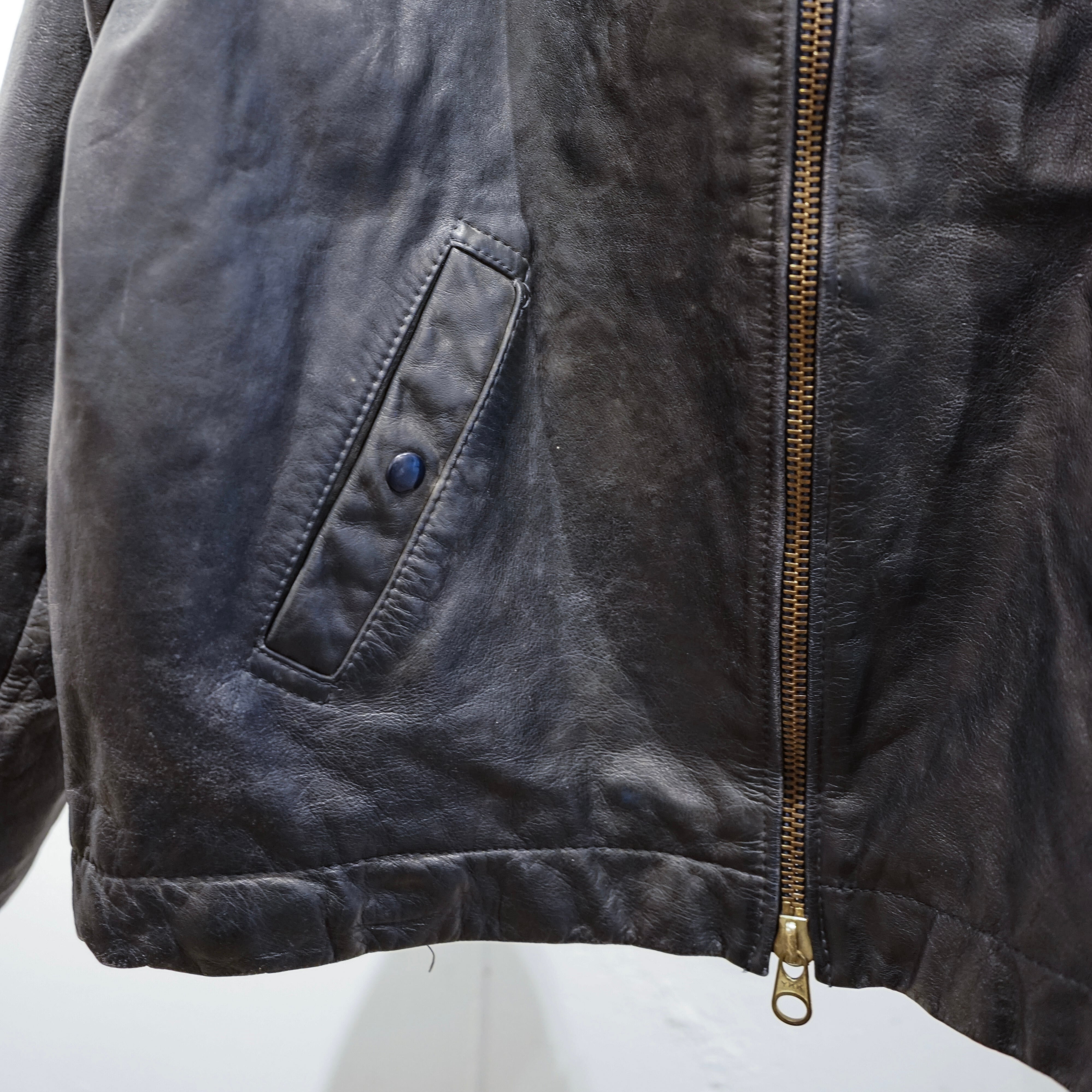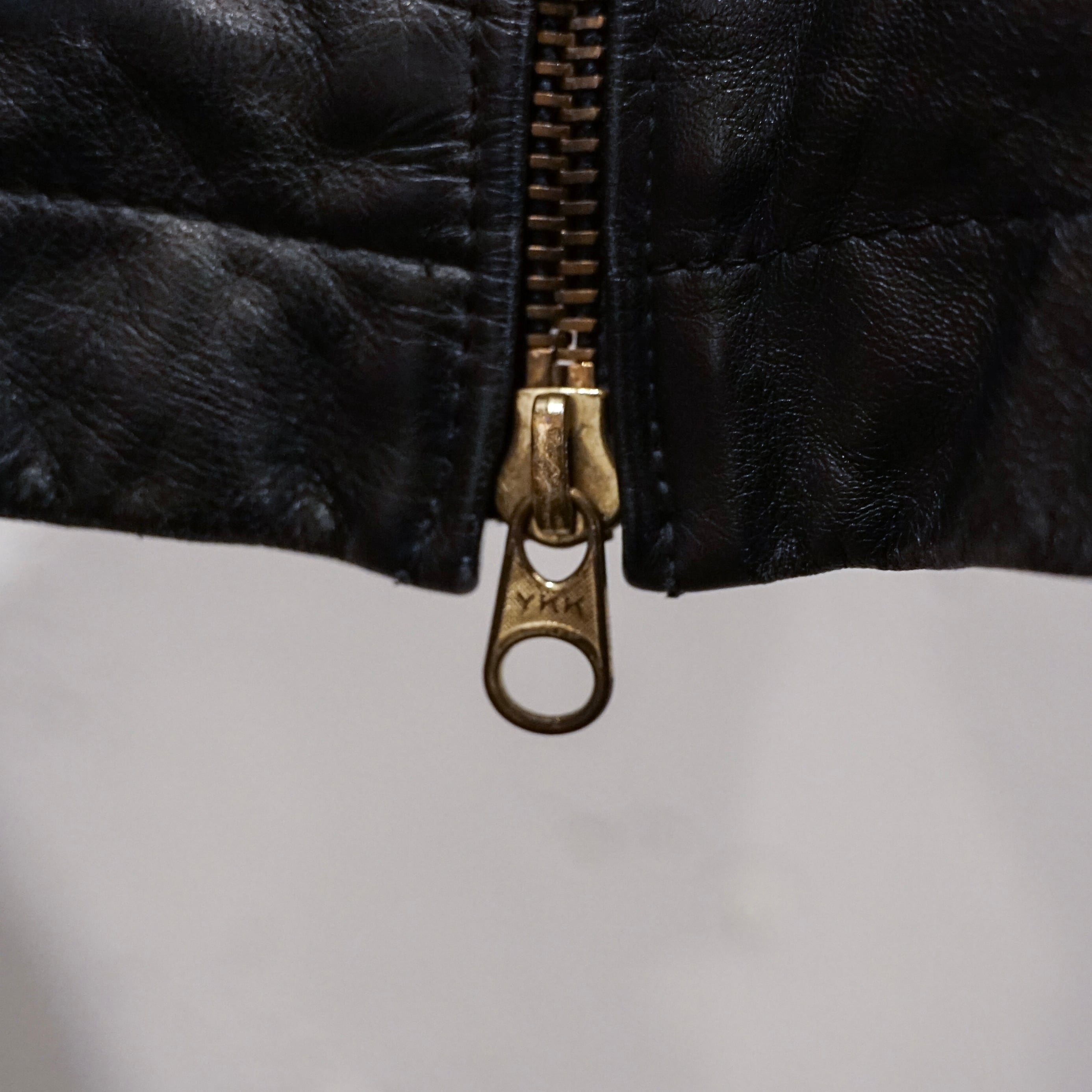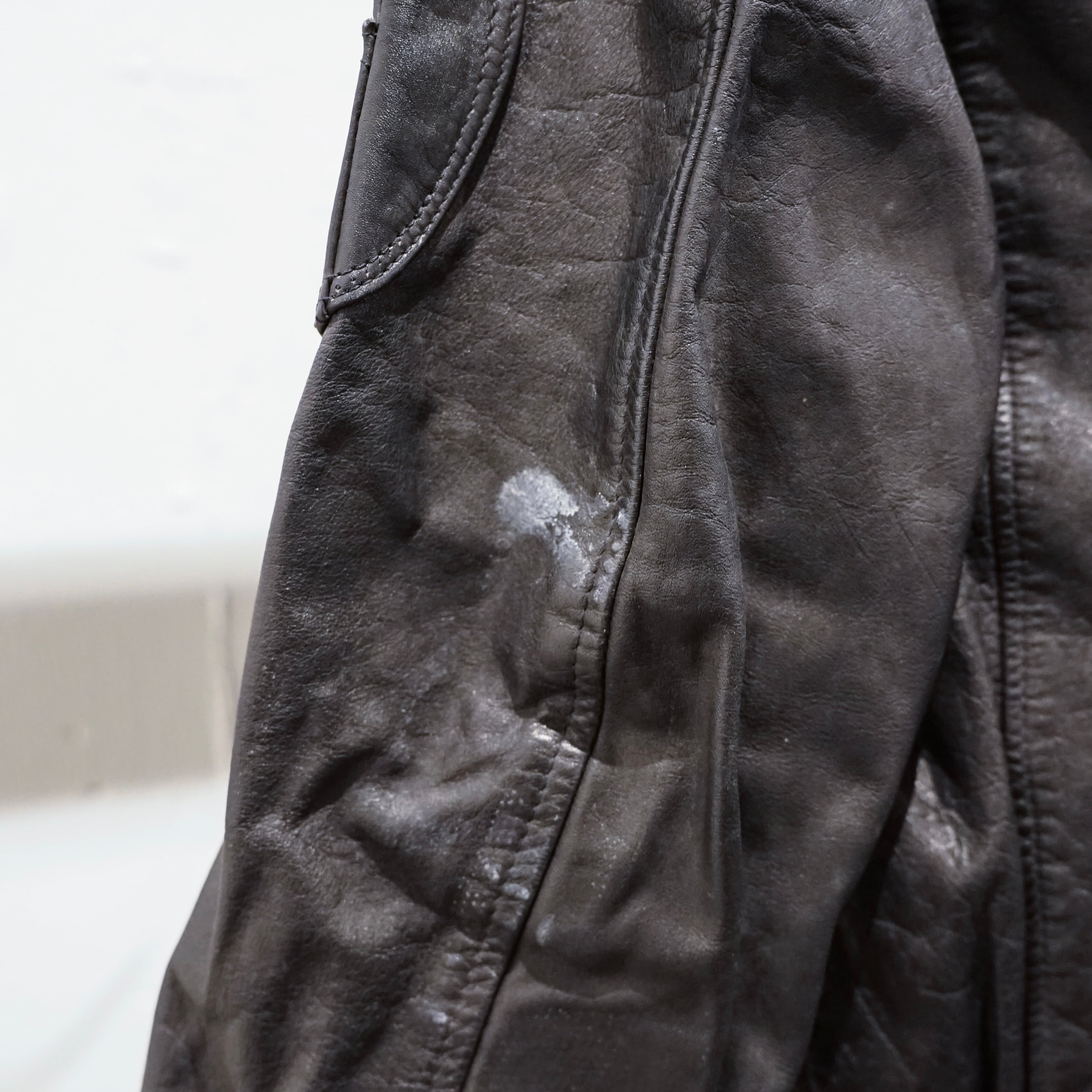 この当時のレザーは現行のファッションレザーとは異なり、耐摩耗性や防風性を最優先に考えられた実用素材で、長年の使用によって表面には独特のシワや色ムラが生じています。これらは経年劣化ではなく、実際の使用環境を反映した「使用痕」と言えます。