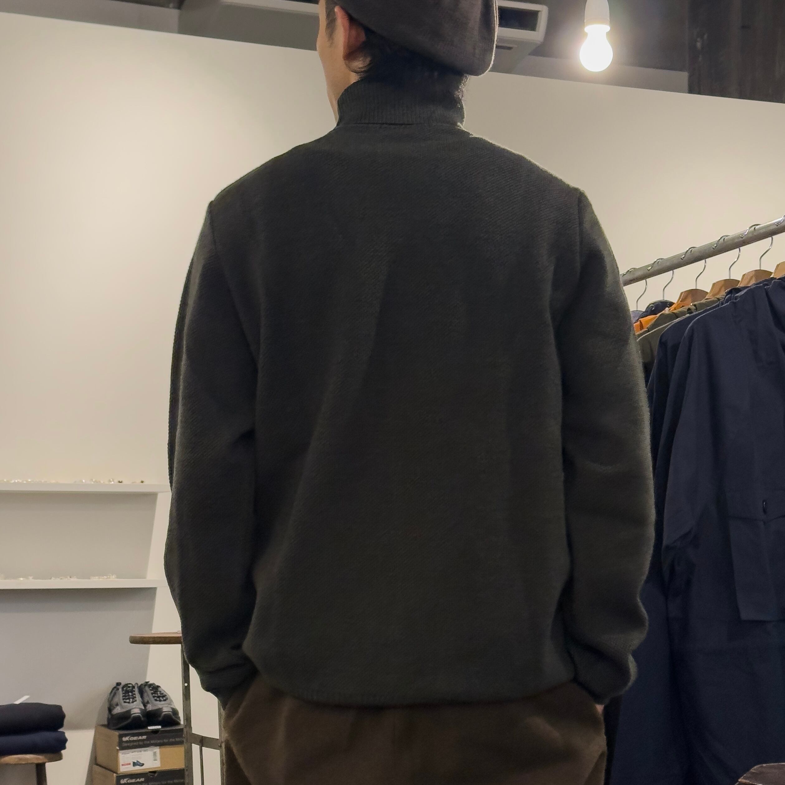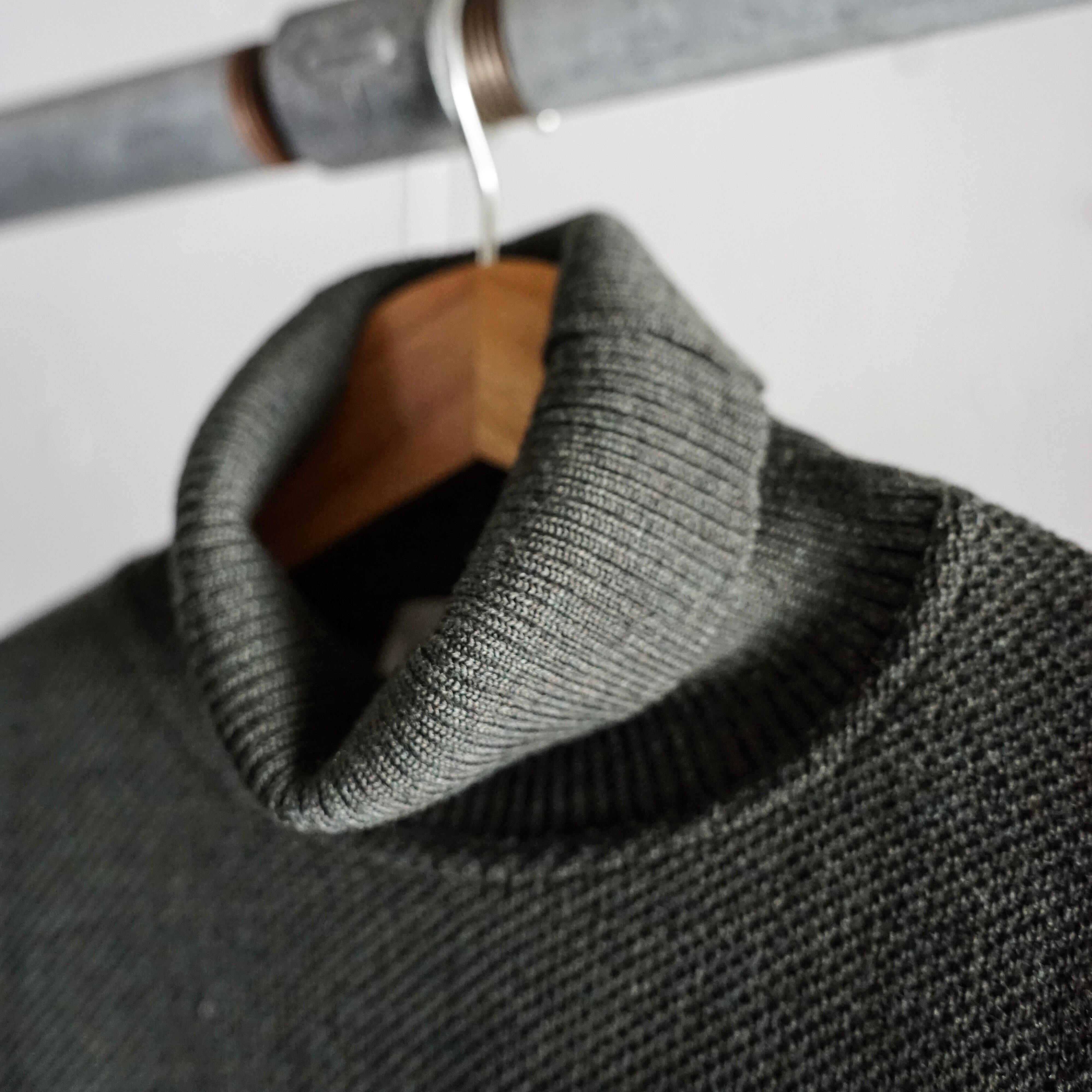 タートルネックのため首元では地肌に触れることになりますが、これによって余計にメリノウールの質感の良さを感じて頂けると思います。