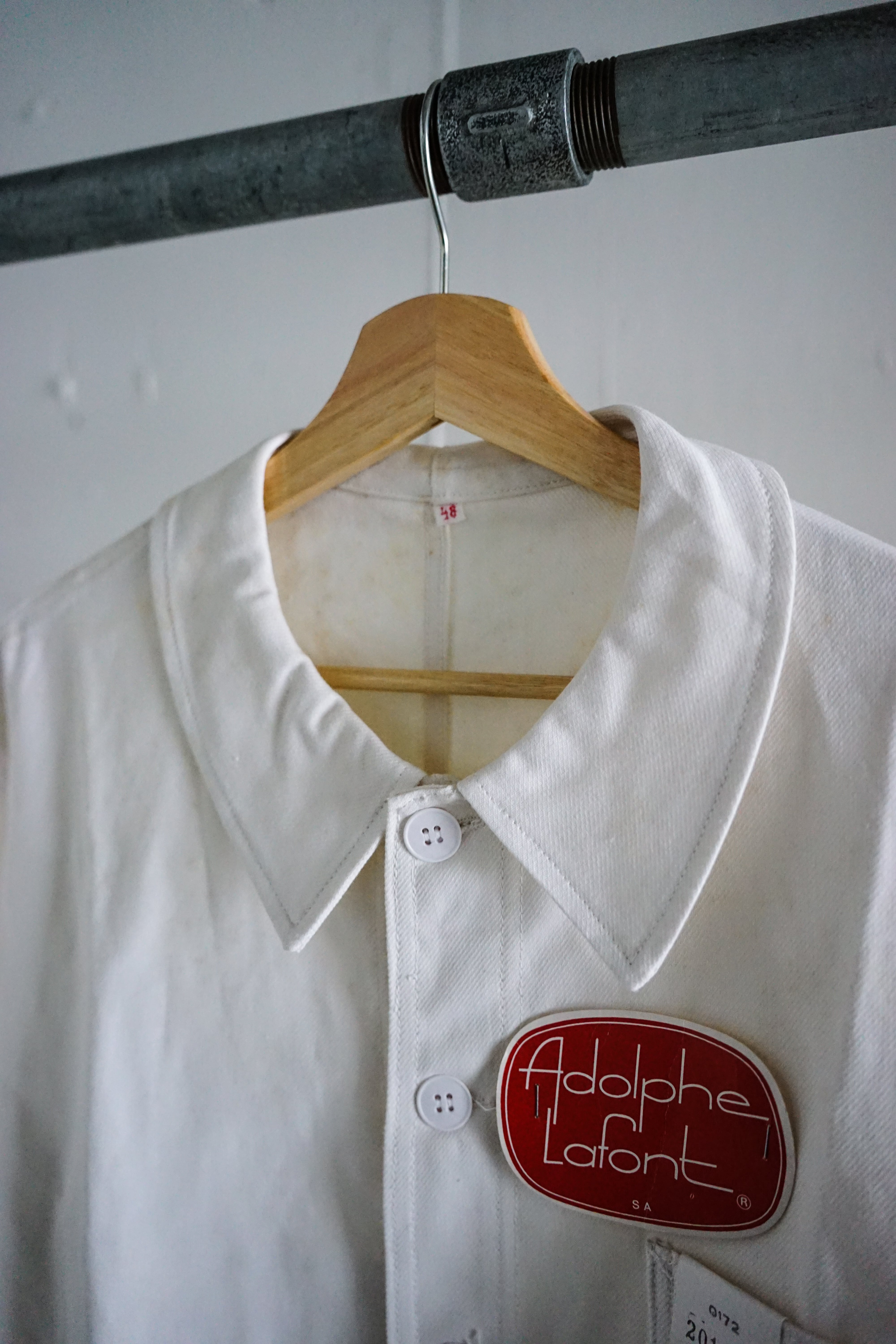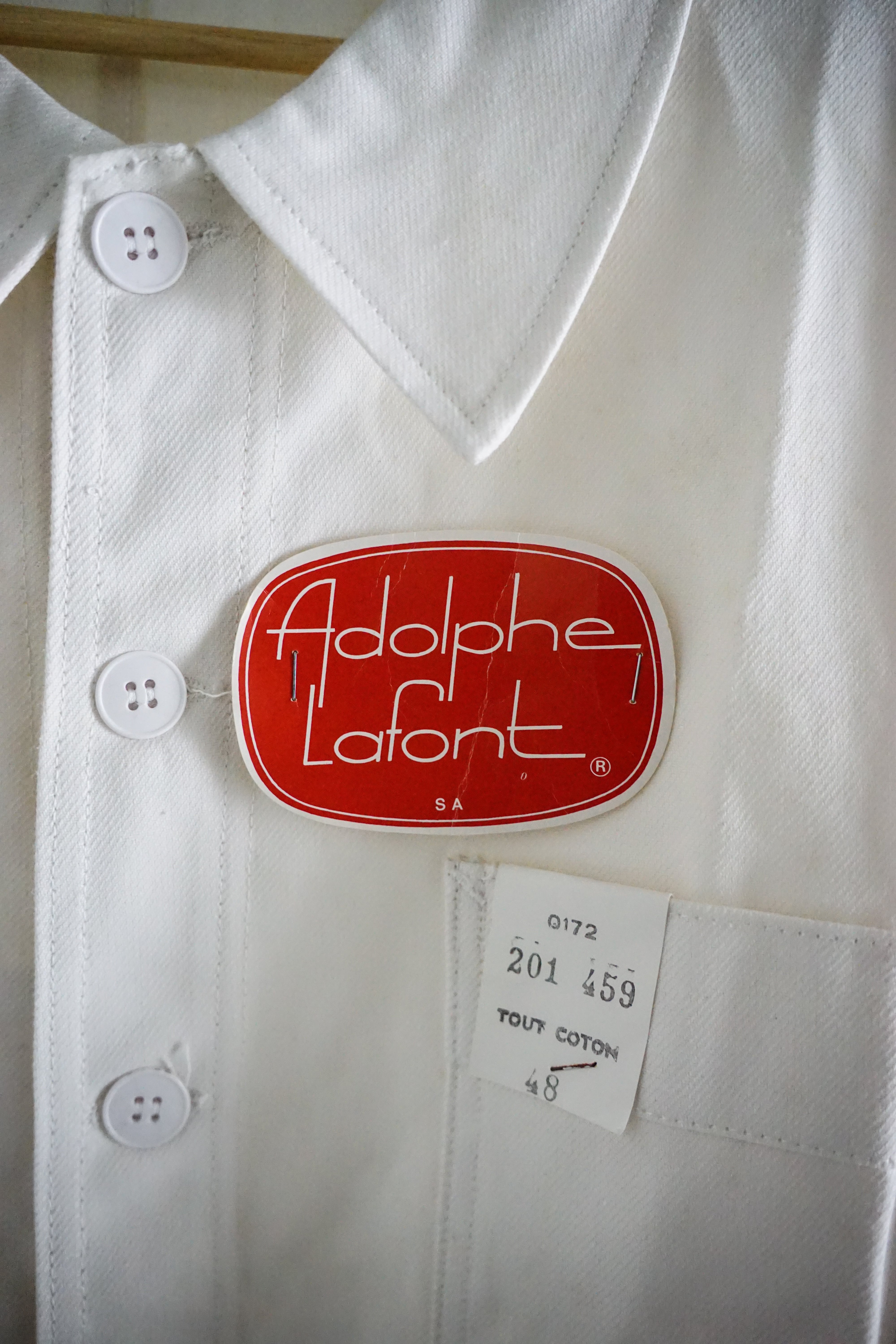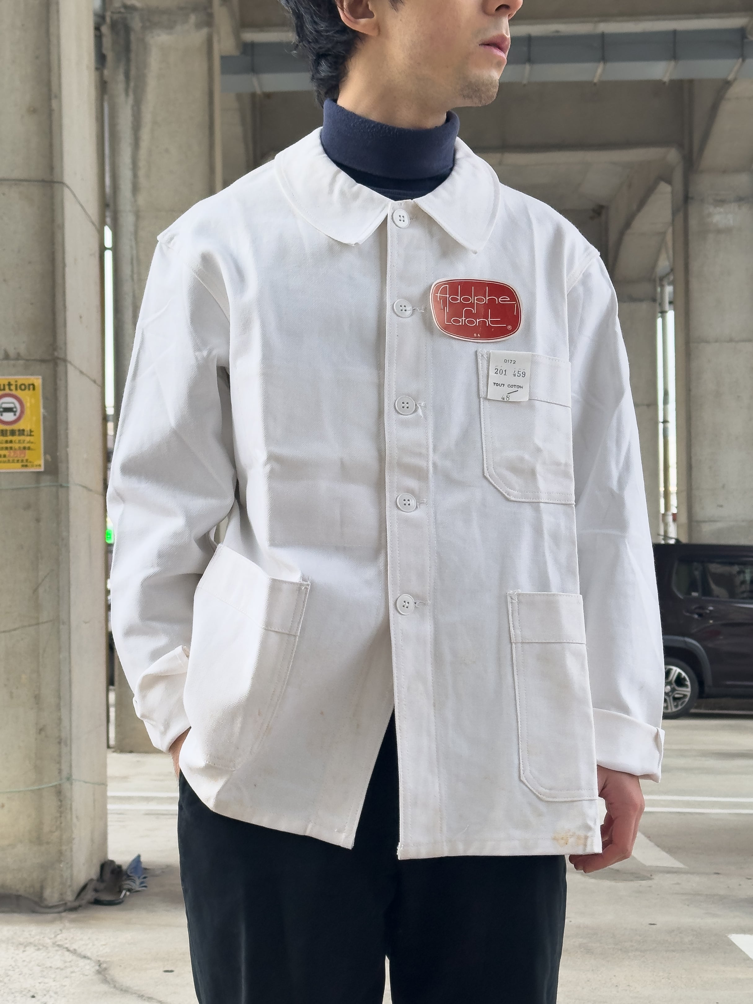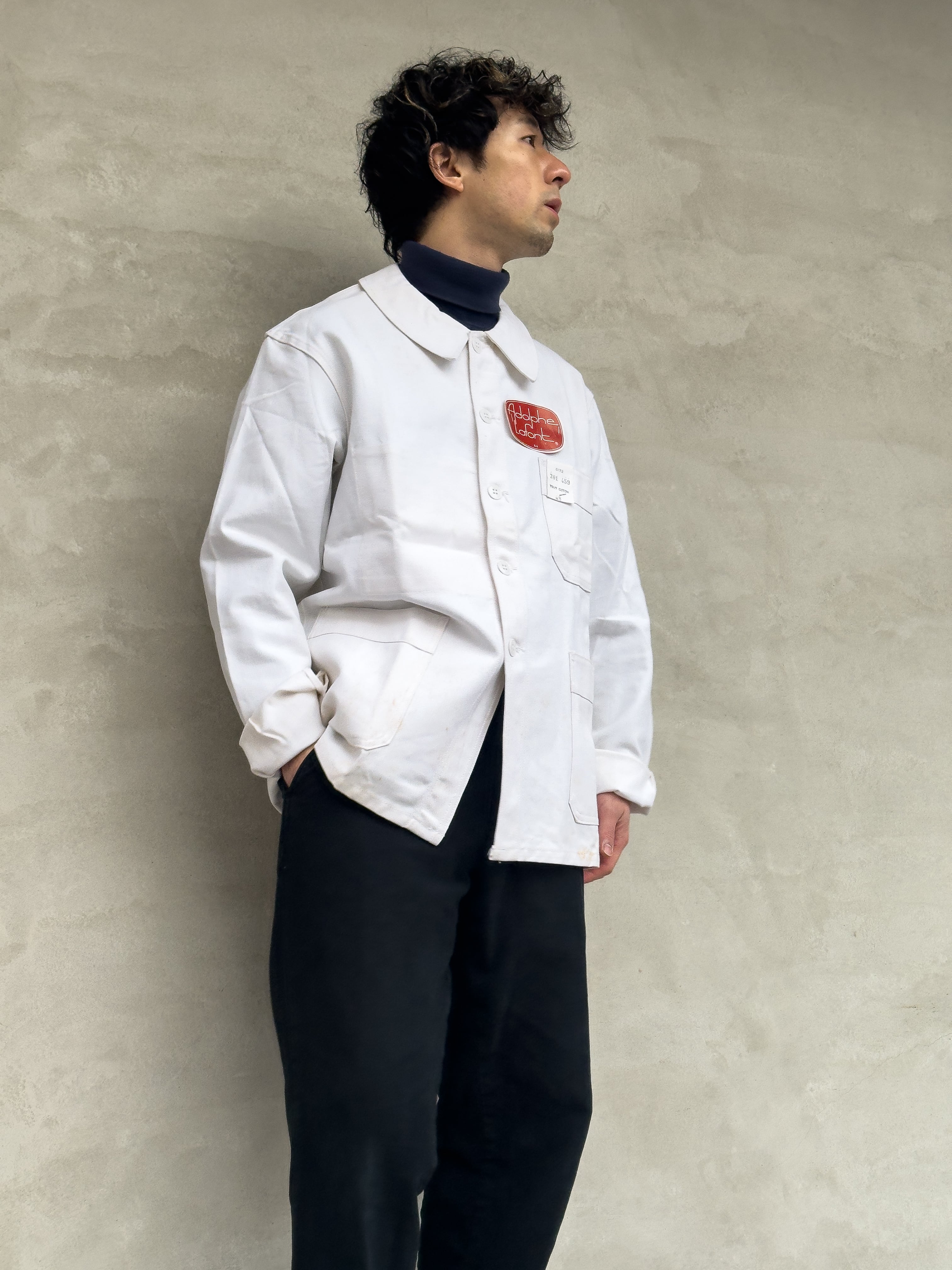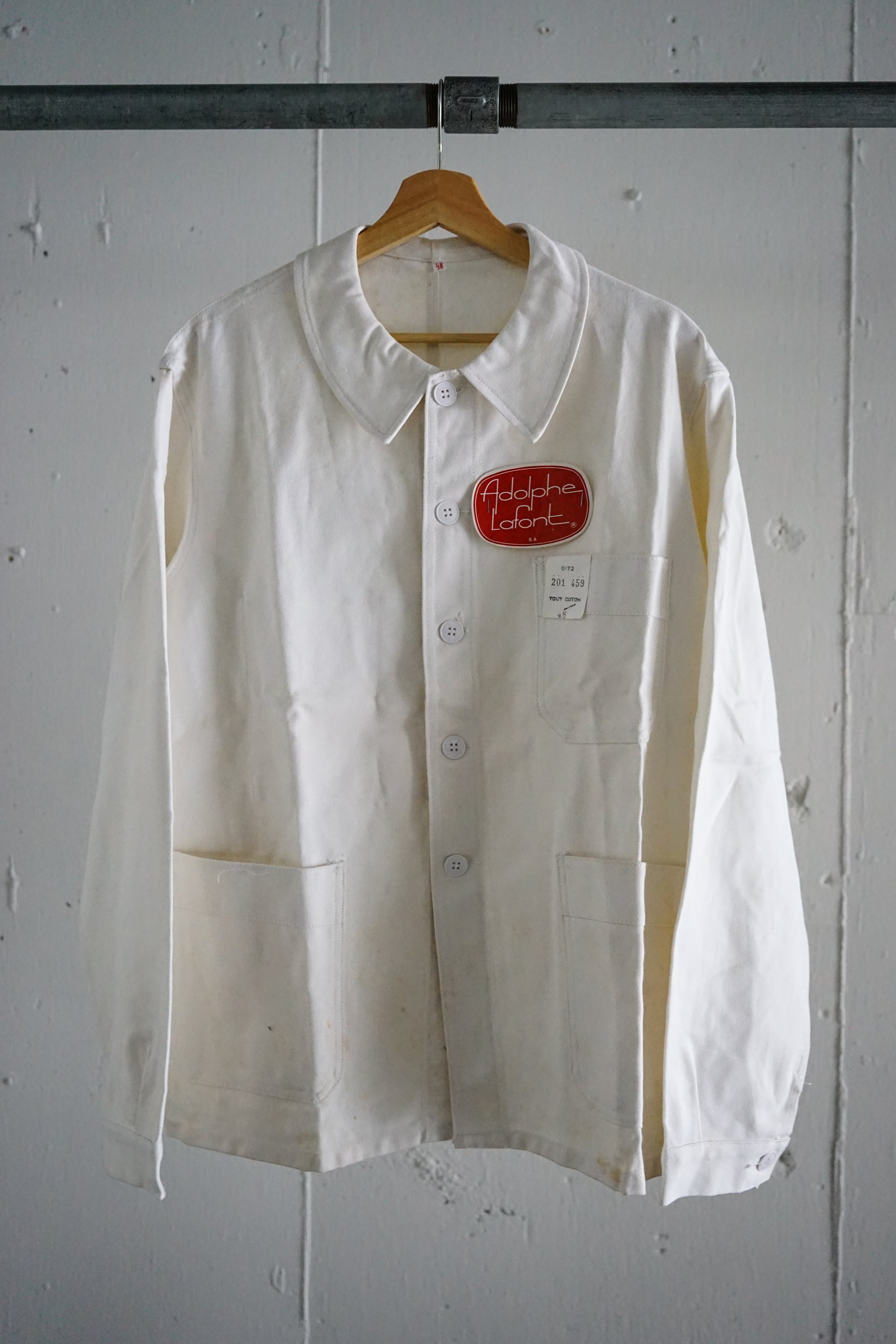 1960年代頃に製造された、フランスの老舗ワークウェアメーカー ADOLPHE LAFONT(アドルフ・ラフォン) によるホワイトコットンツイルジャケット。