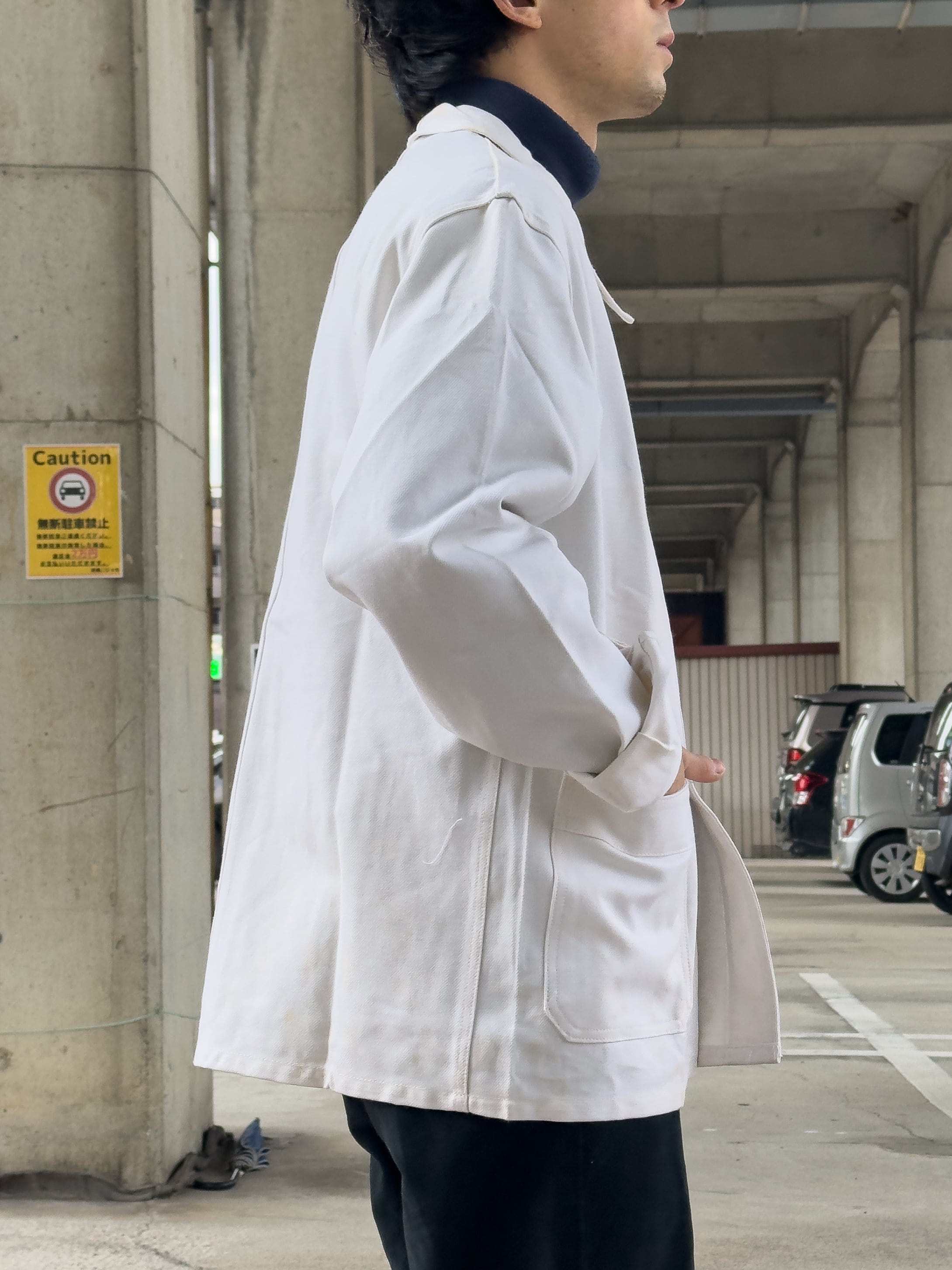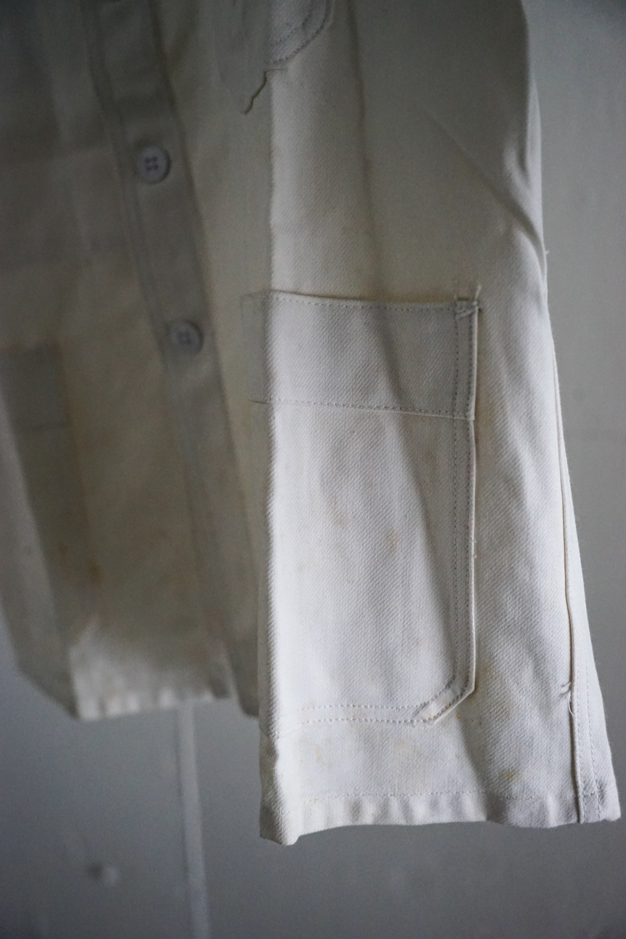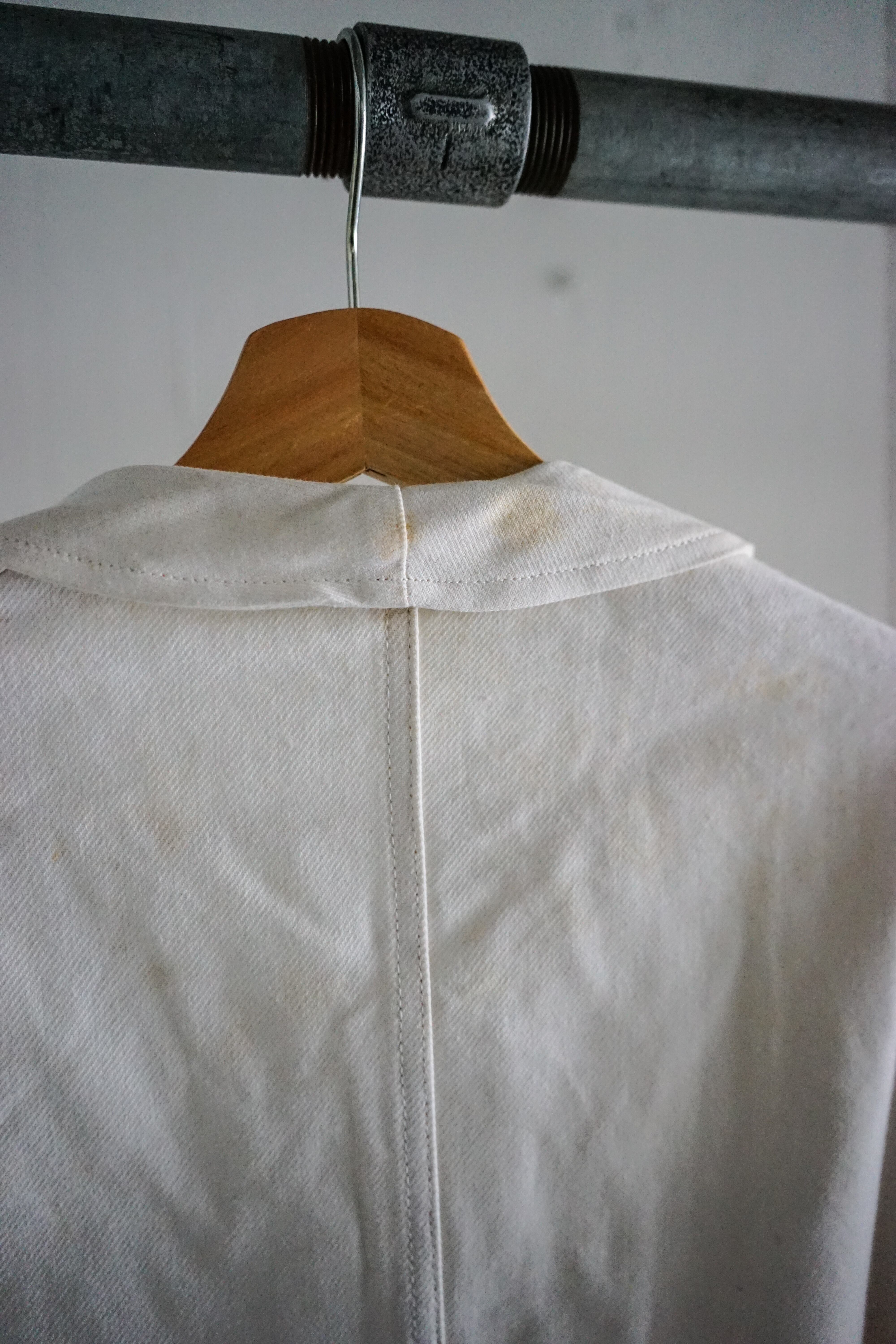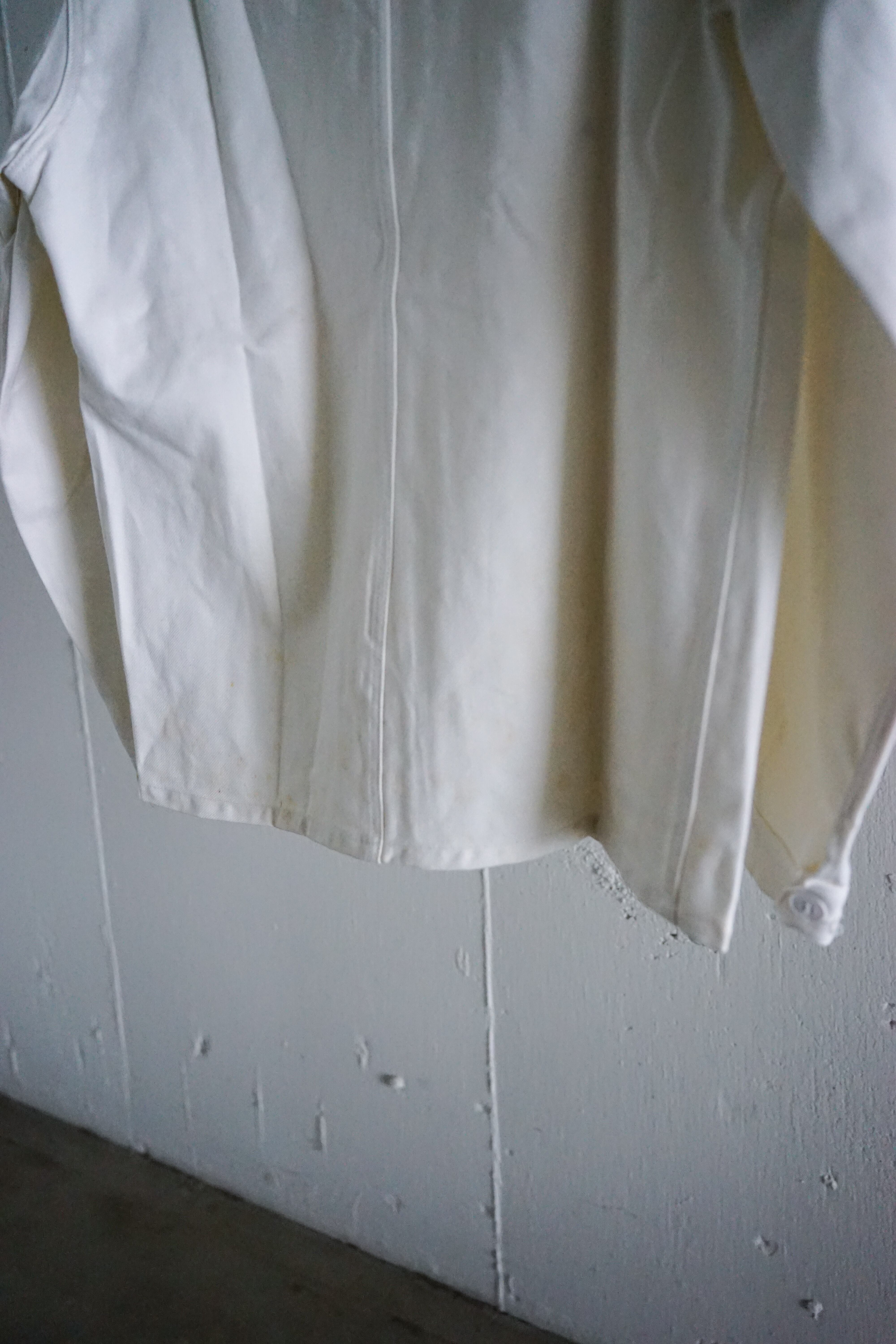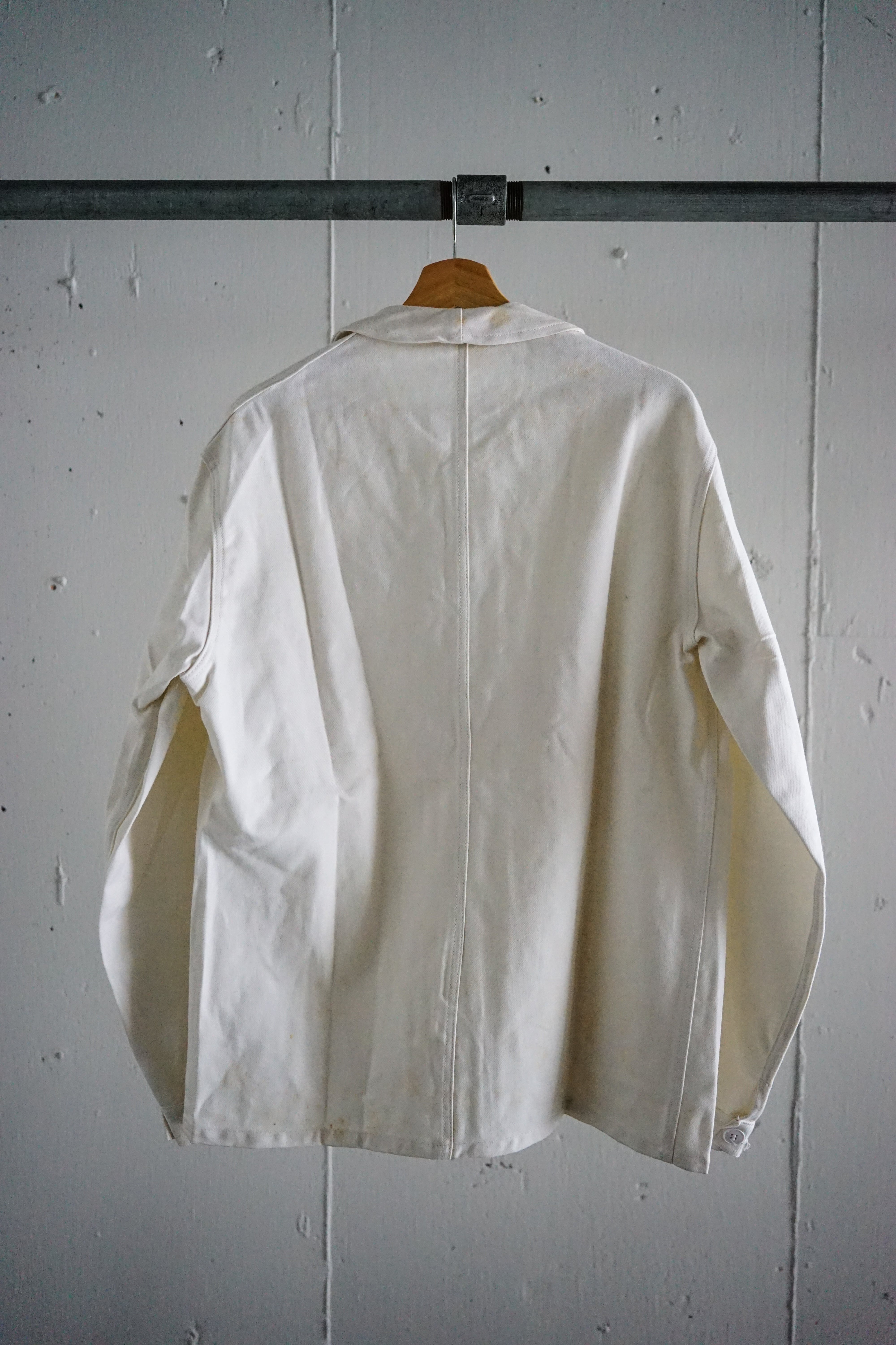 フレンチワークウェアの中でも希少性の高いホワイトカラー、かつデッドストックという条件が揃った、資料的価値も高い一着。