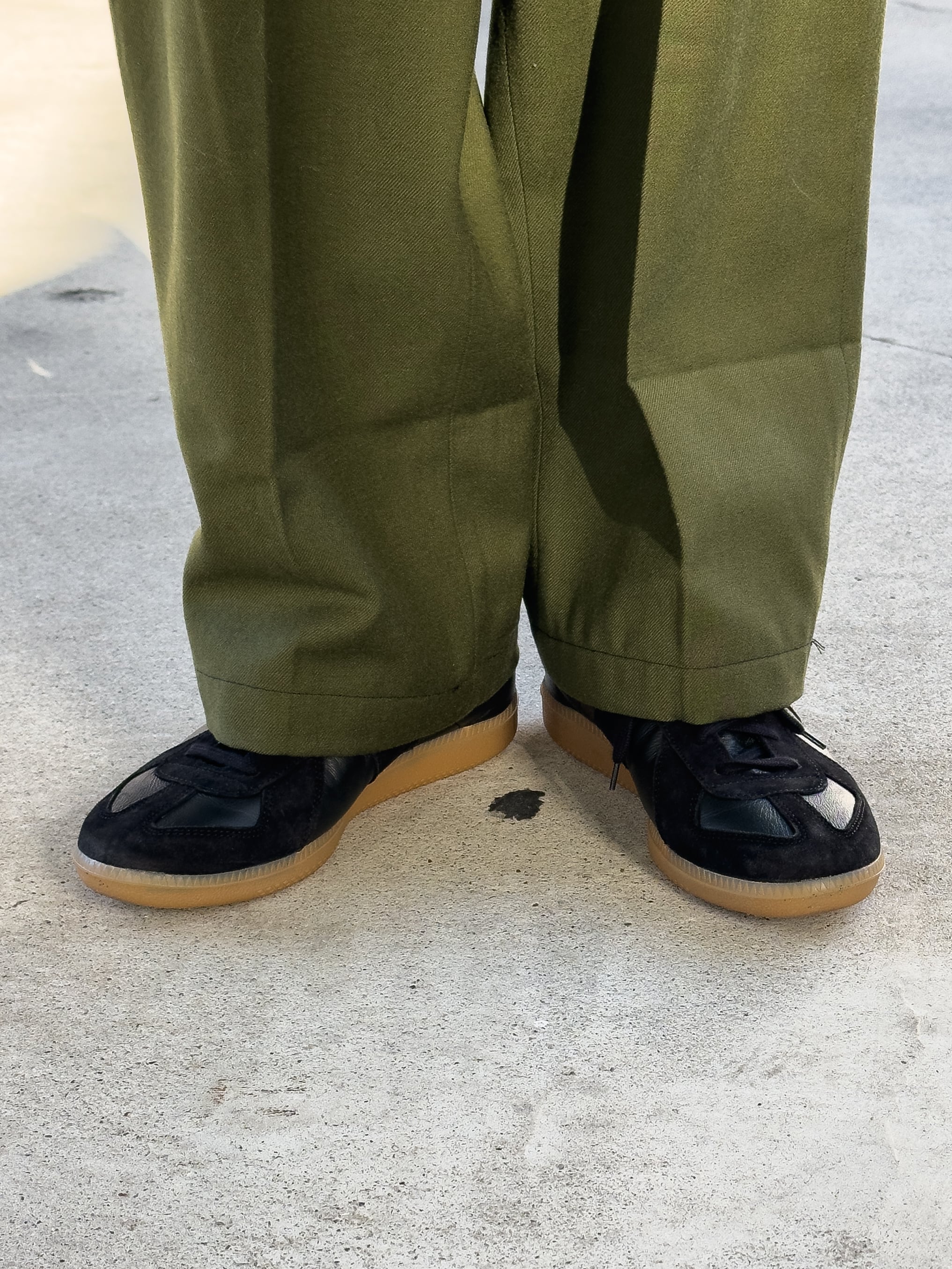 軍用シューズ特有の重さを感じさせず、スラックスからデニムまで幅広いボトムスと相性の良い設計です。
