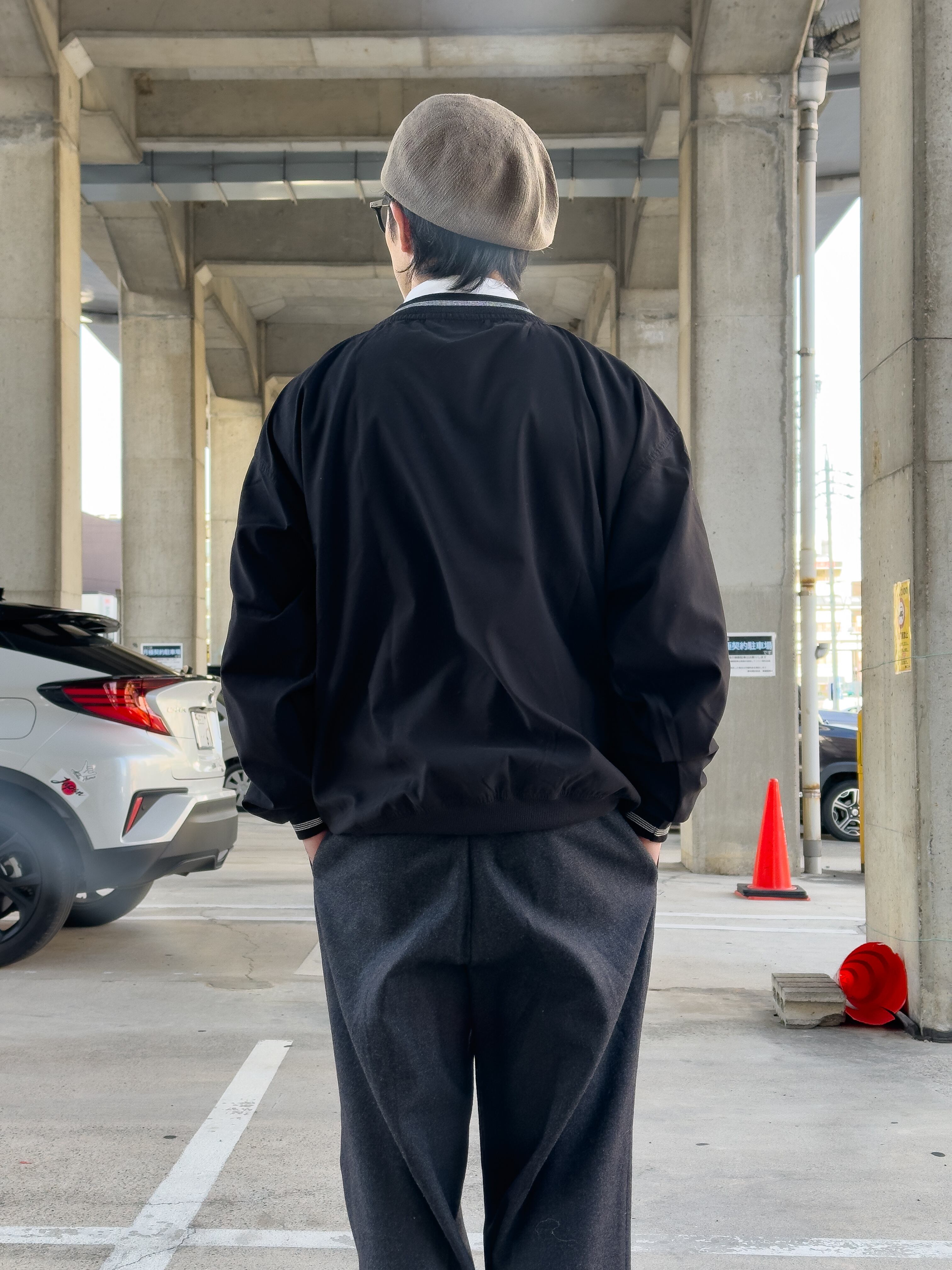 元々はゴルフウェアとして開発されたモデルで、生地には防風性と撥水性を兼ね備えたポリエステルのマイクロファイバーを使用。