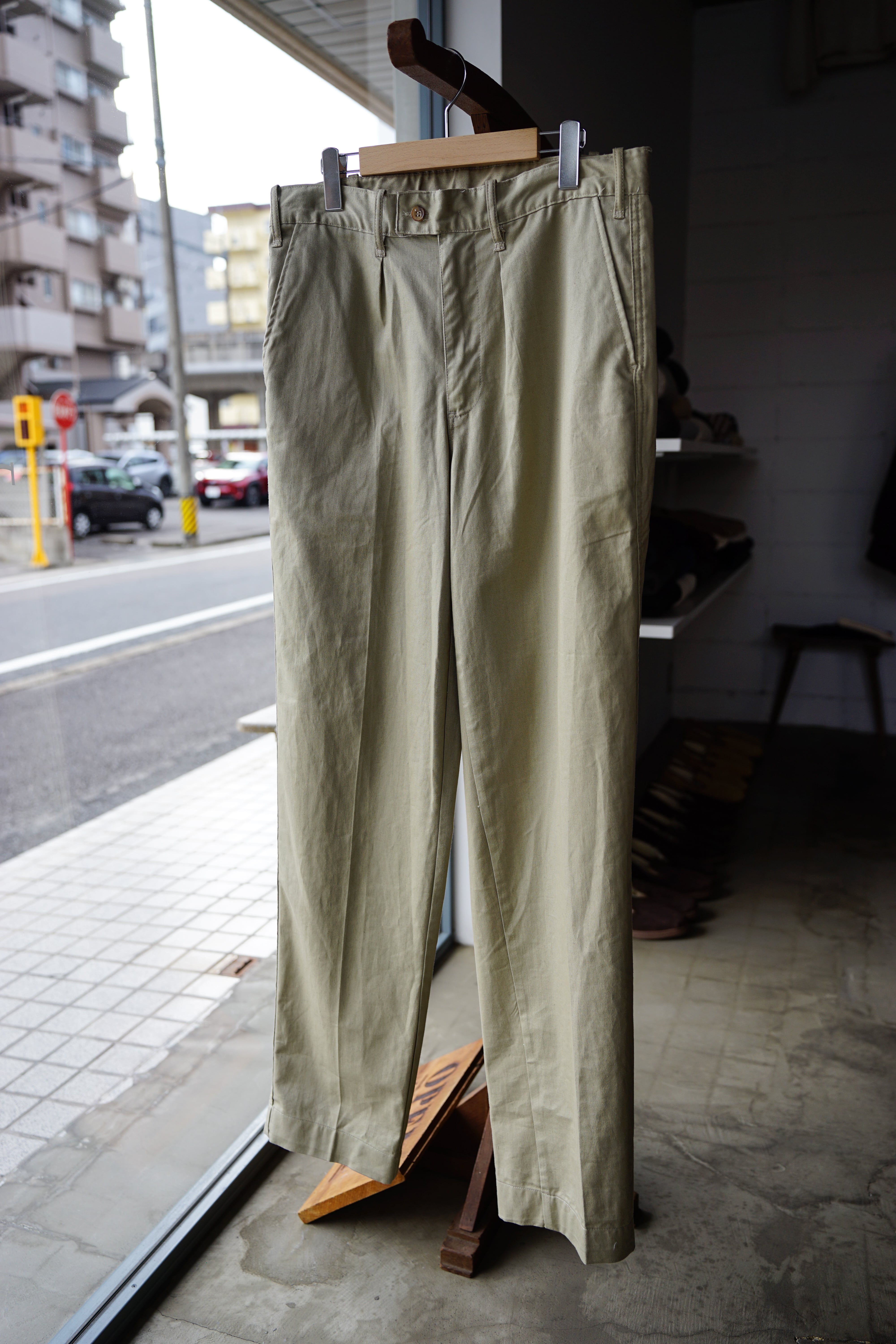 シルエットはミリタリーチノとしては比較的細身で、太すぎず、かといってドレス寄りにも振り切らない絶妙なバランス。