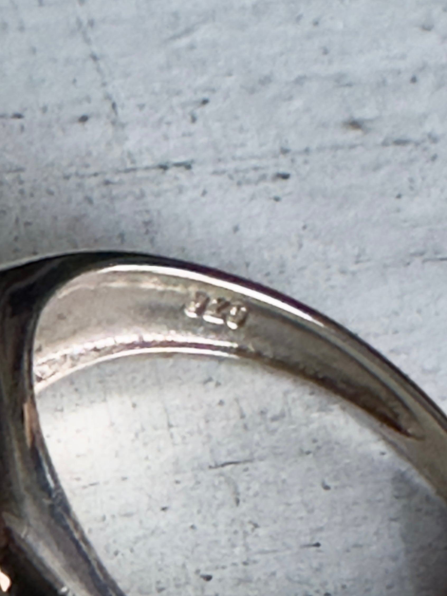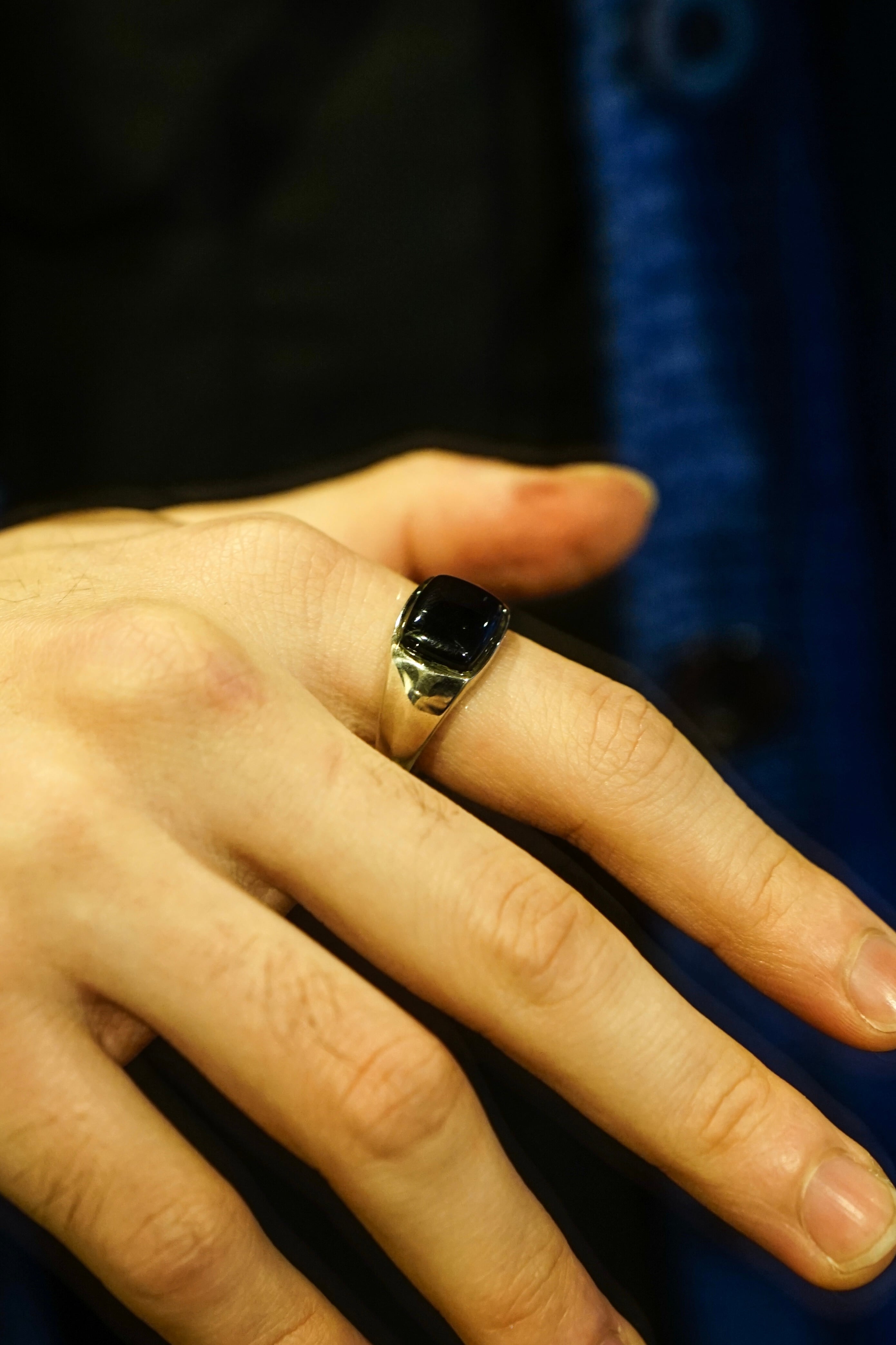 横長のスクエア型オニキスをフラットに近い形でセットした、非常に実用的かつクラシックな構成です。