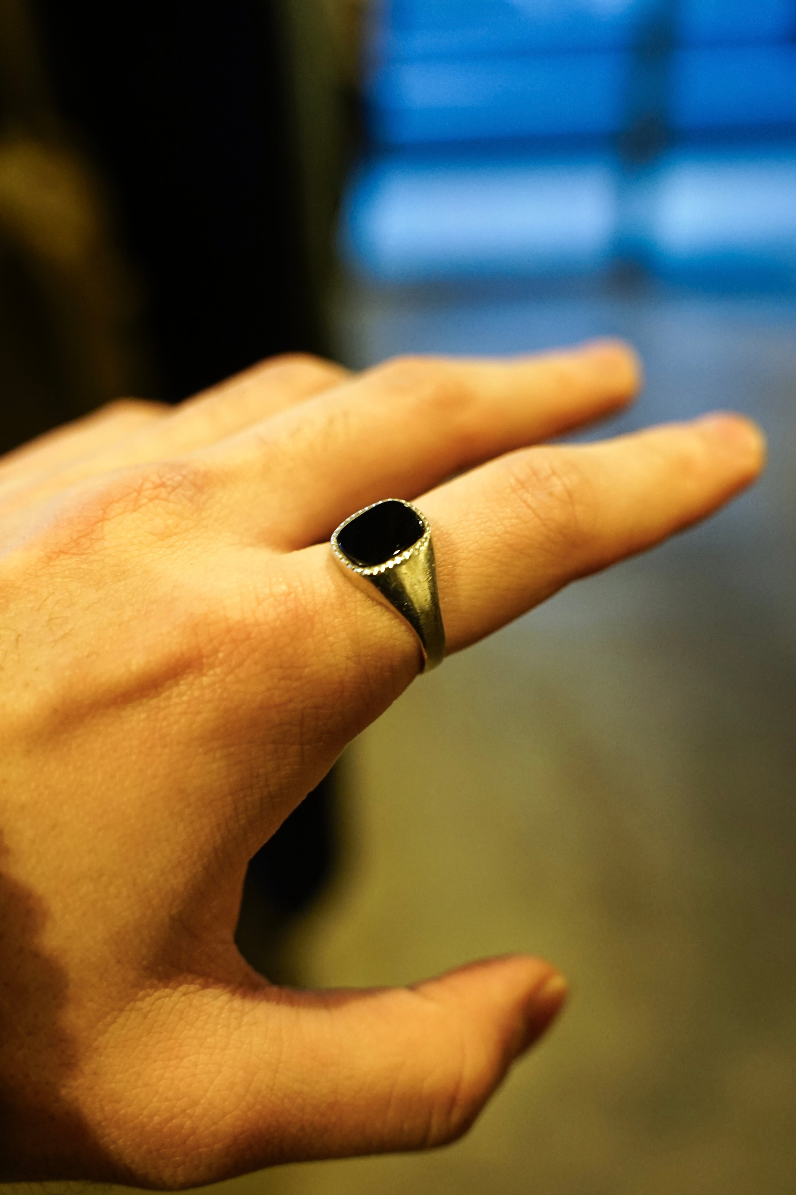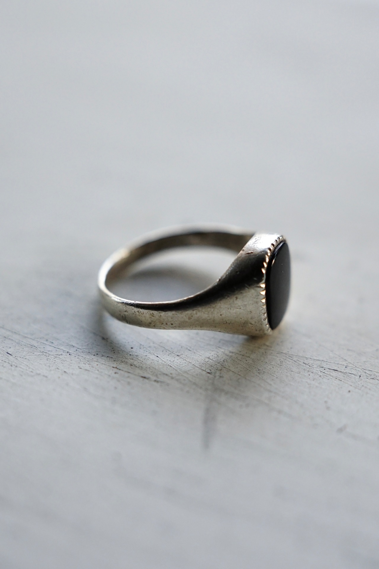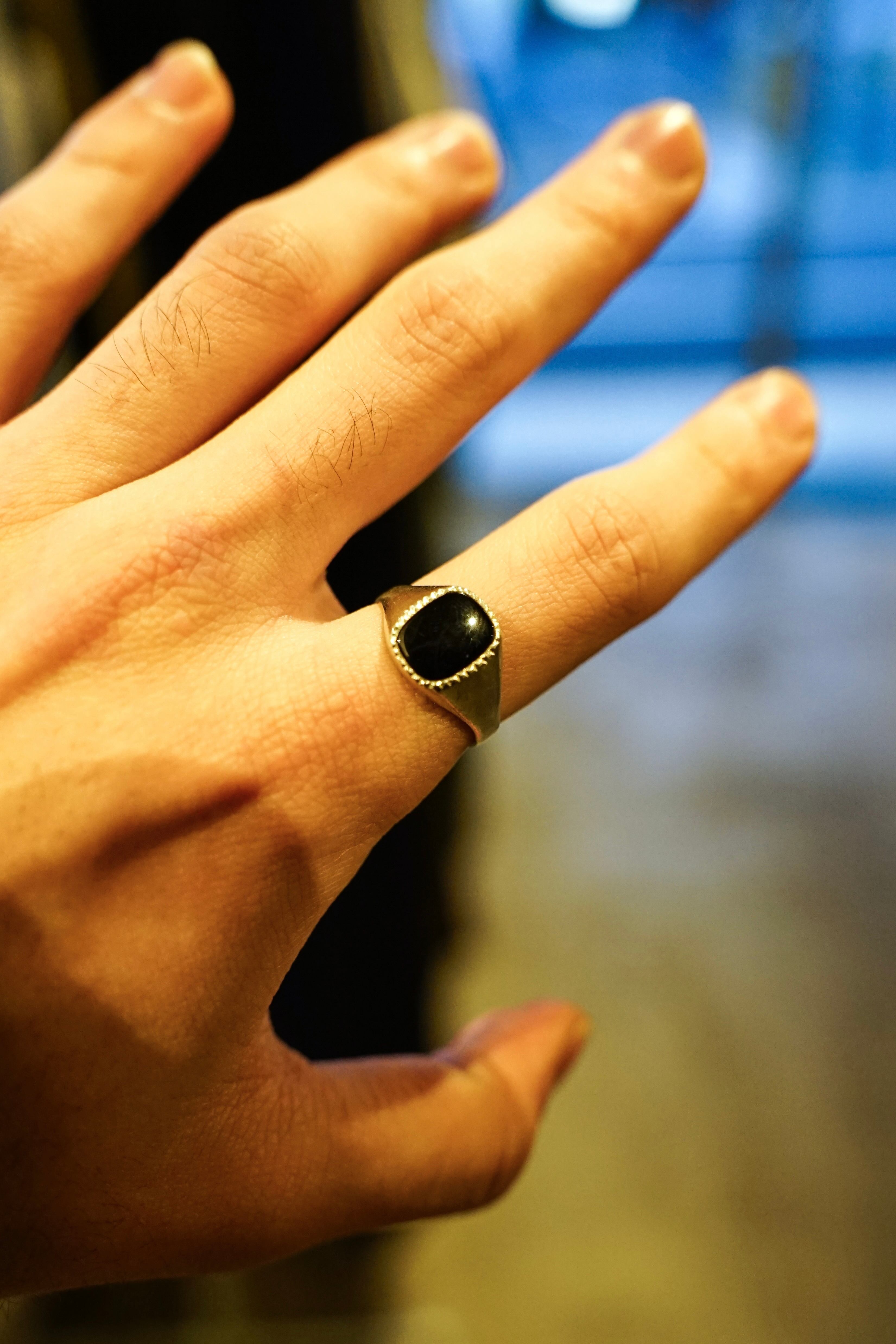 こちらはイギリス製のオニキスシグネットリング。