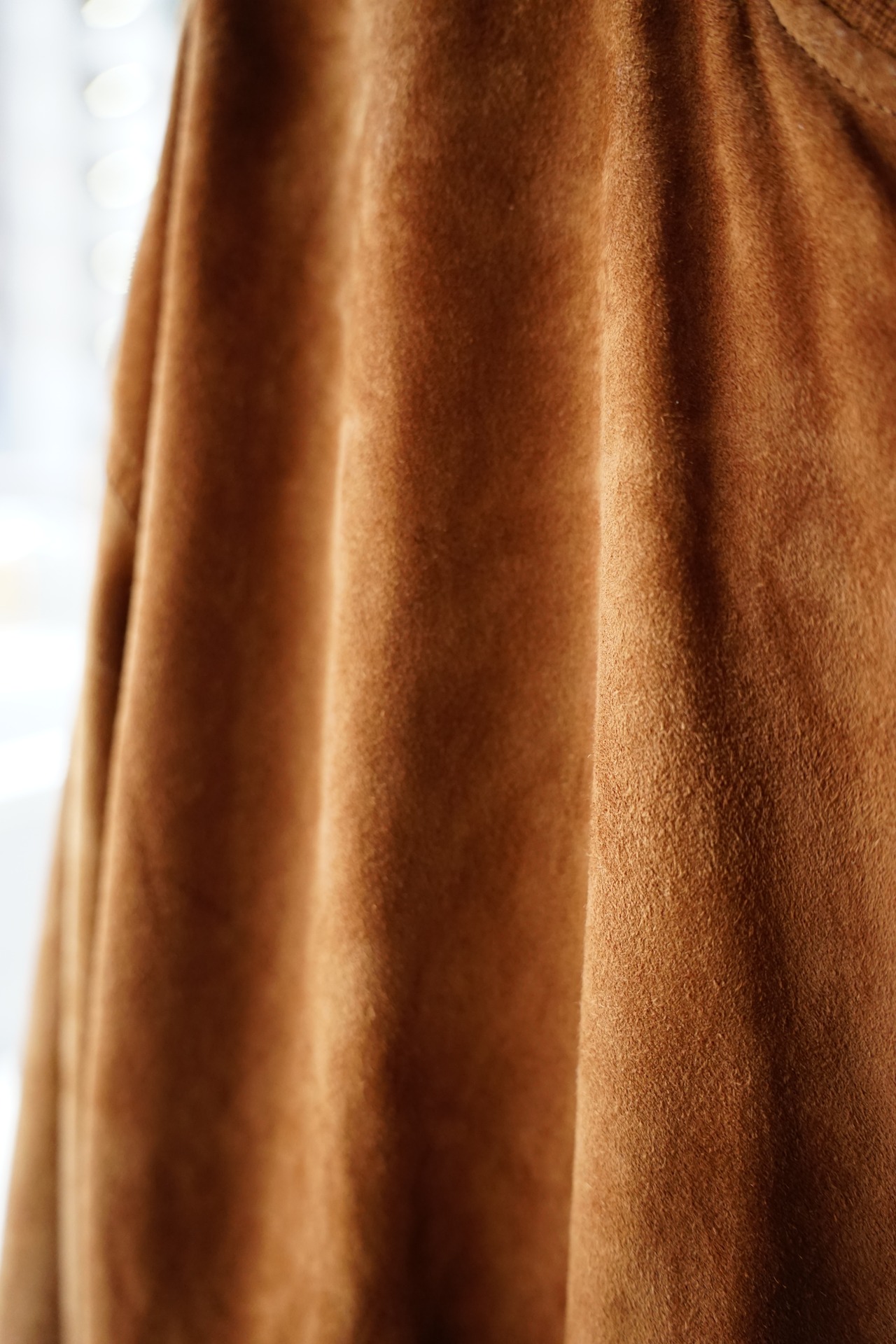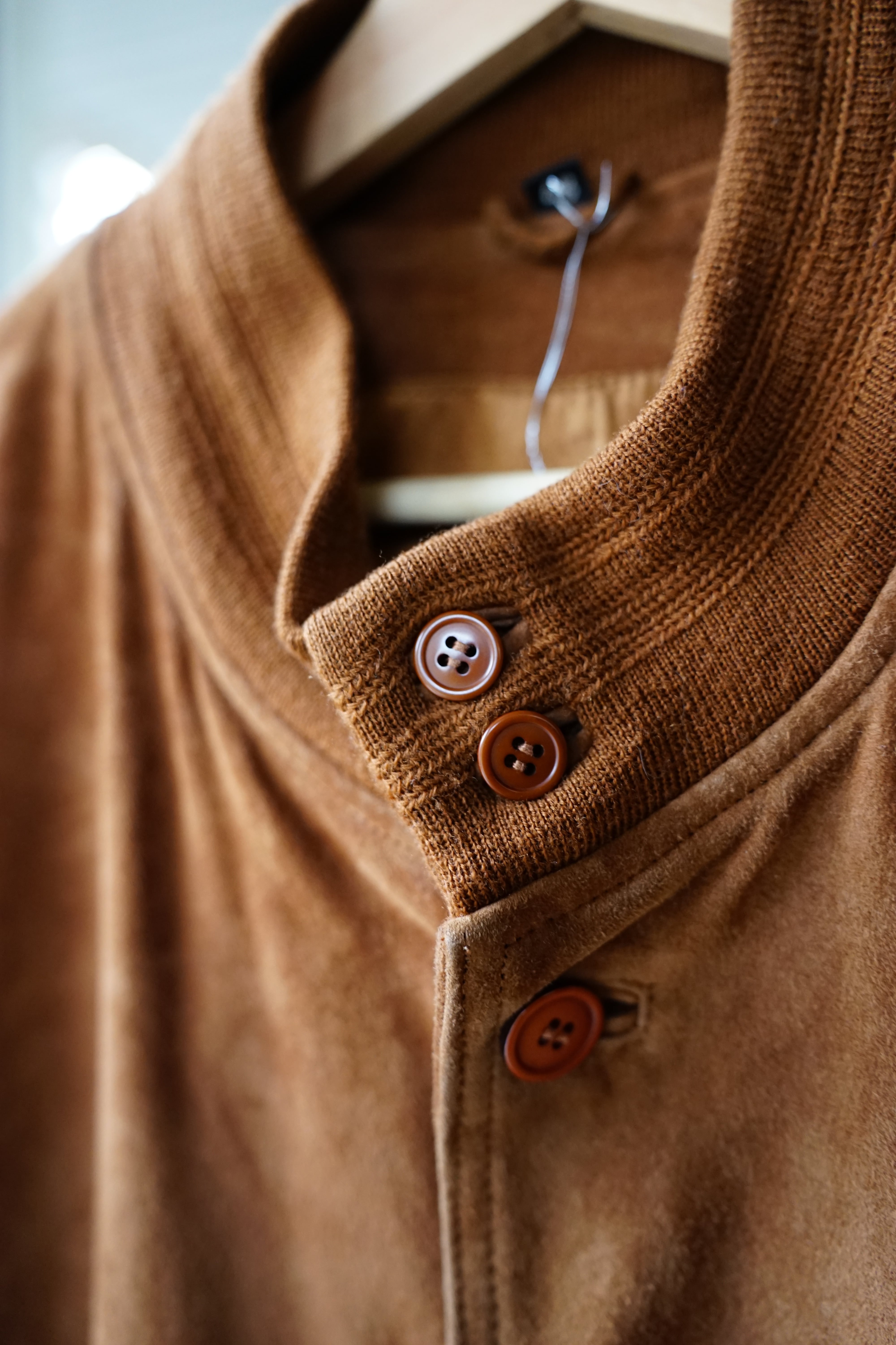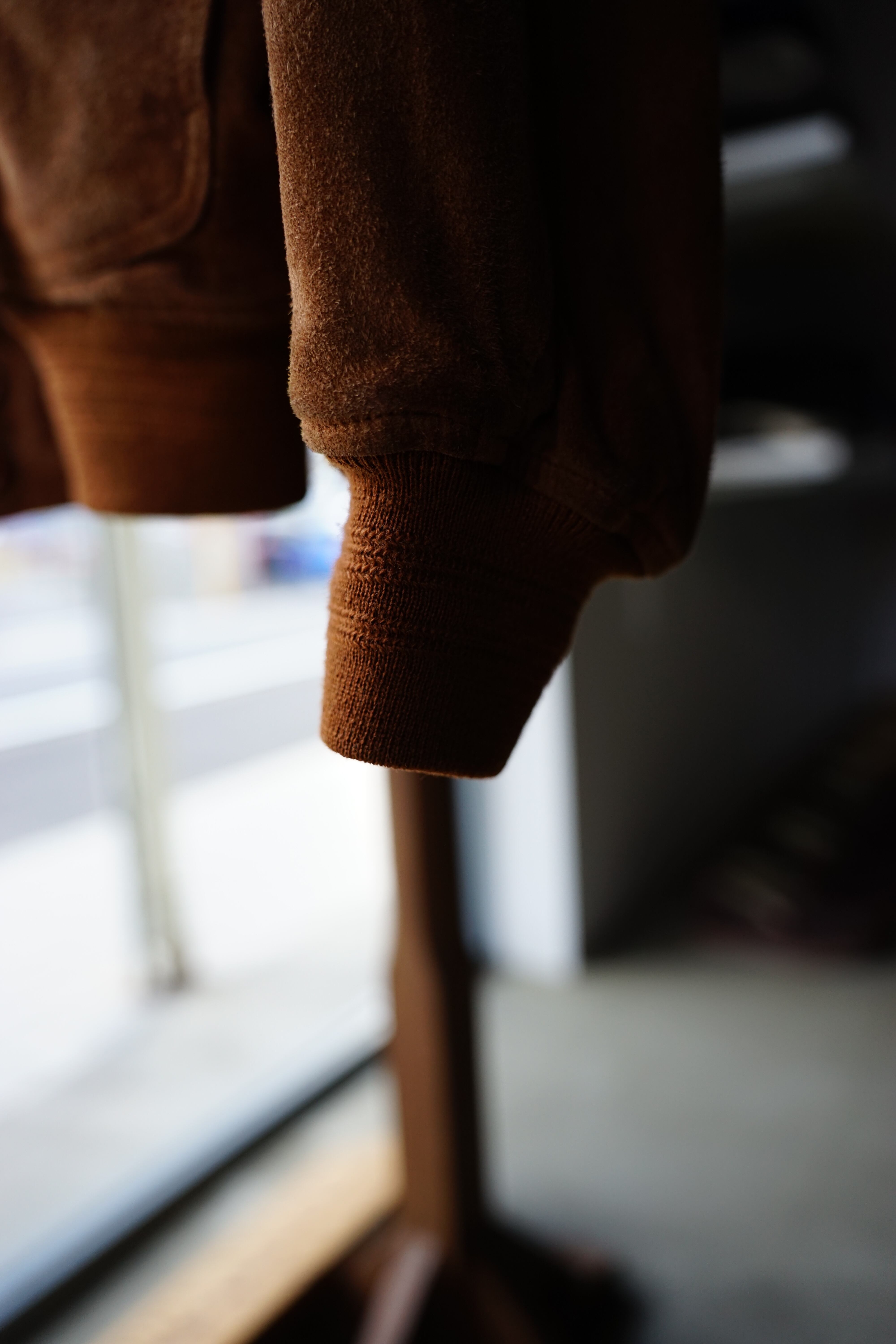 起毛した表情と柔らかな質感が特徴で、着用を重ねることで色味や毛並みに変化が生まれ、革ならではの経年変化を楽しめます。