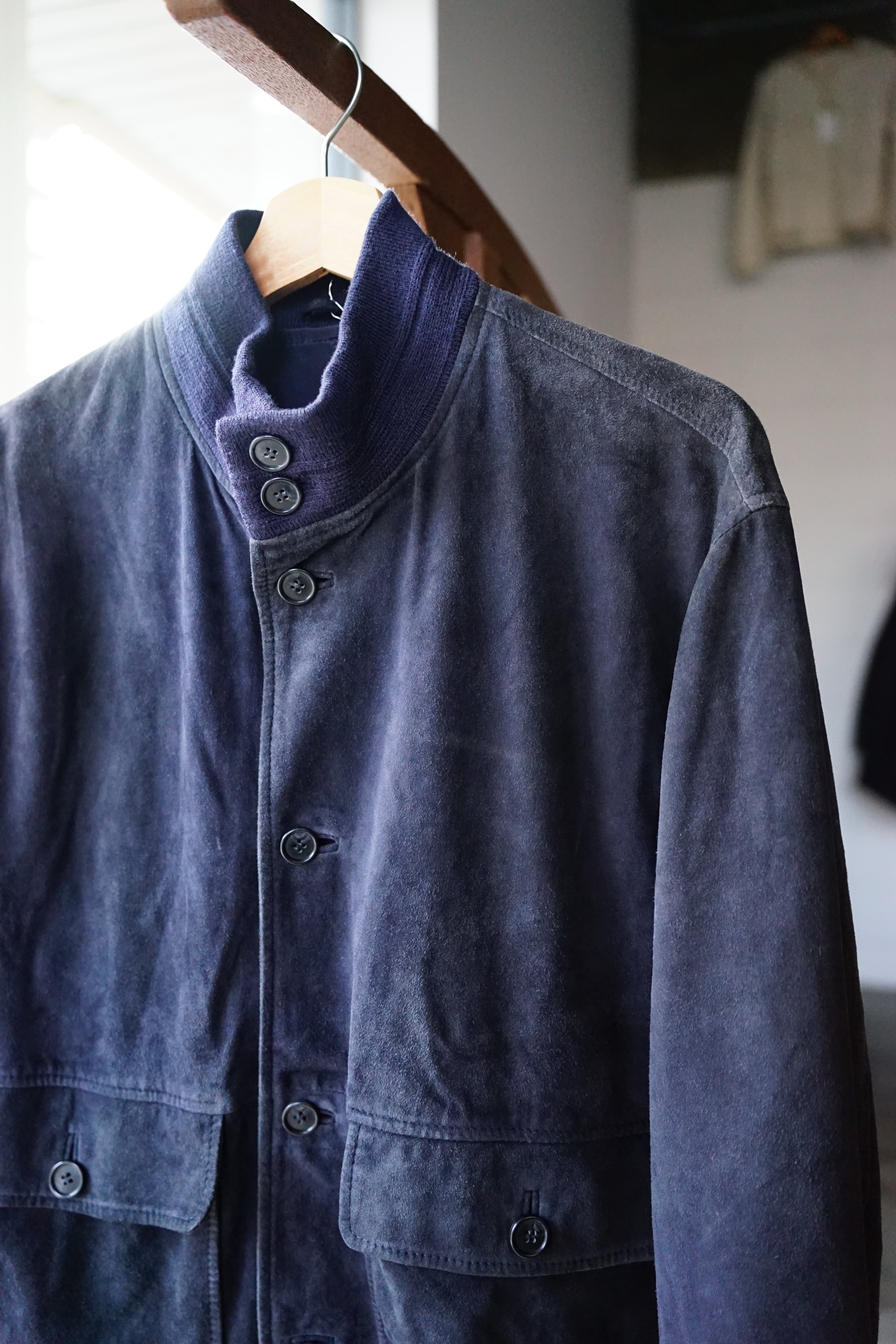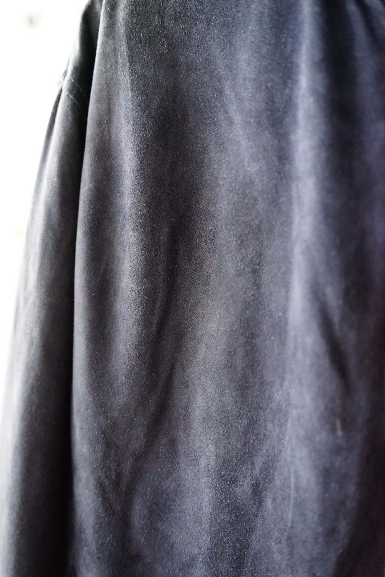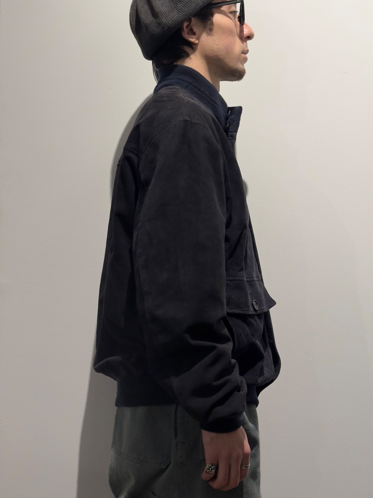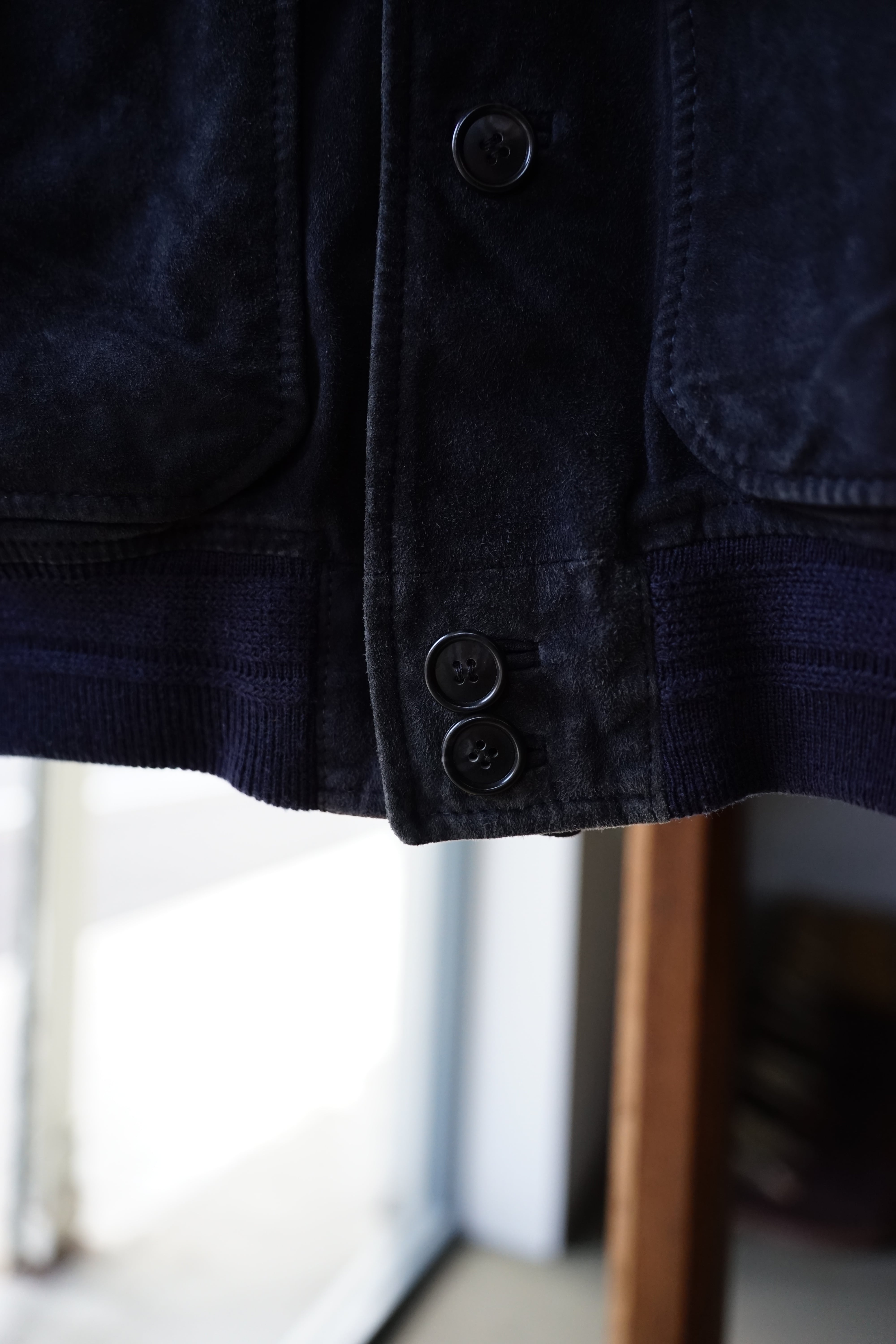 起毛した表情と柔らかな質感が特徴で、着用を重ねることで色味や毛並みに変化が生まれ、革ならではの経年変化を楽しめます。