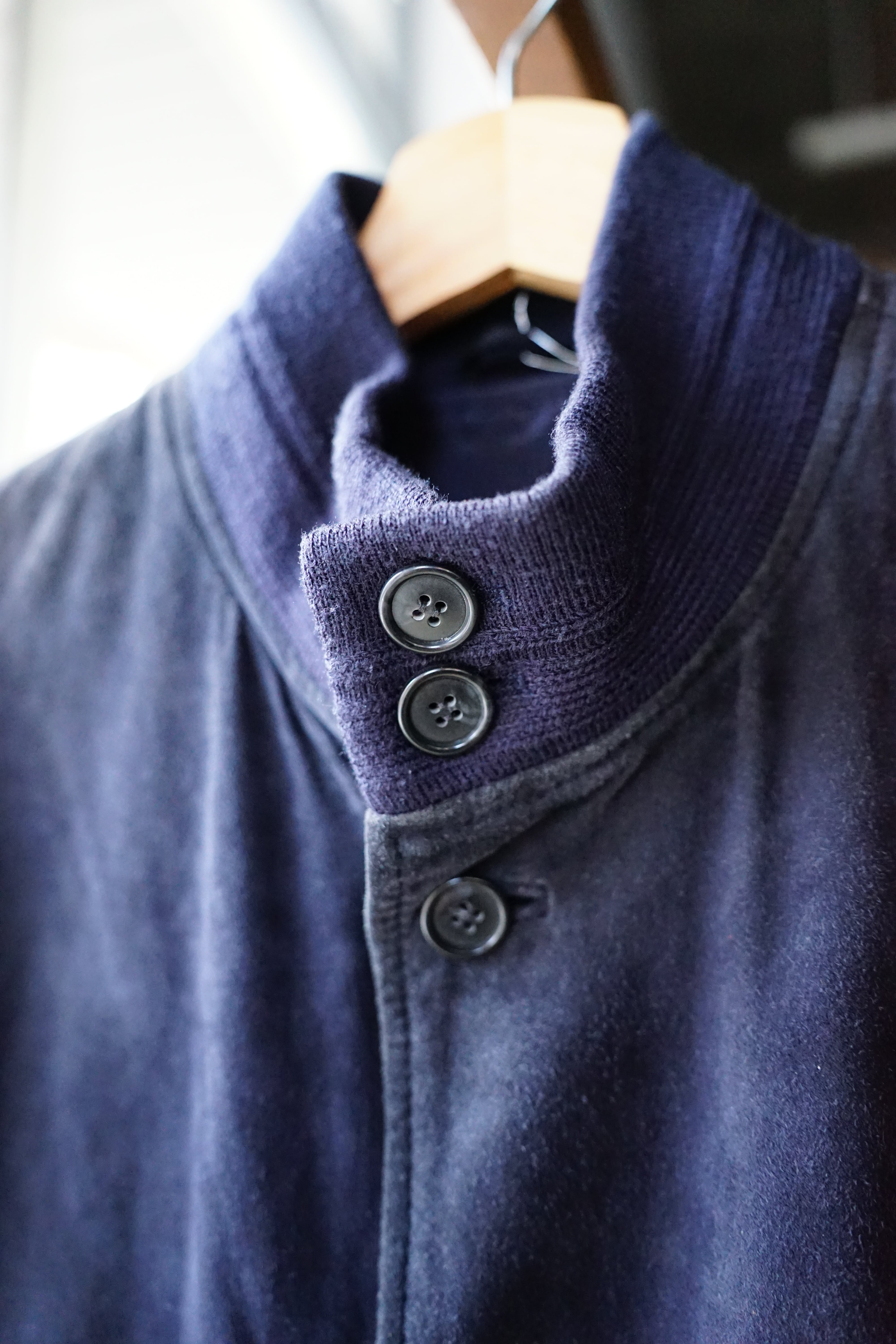 襟元はリブ付きのスタンドカラー仕様。
