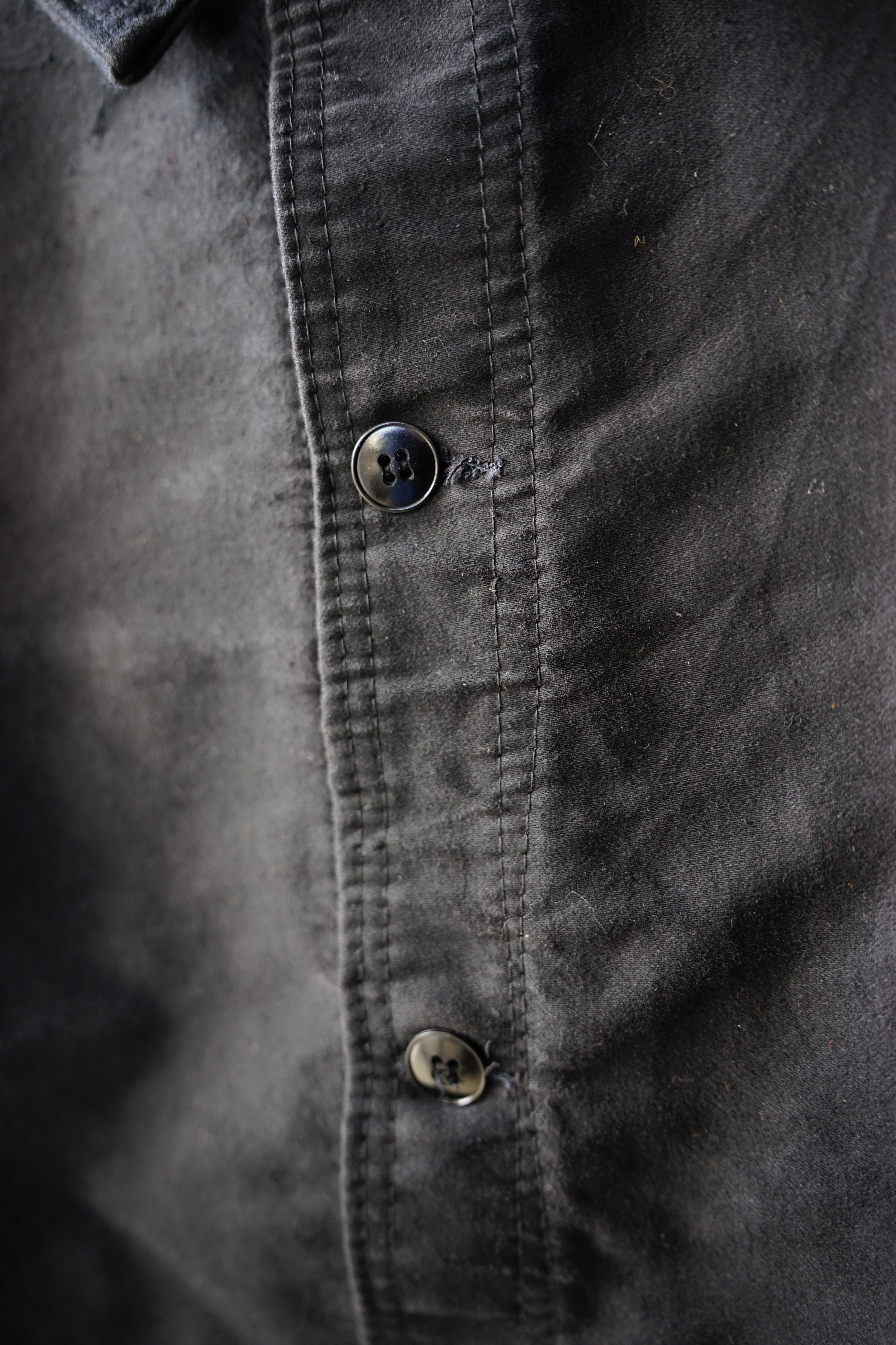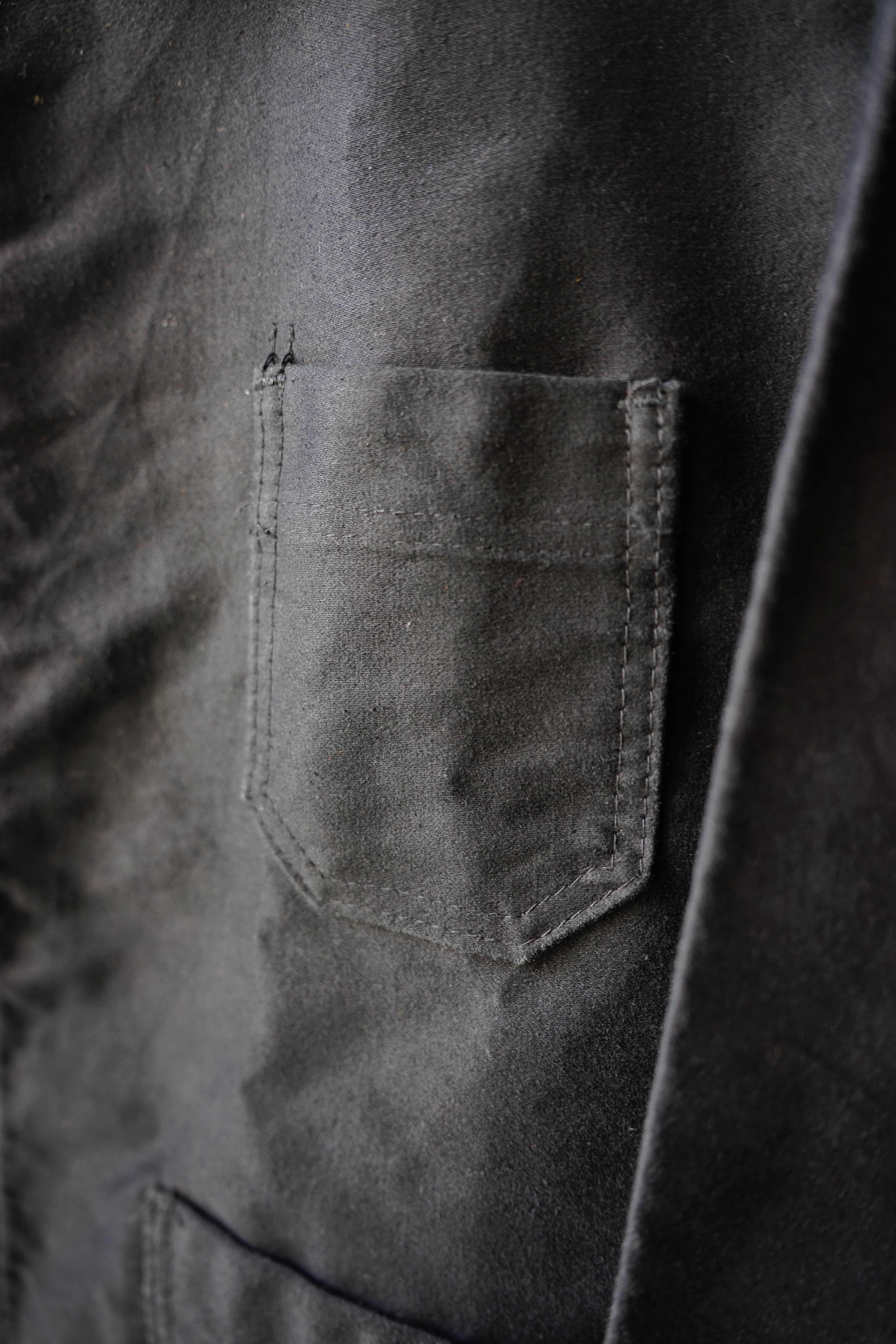 フレンチワークの定番であるブルーモールスキンと比べても、ブラックは当時から生産数が圧倒的に少なく、現存数も段違いに限られています。