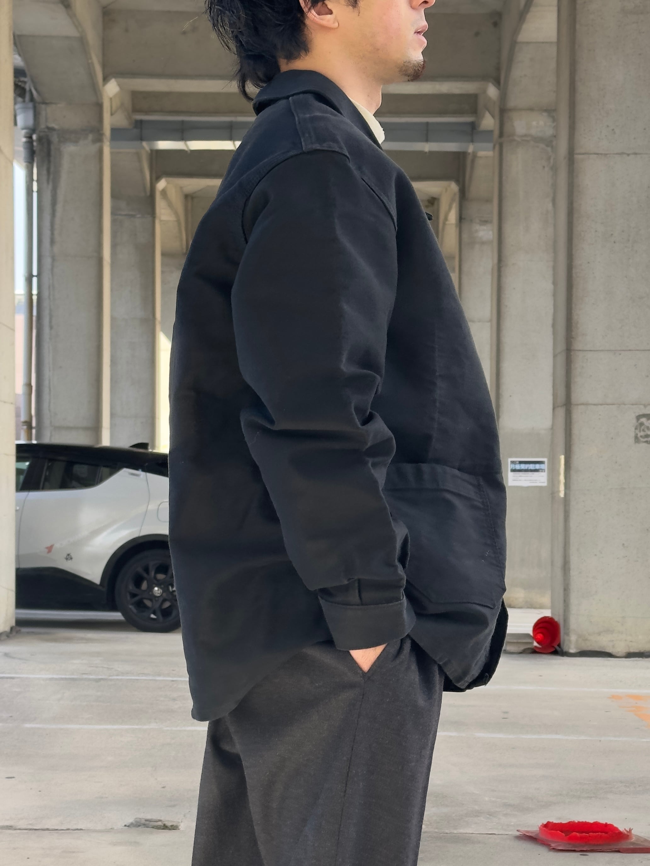 単に大きいだけではない、完成度の高いワークジャケットのシルエットを感じていただけます。