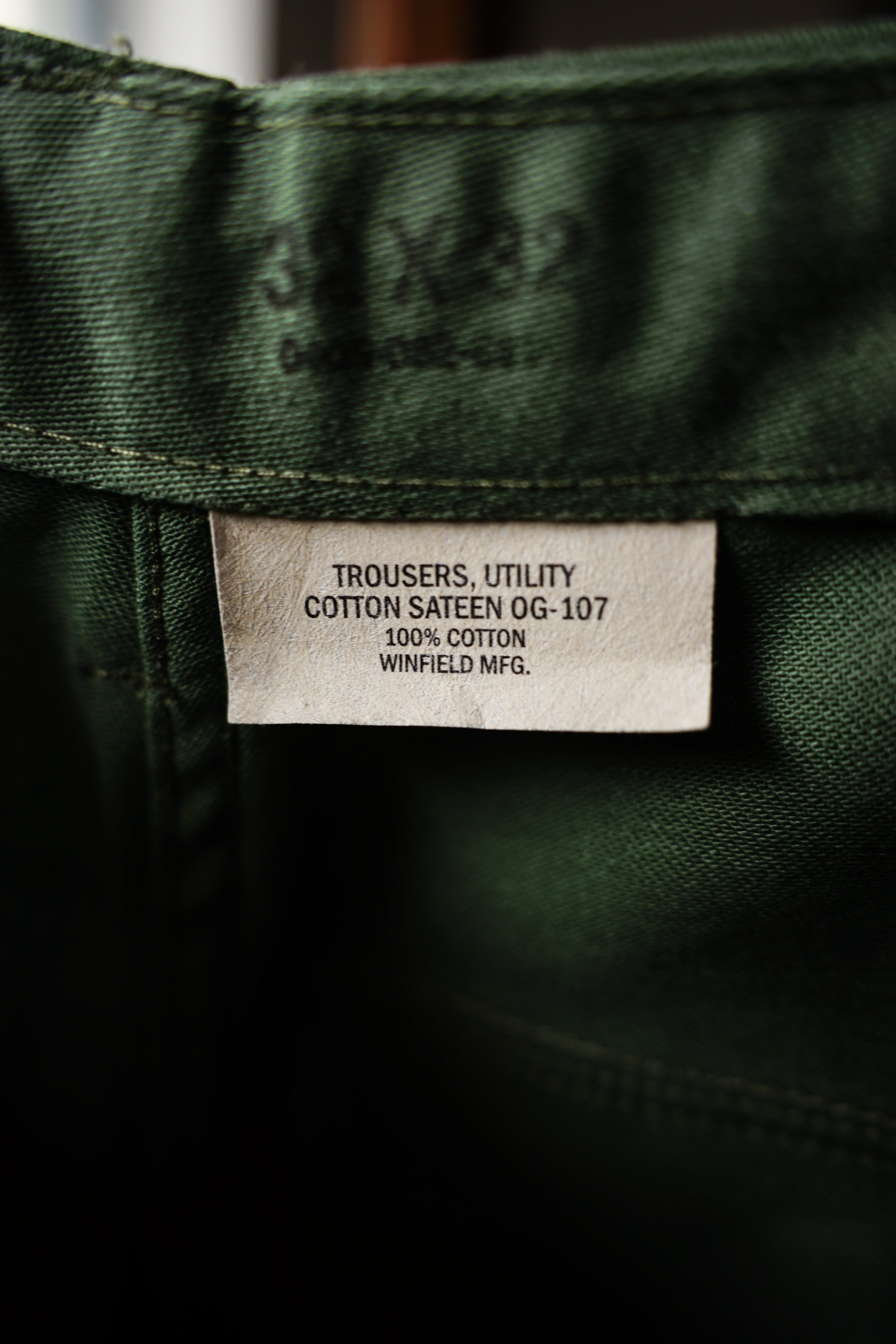 コントラクターとして米軍に衣服を納入していたWINFIELD Manufacturing社が製造したコットンサテンのベイカーパンツ。