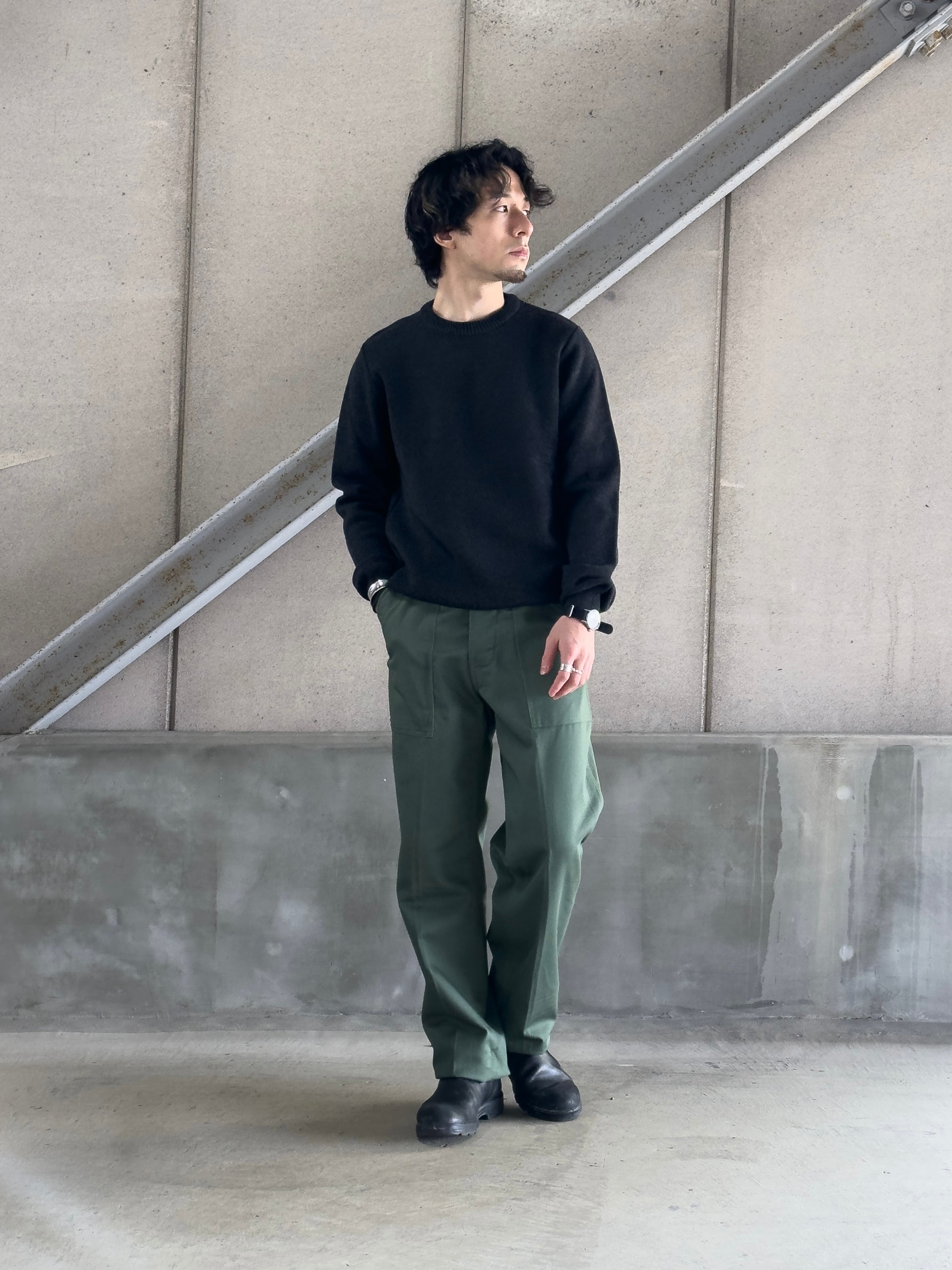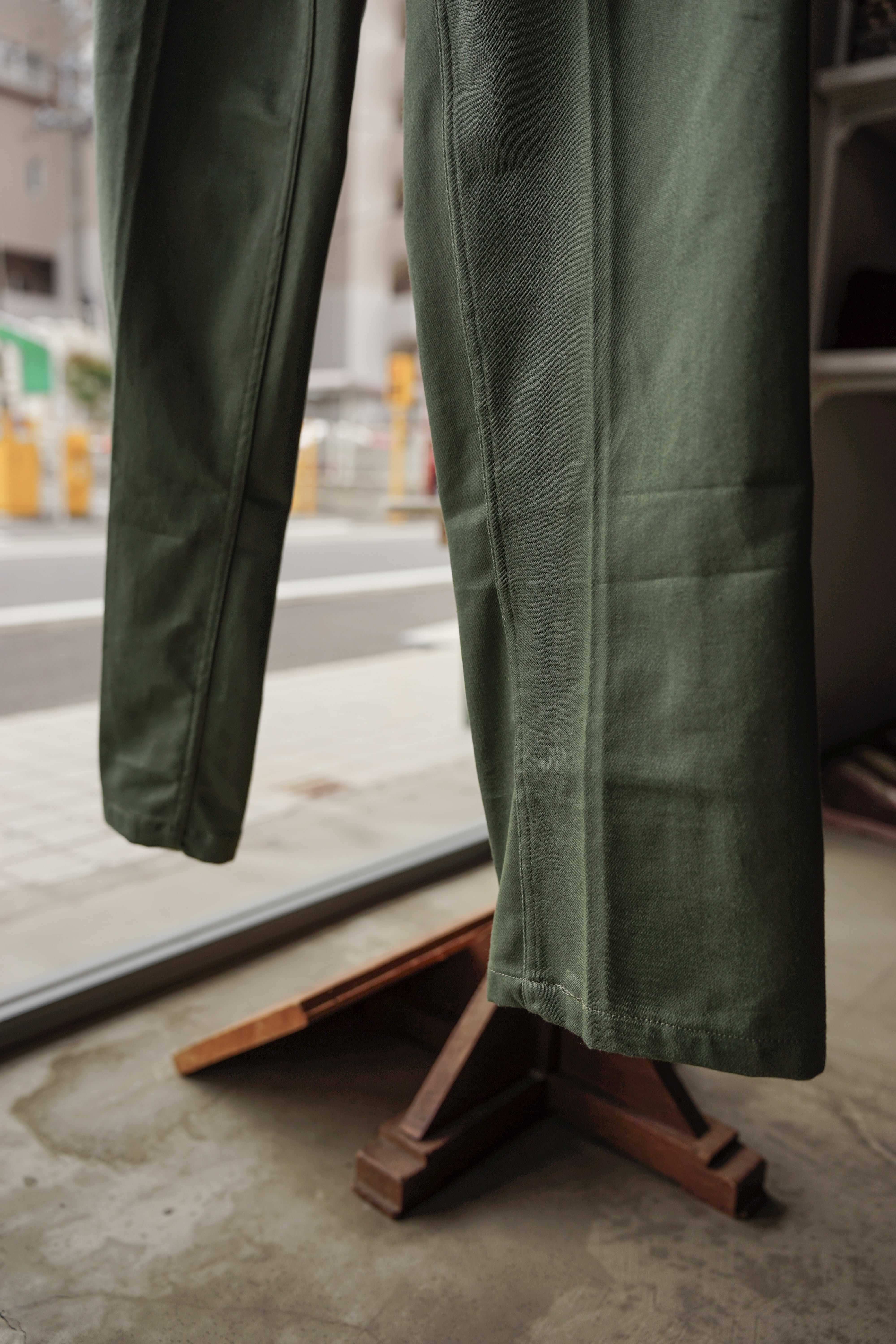 程よい太さを保ちつつ、裾にかけて緩やかにテーパードする美しいシルエットは、ジャストで穿いても、少し腰を落としてルーズに穿いても様になるバランスです