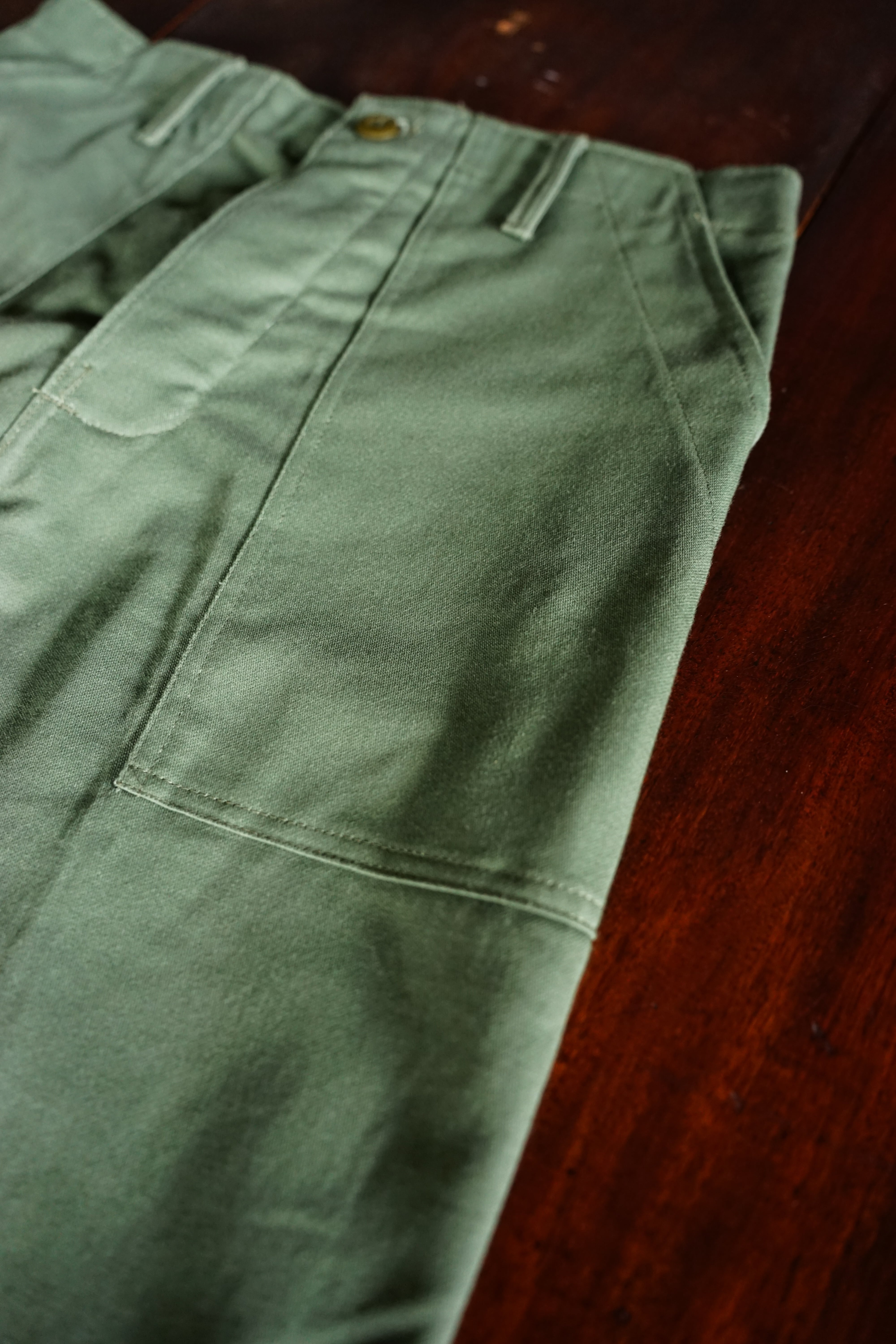 フロントの大きなパッチポケットや、バックフラップポケットといったベイカーパンツ象徴のディテールはそのままに、WINFIELD社らしい堅牢な作り込みが随所に光ります。