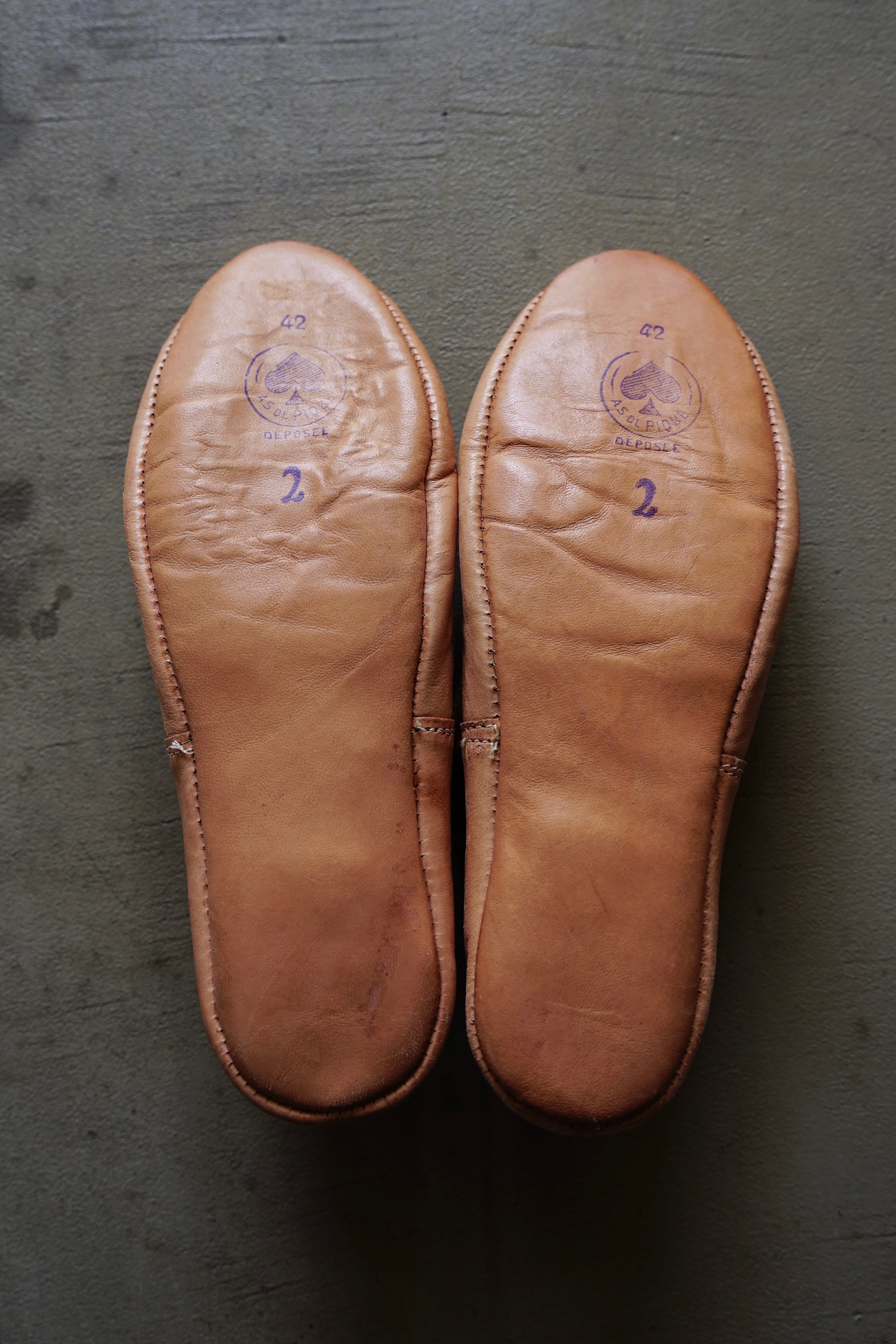 ソールに刻印された「AS DE PIQUE(スペードのエース)」のスタンプ。