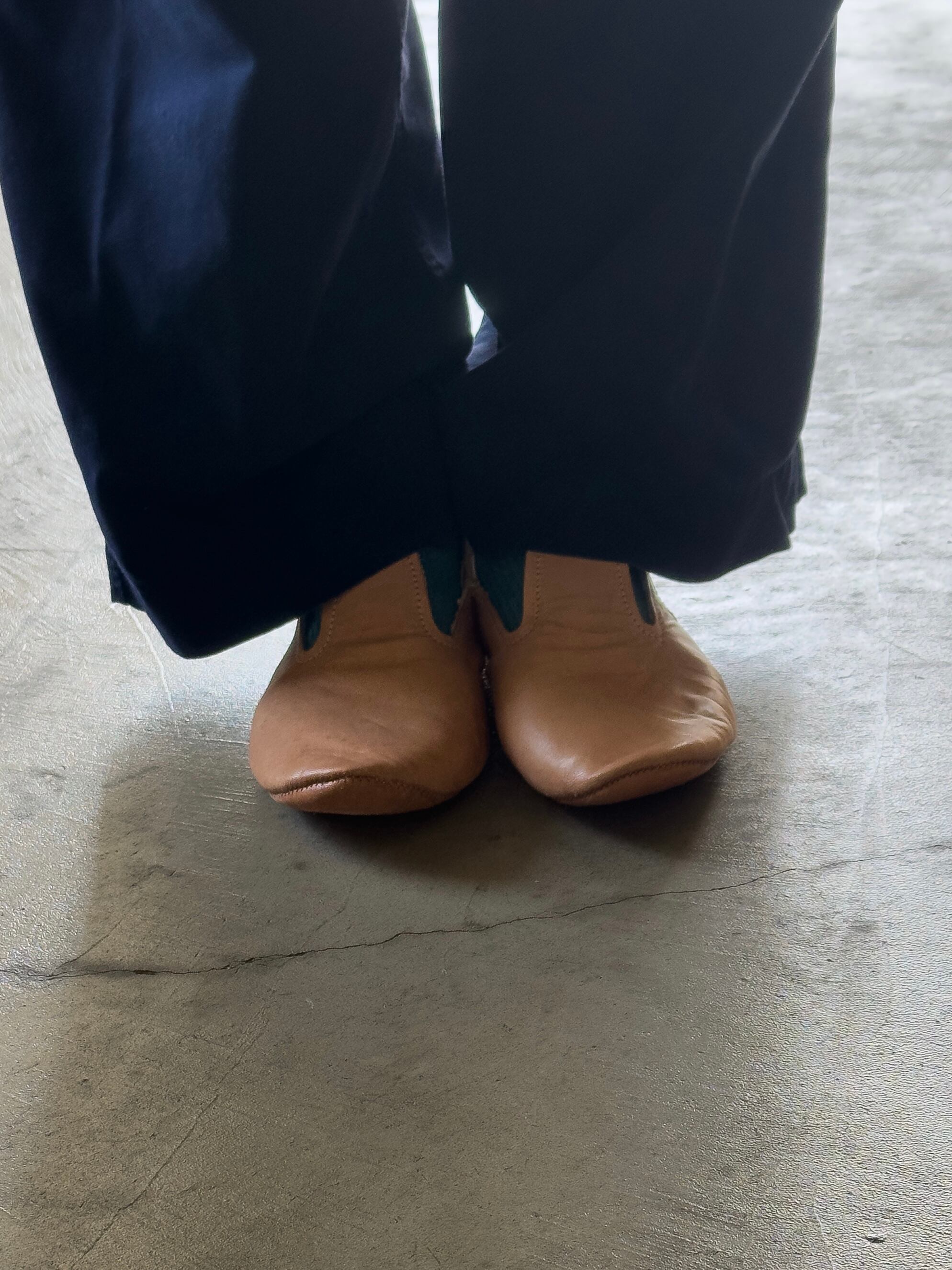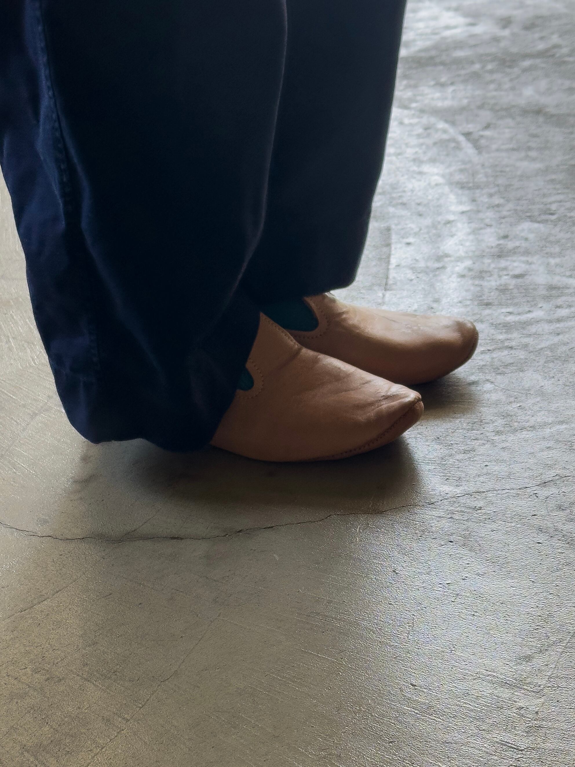 ソールまで共革で仕上げられた独特の作りは、ルームシューズとしてのリラックス感がありながらも、どこか凛とした気品を感じさせます。
