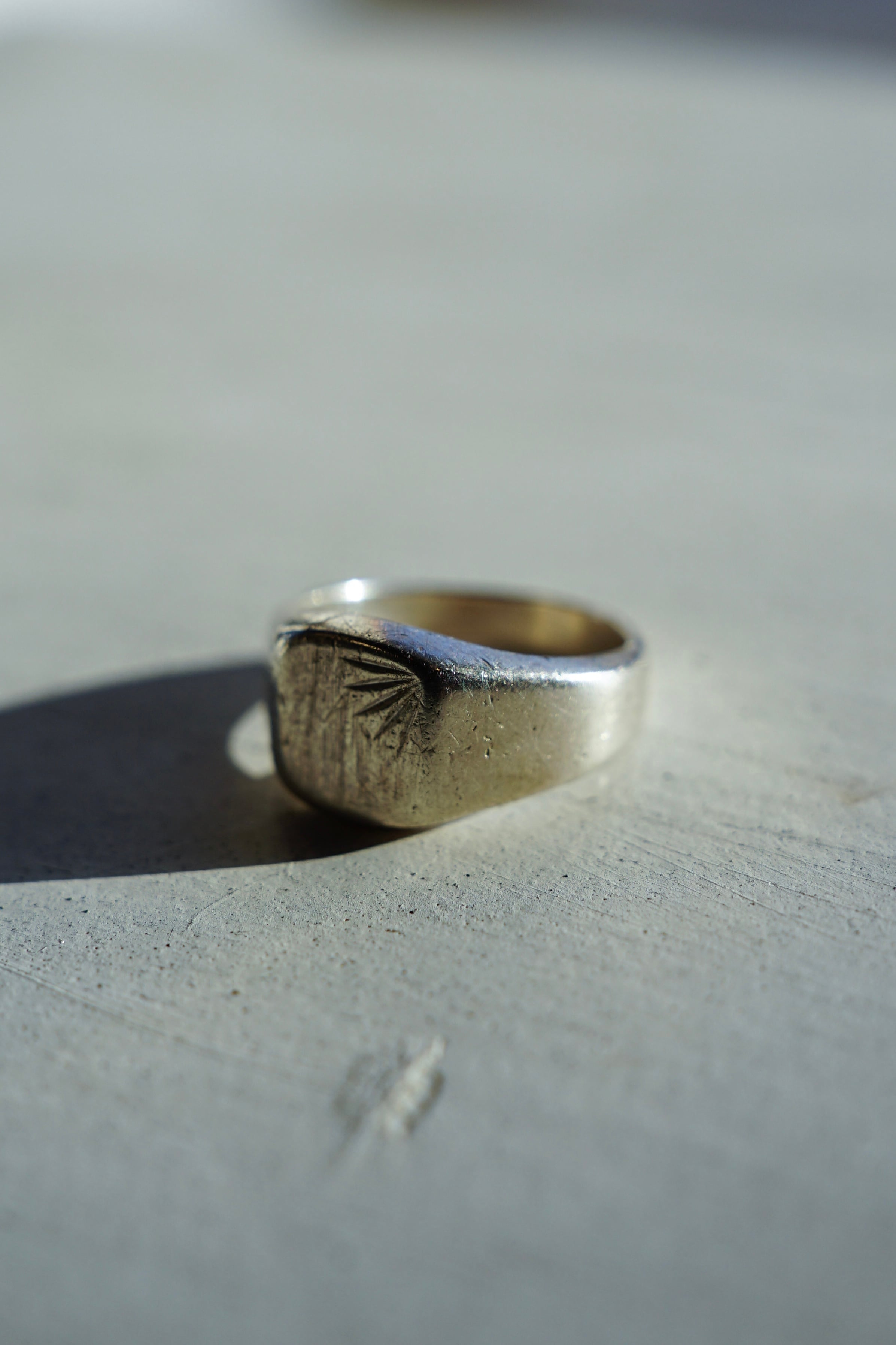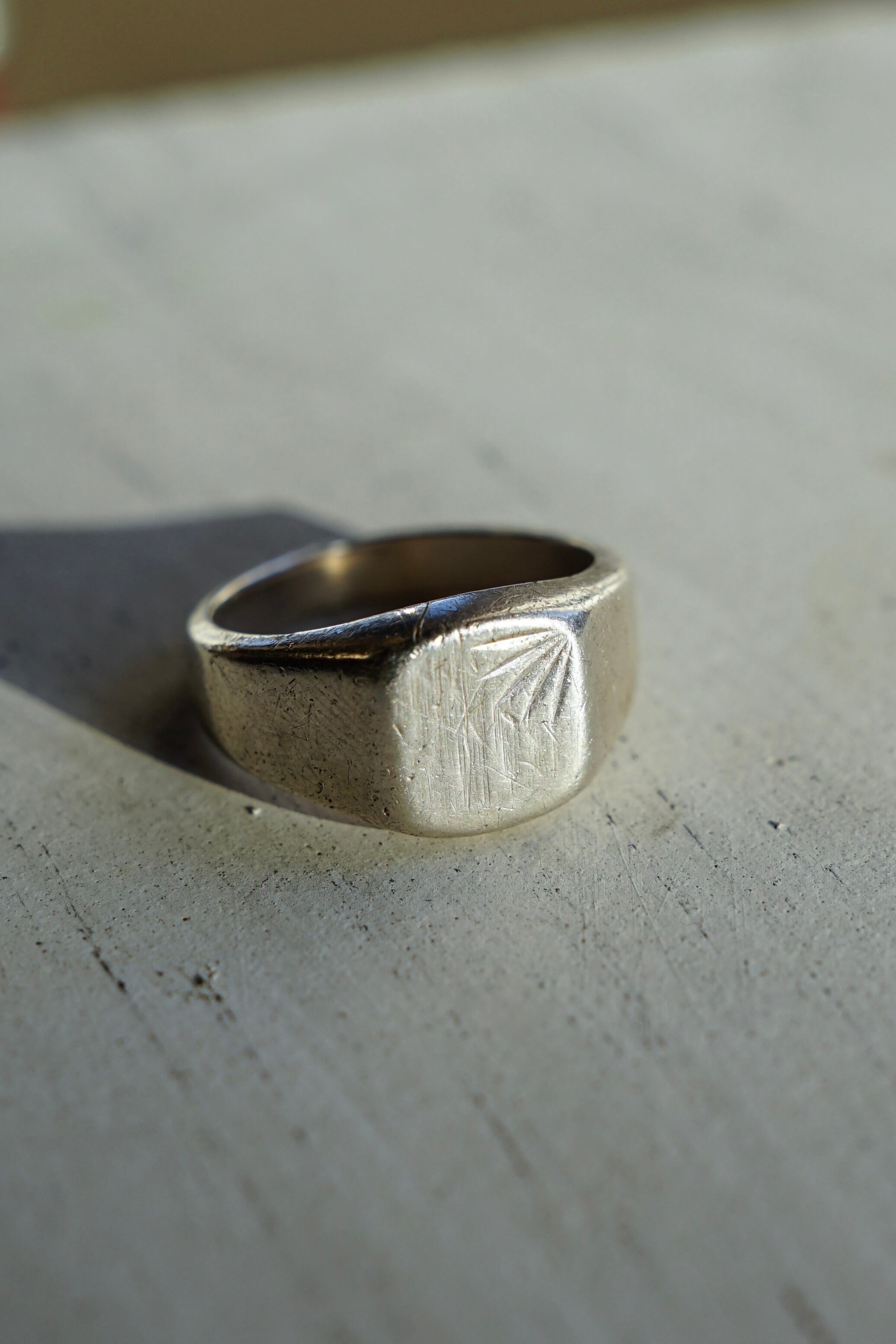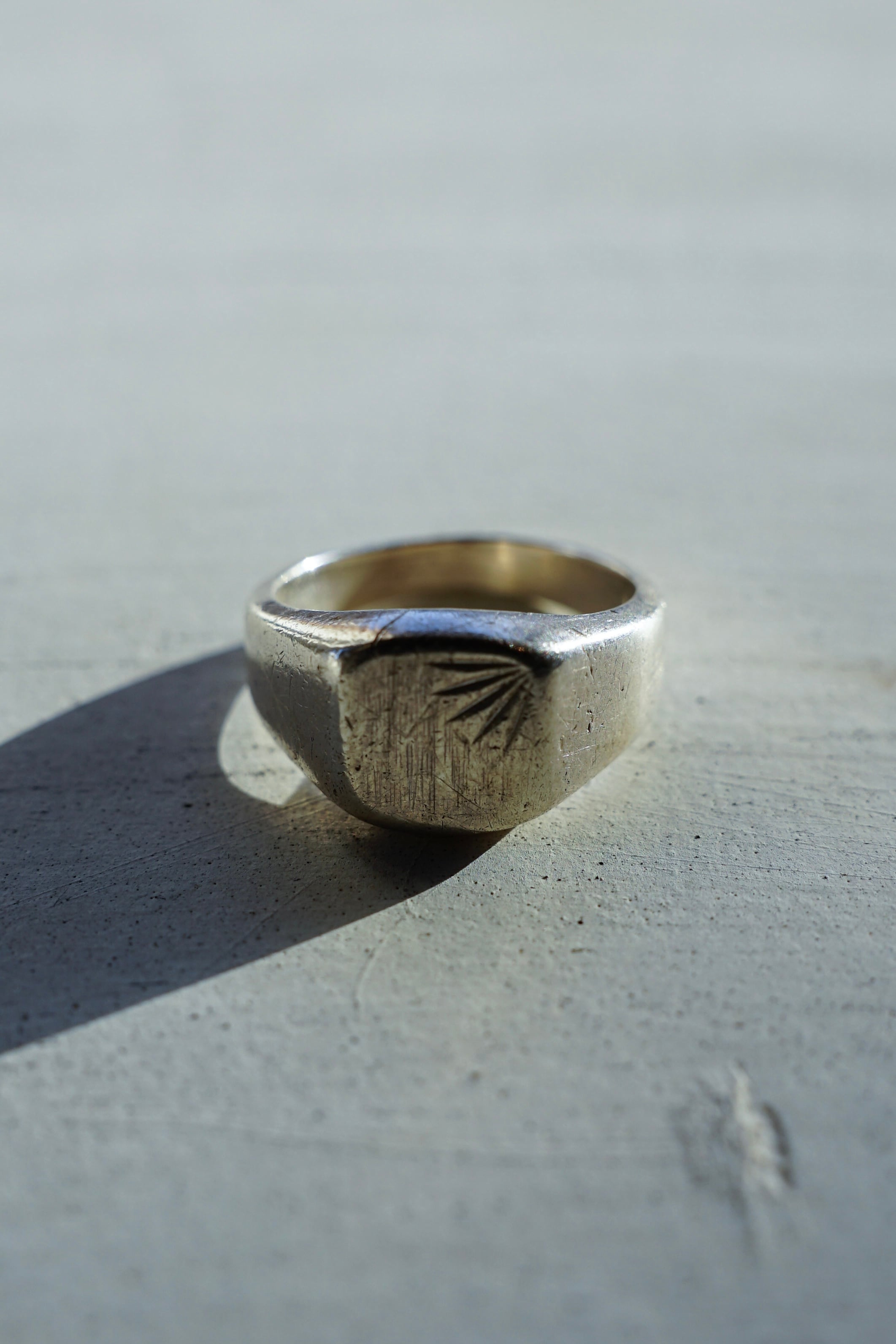 [Vintage] 50〜60's French Jewelry Sunburst Square Signet Ring 17号