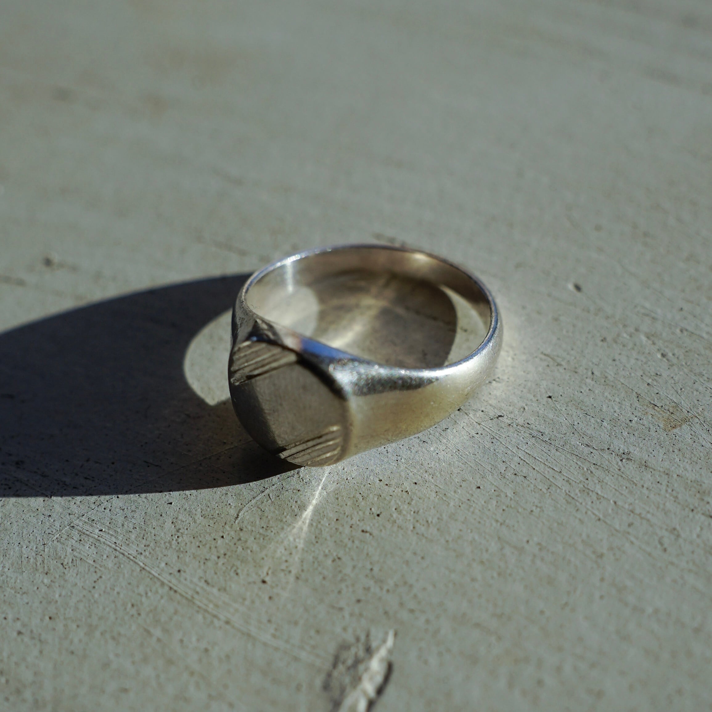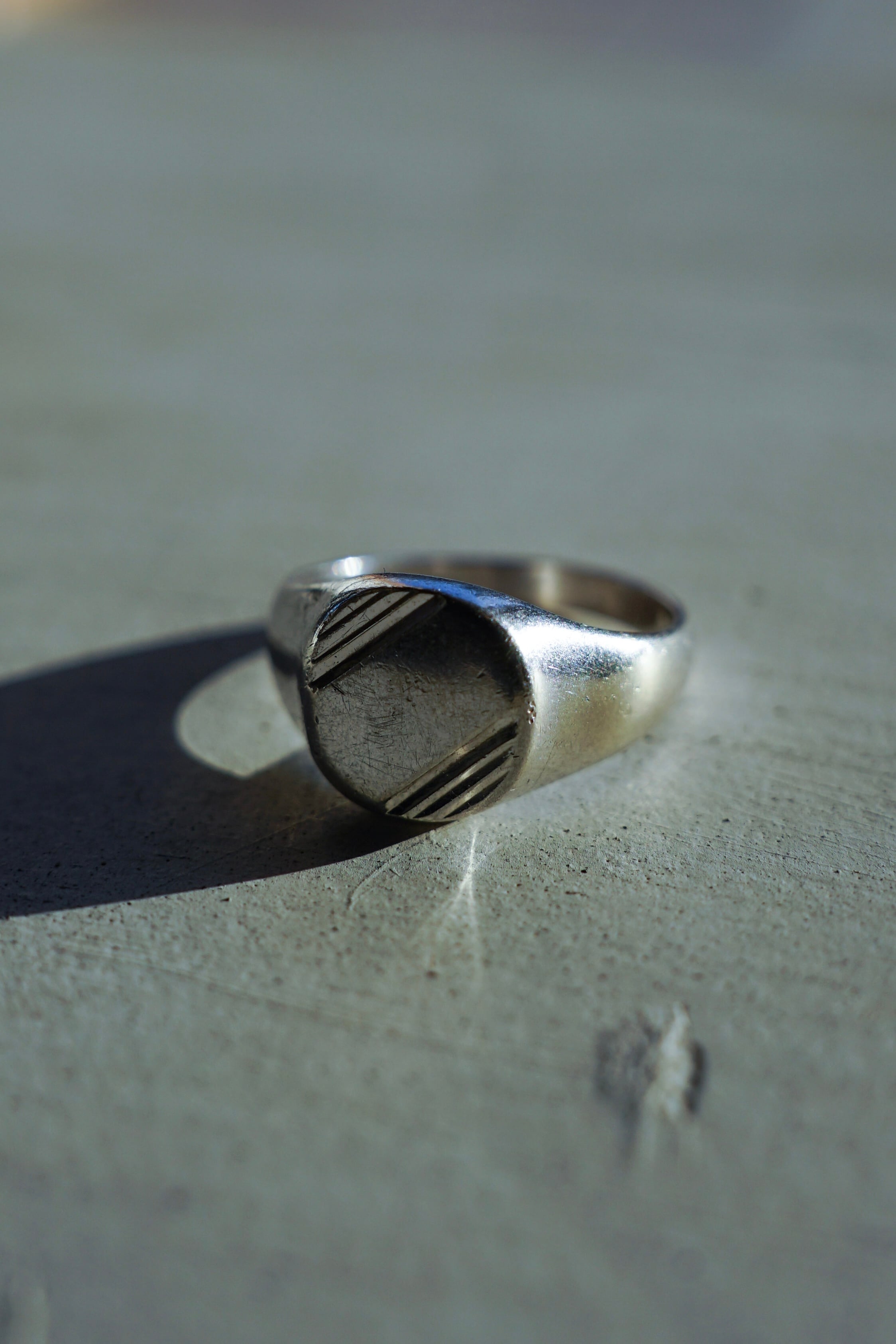 [Vintage] 70〜80's French Jewelry "Silver925" Diagonal Striped Signet Ring 23号