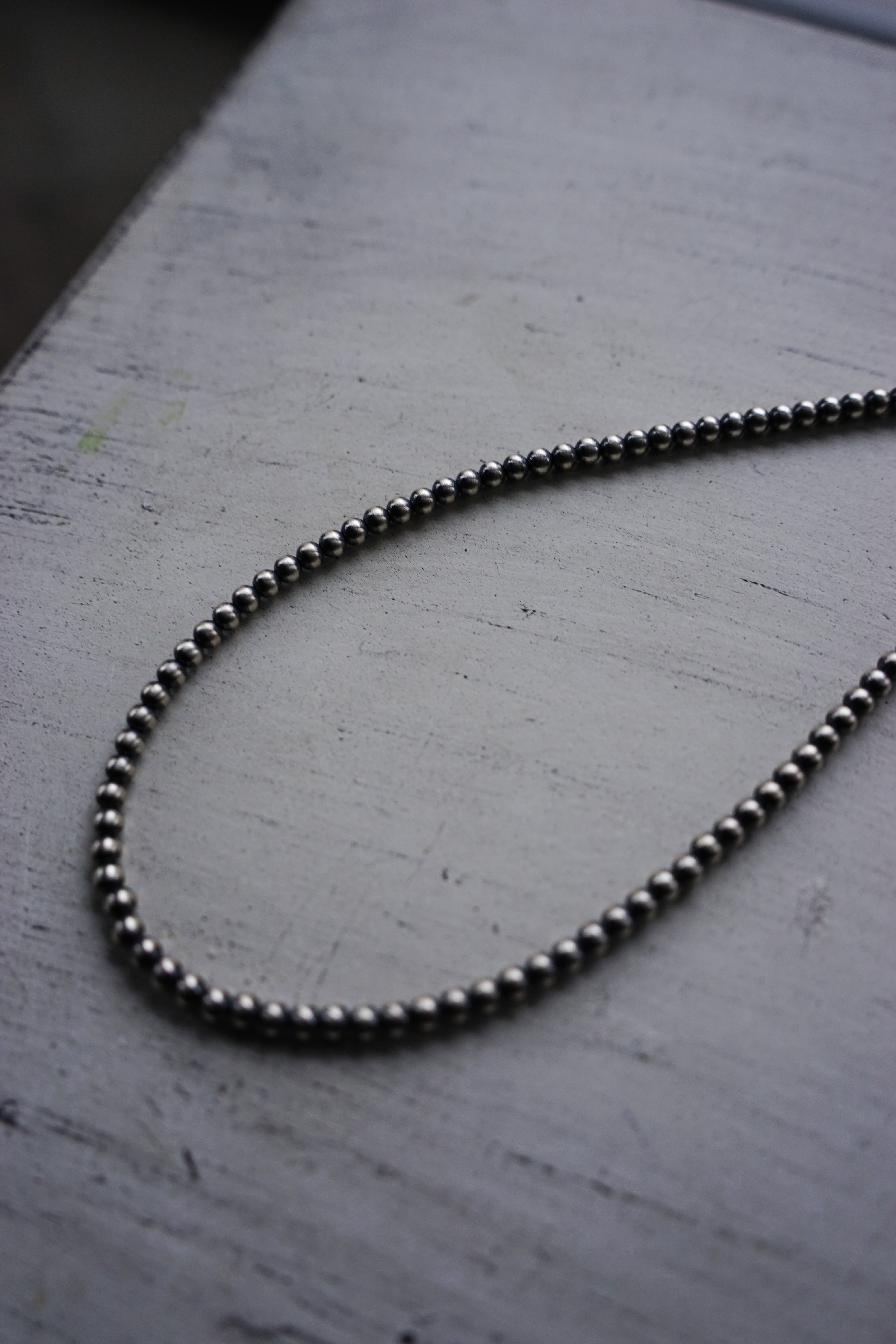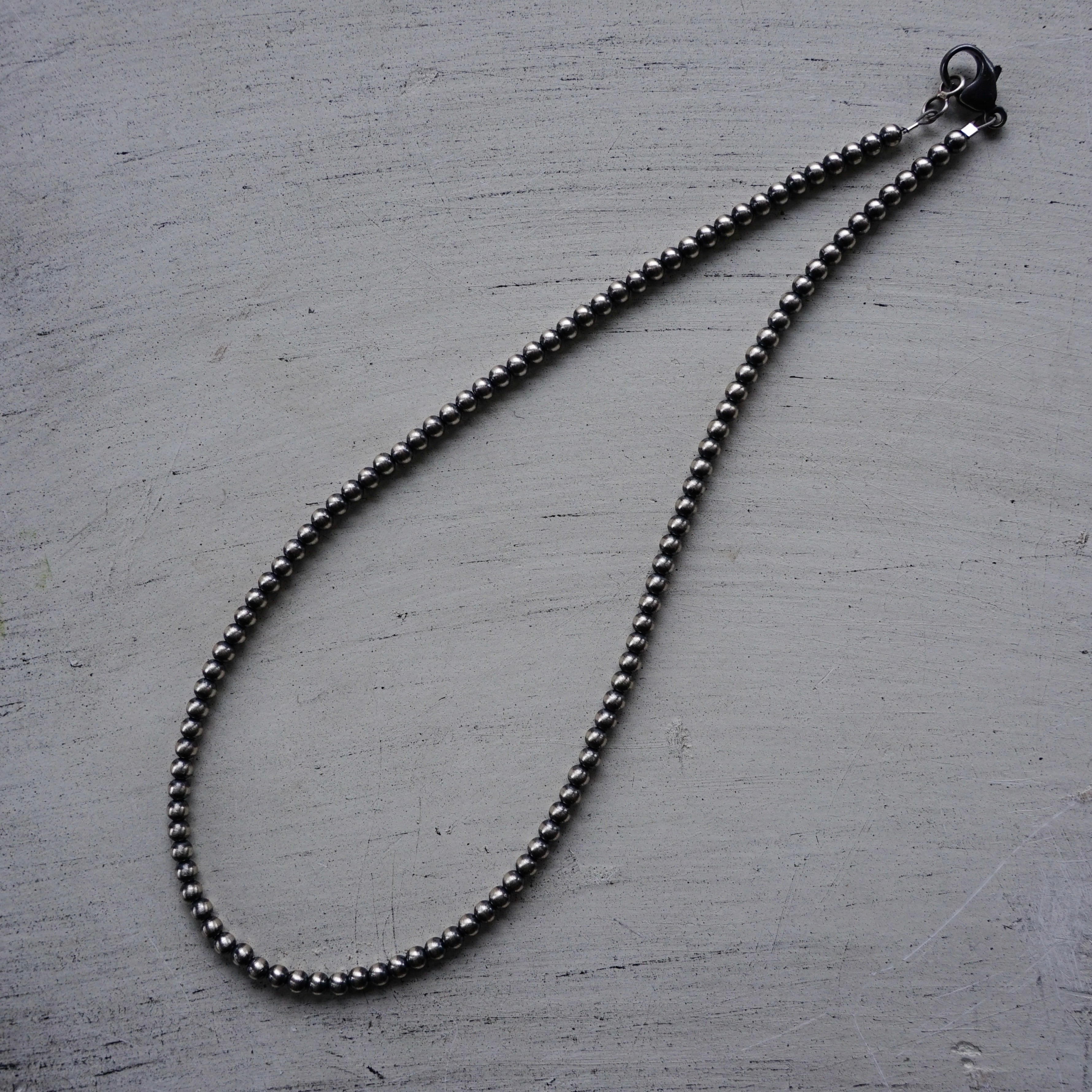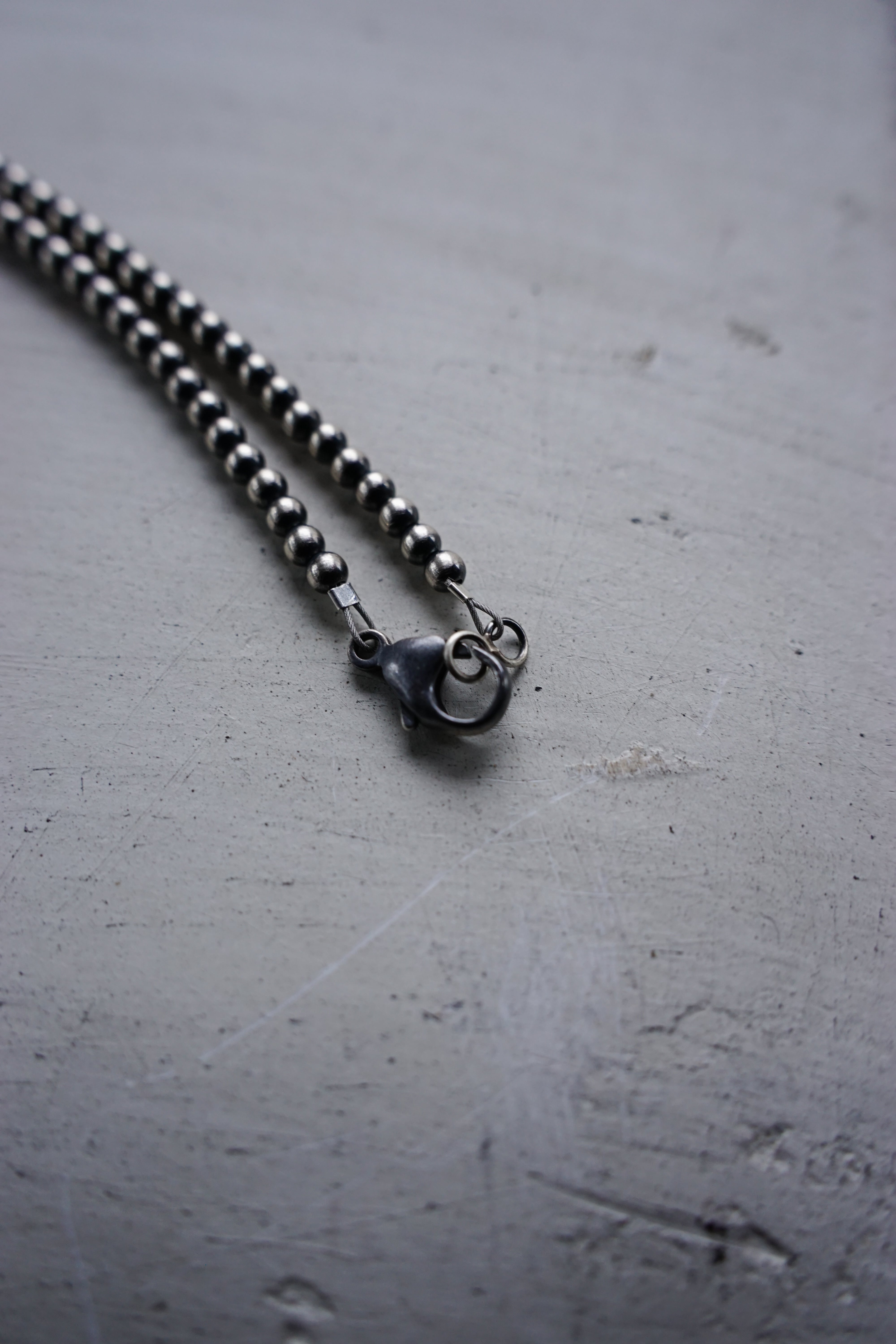 絶妙なサイズバランスで連なるシルバービーズは、一点投入するだけで大人の装いを格上げする普遍的な美しさを備えています。