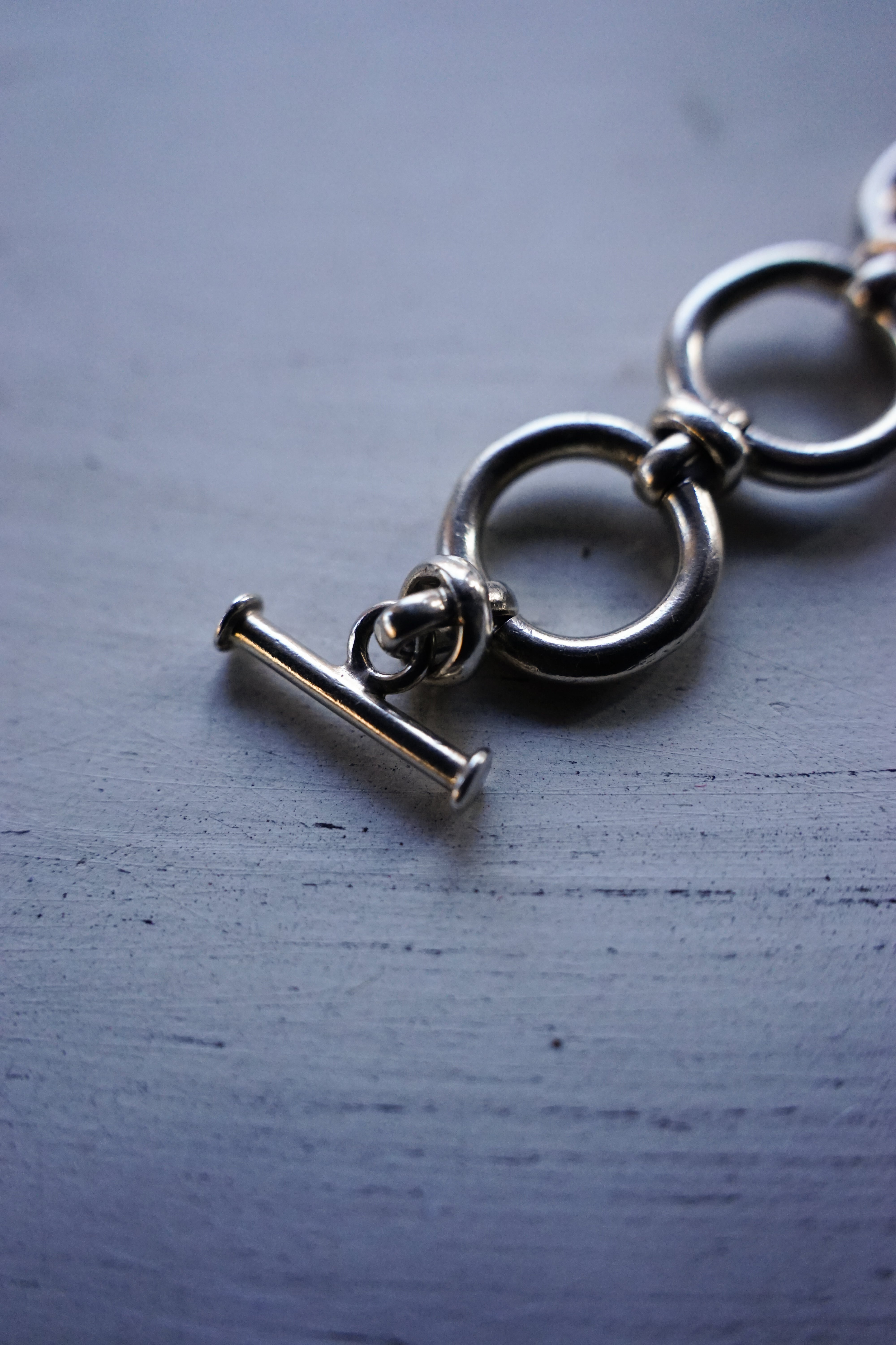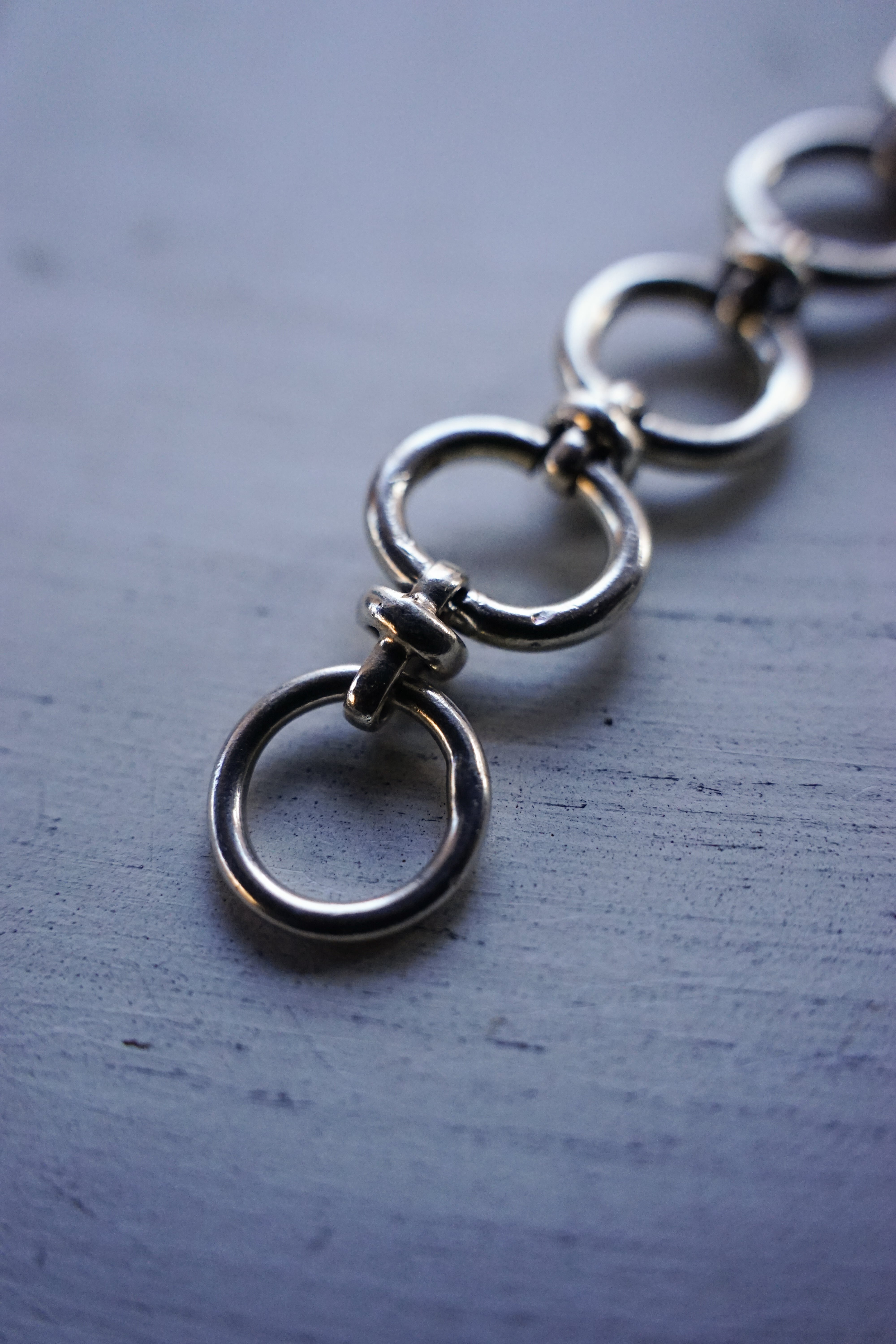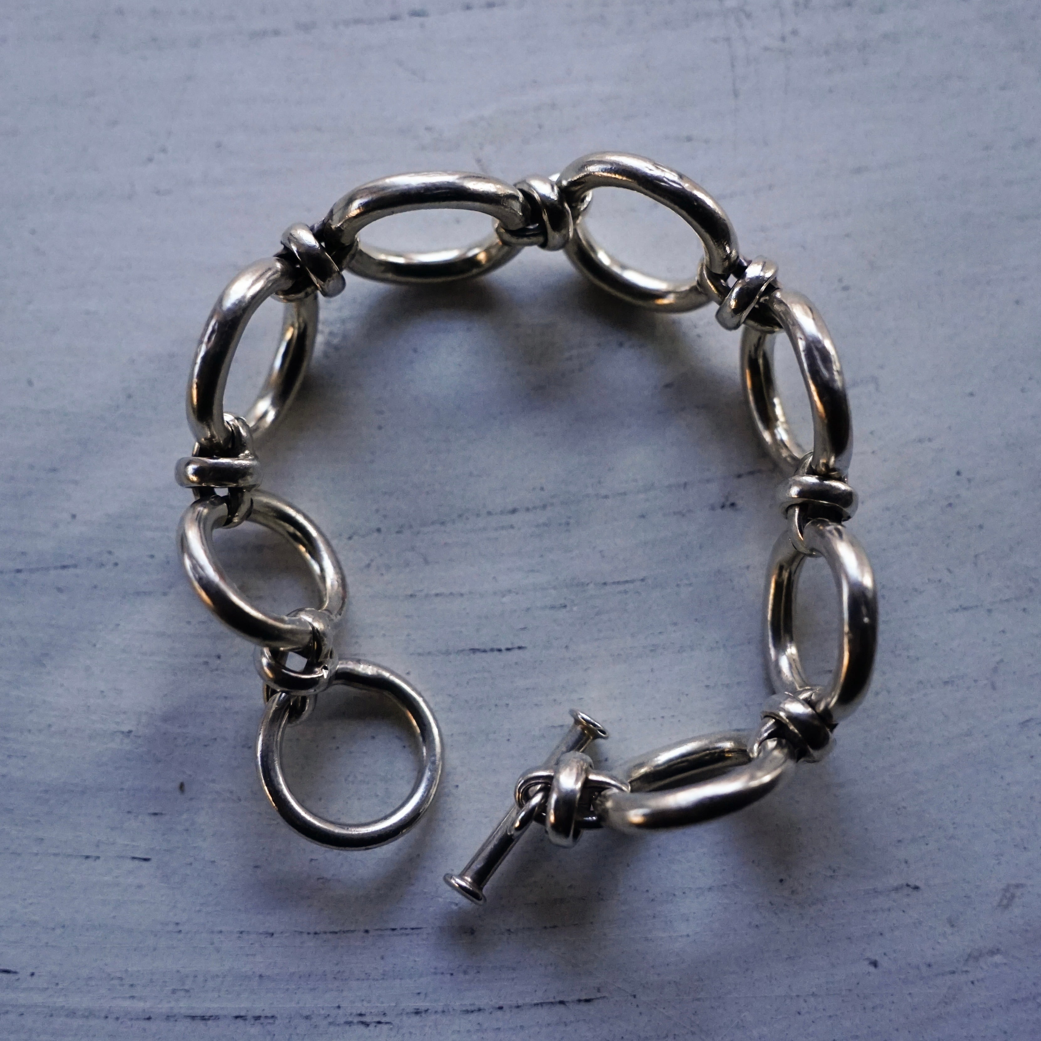 大きなオーバルリンク(楕円のコマ)を力強く繋ぎ合わせた、シンプルながらも重厚なデザイン。