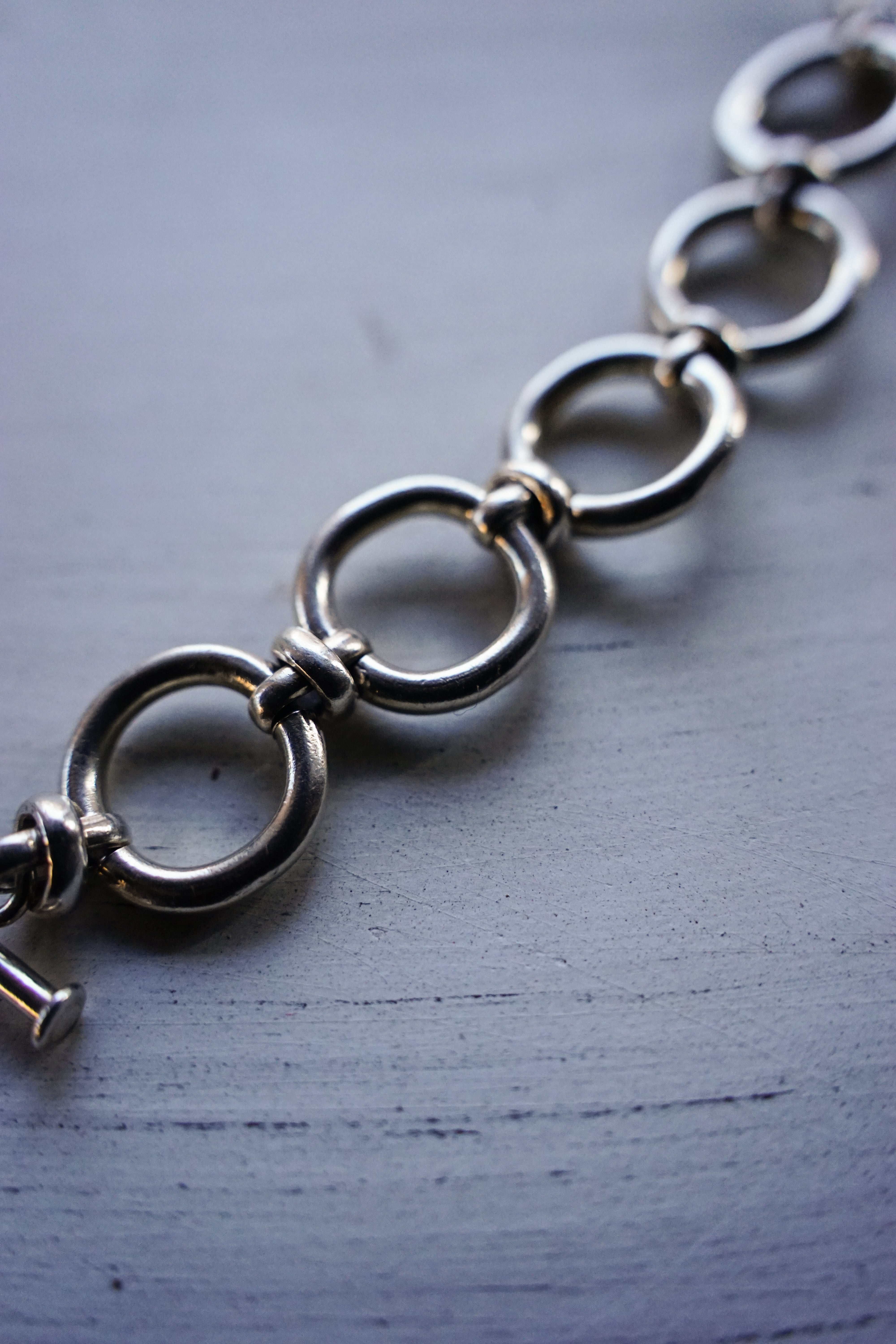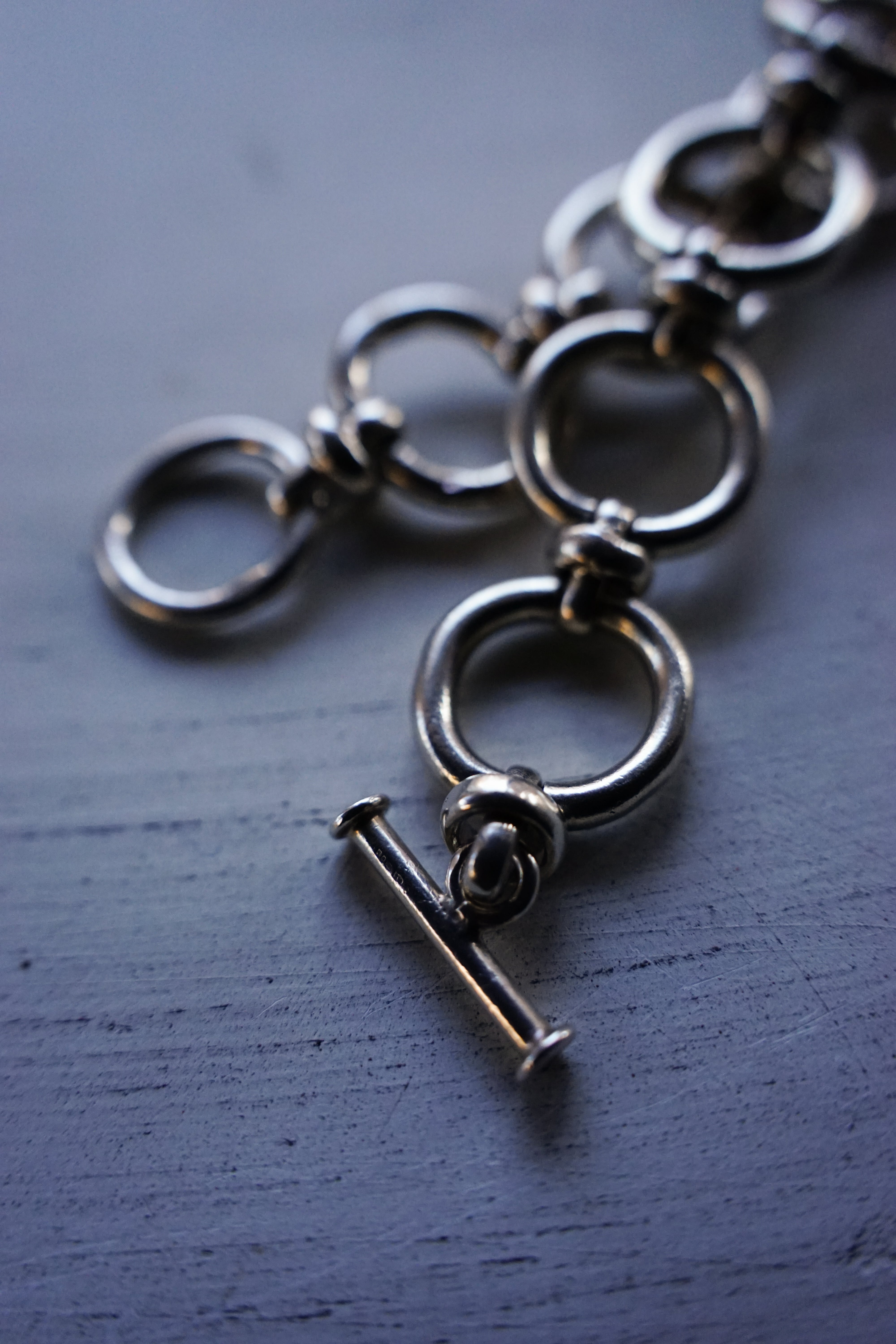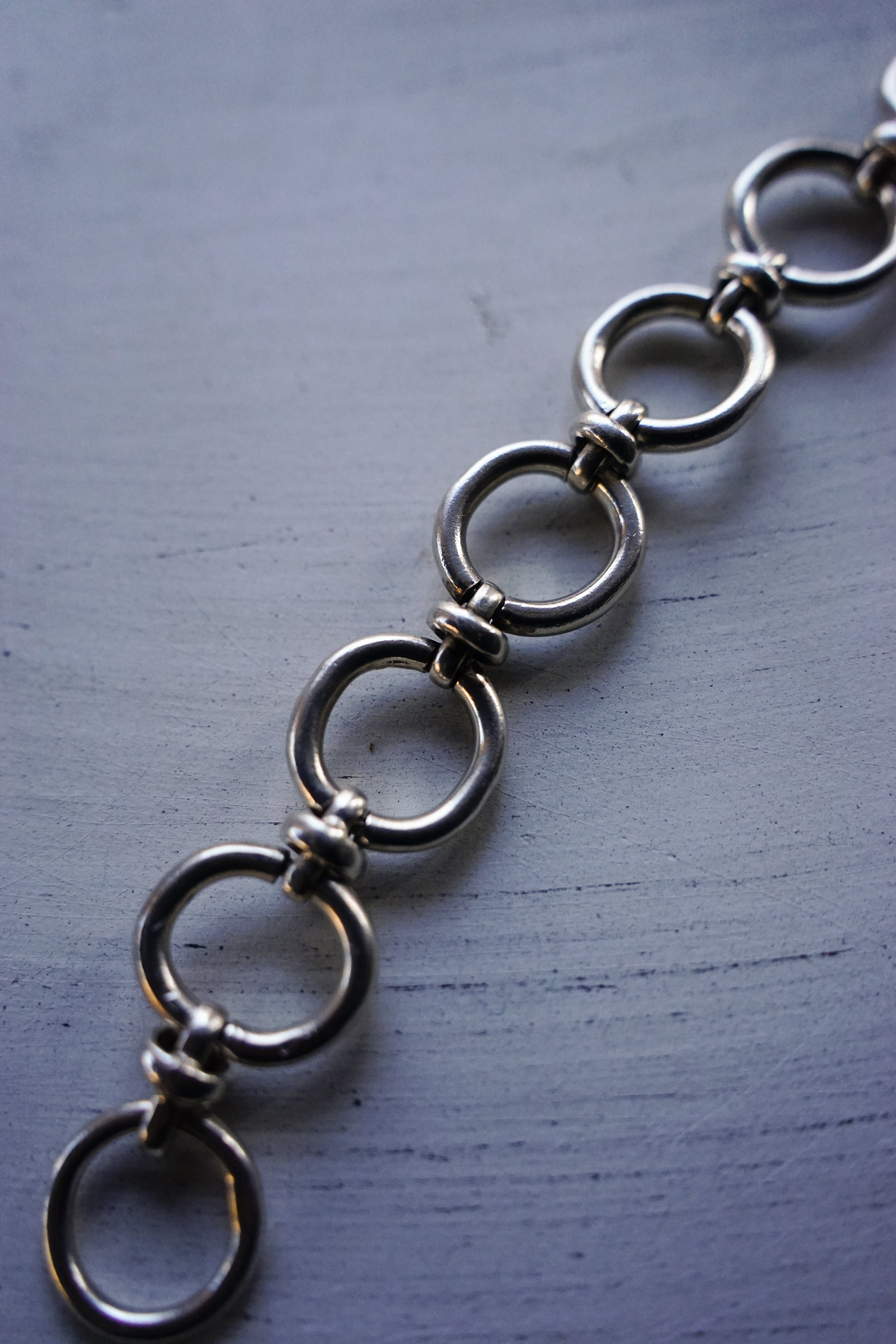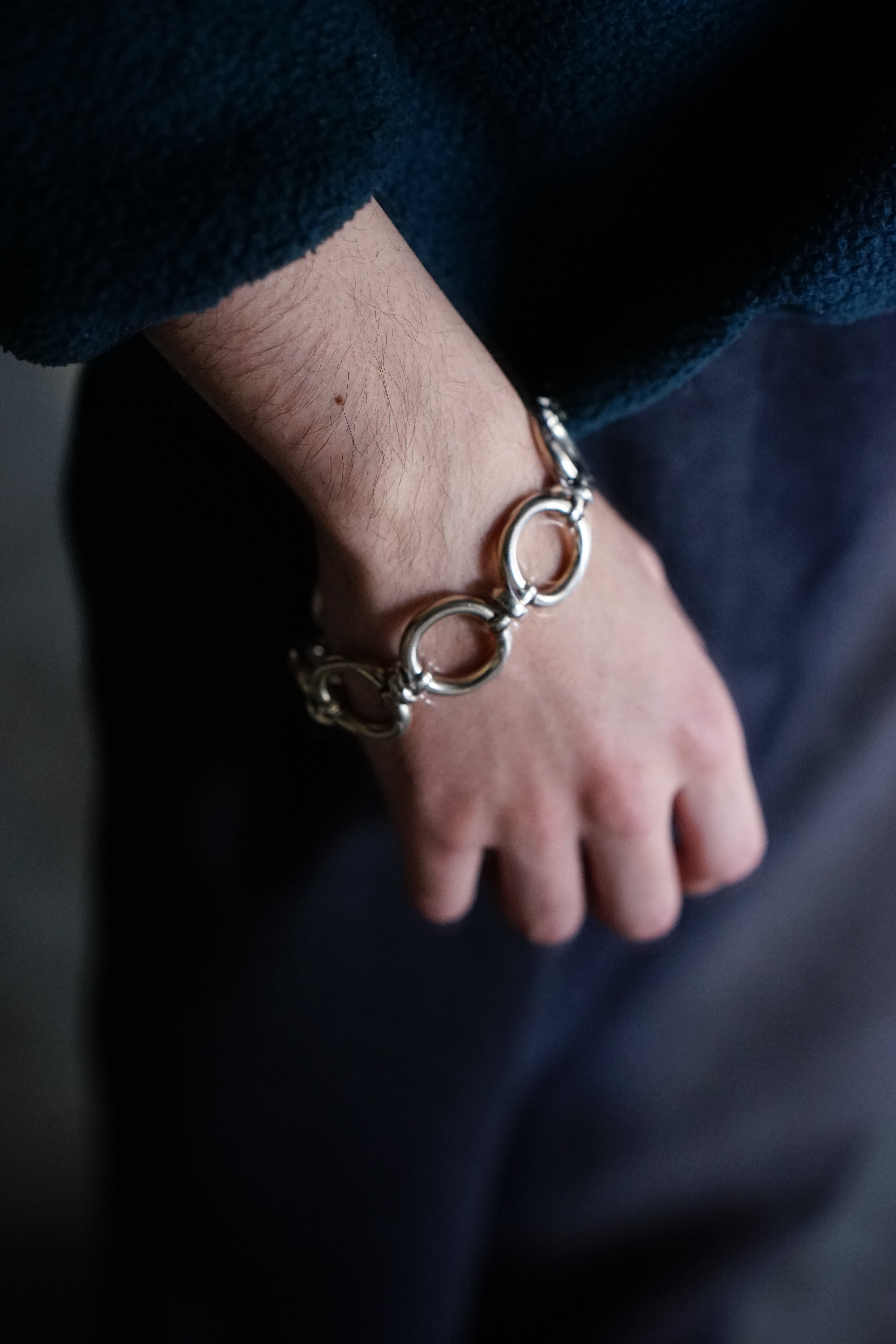 大きなオーバルリンク(楕円のコマ)を力強く繋ぎ合わせた、シンプルながらも重厚なデザイン。