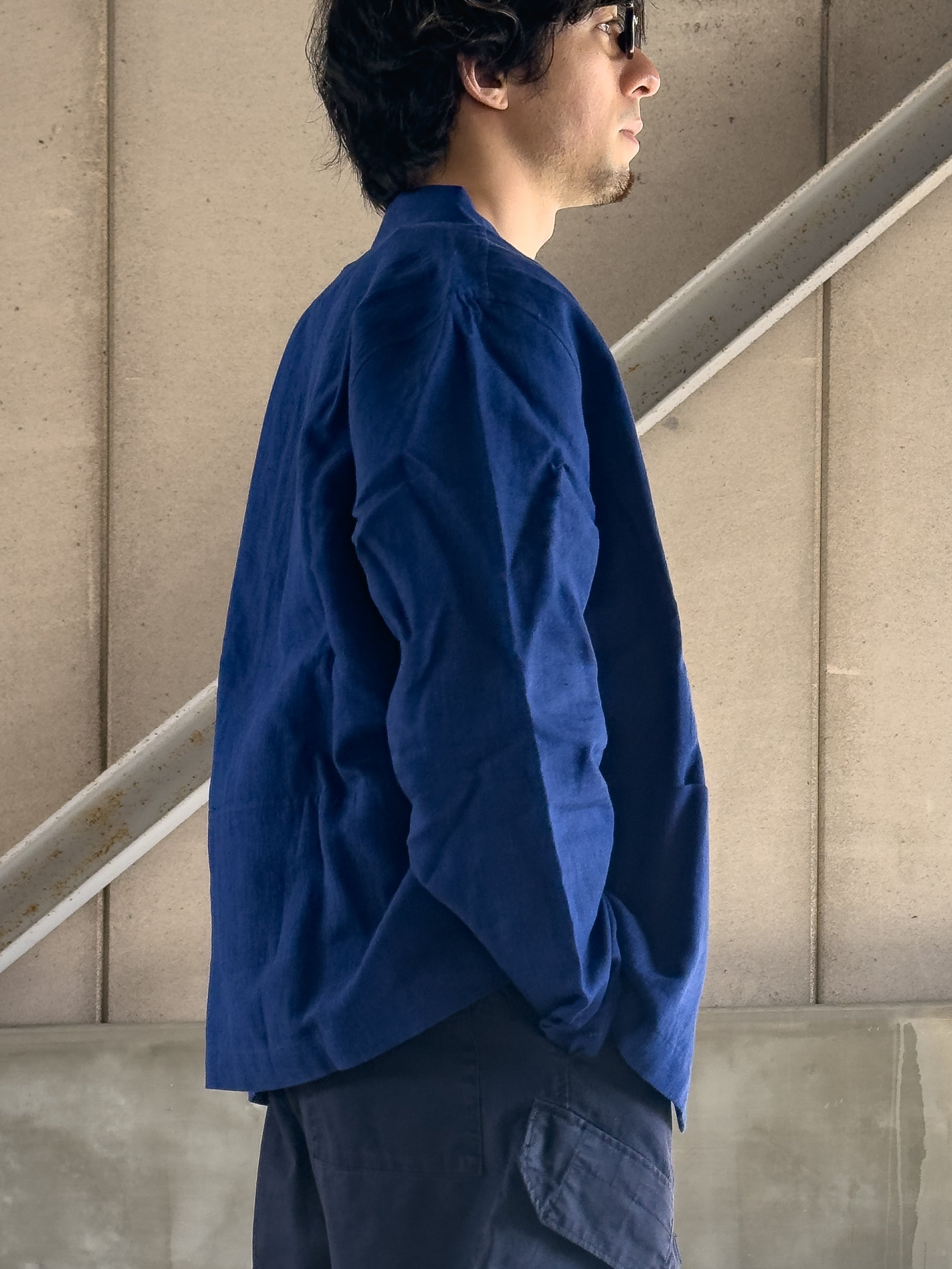 肉厚でタフなこのリネンは、着込むほどにオーナーの身体の形に馴染み、柔らかく変化していきます。