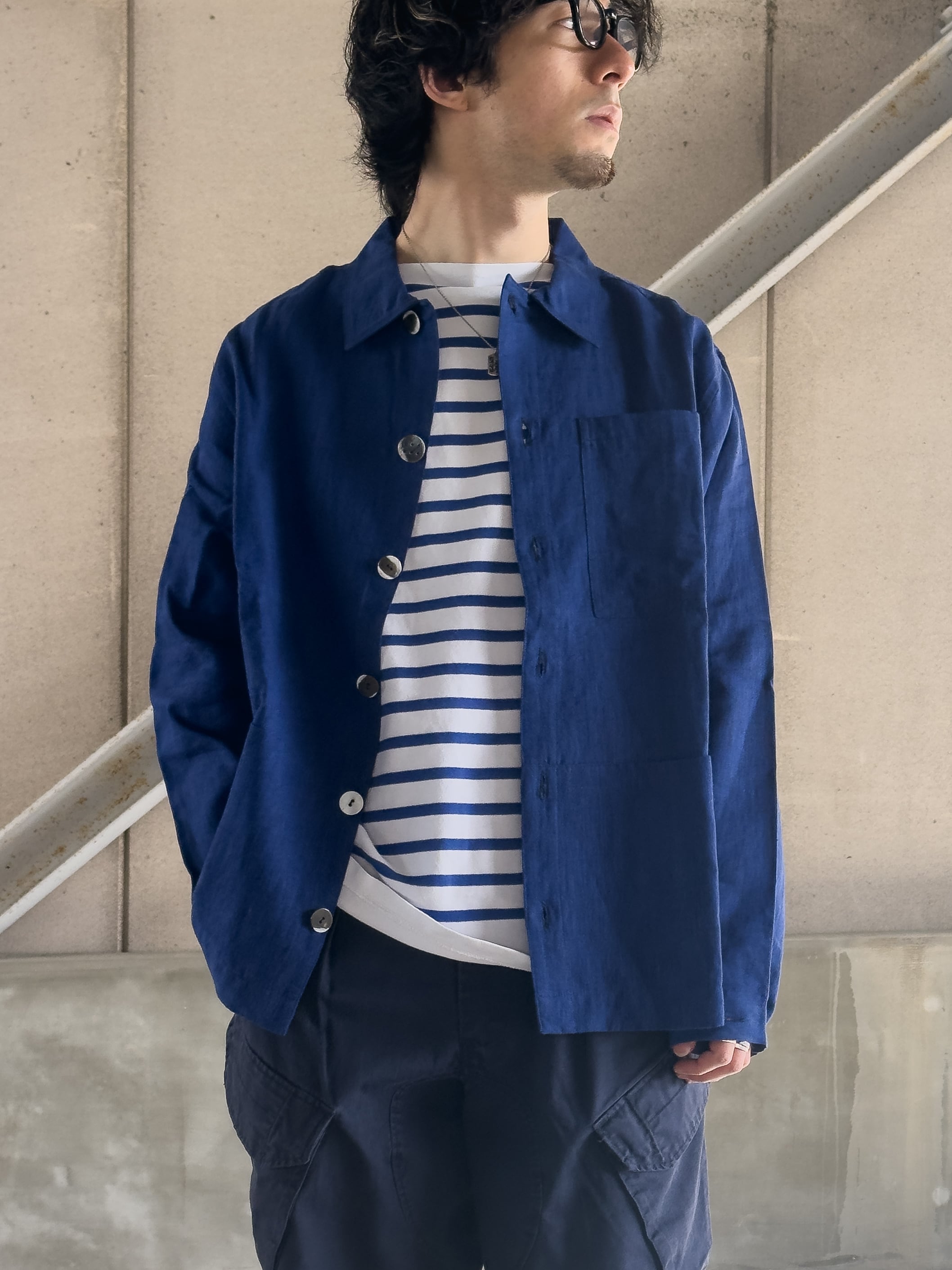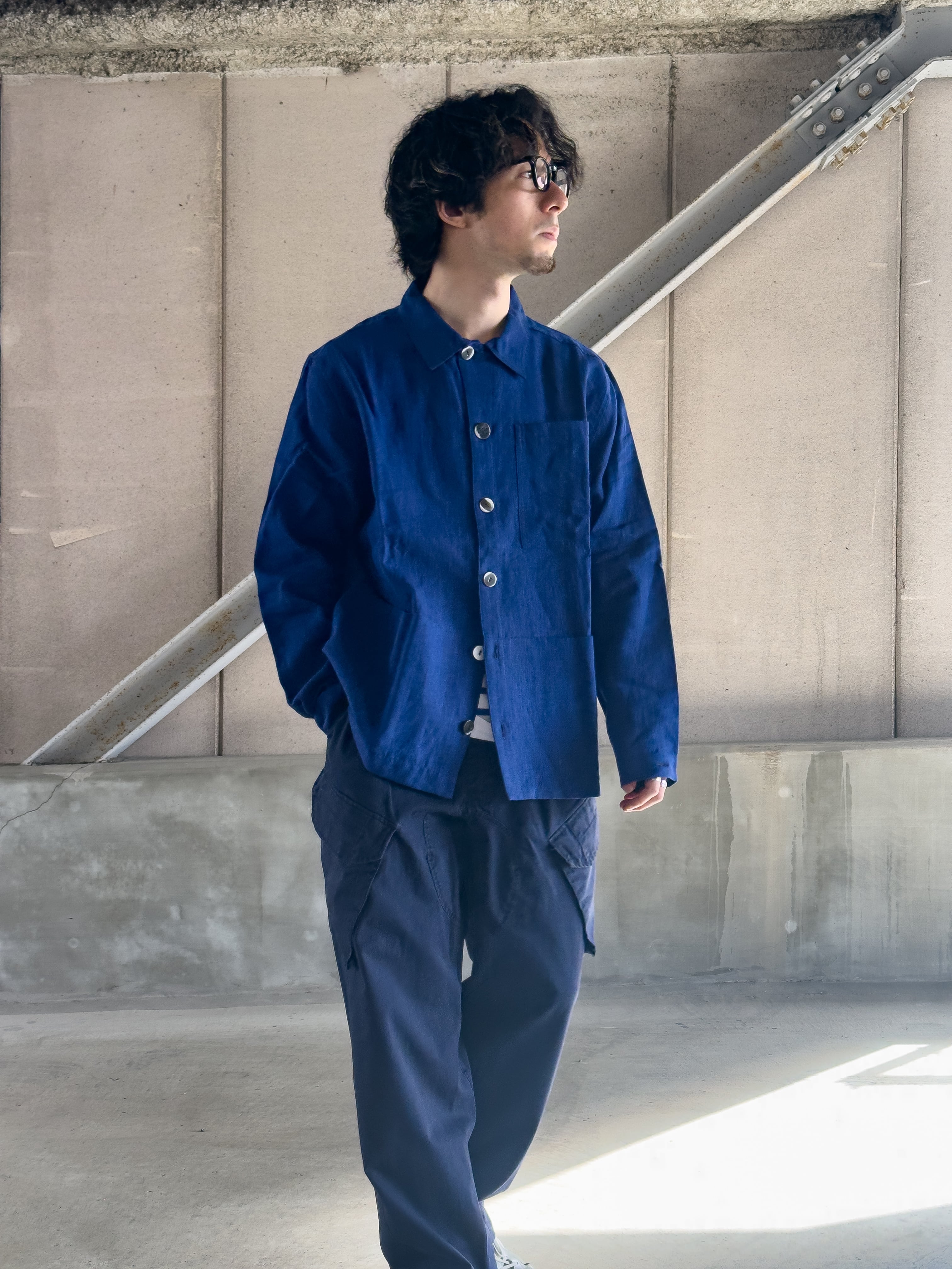 これは、過酷な労働環境に耐えるために開発されたヴィンテージワークジャケットへのオマージュであり、その無骨なディテールをあえて、繊細で上品な表情を持つ最高級アイリッシュリネンという対極の素材で表現する点に、デザイナーのこだわりが凝縮されています。