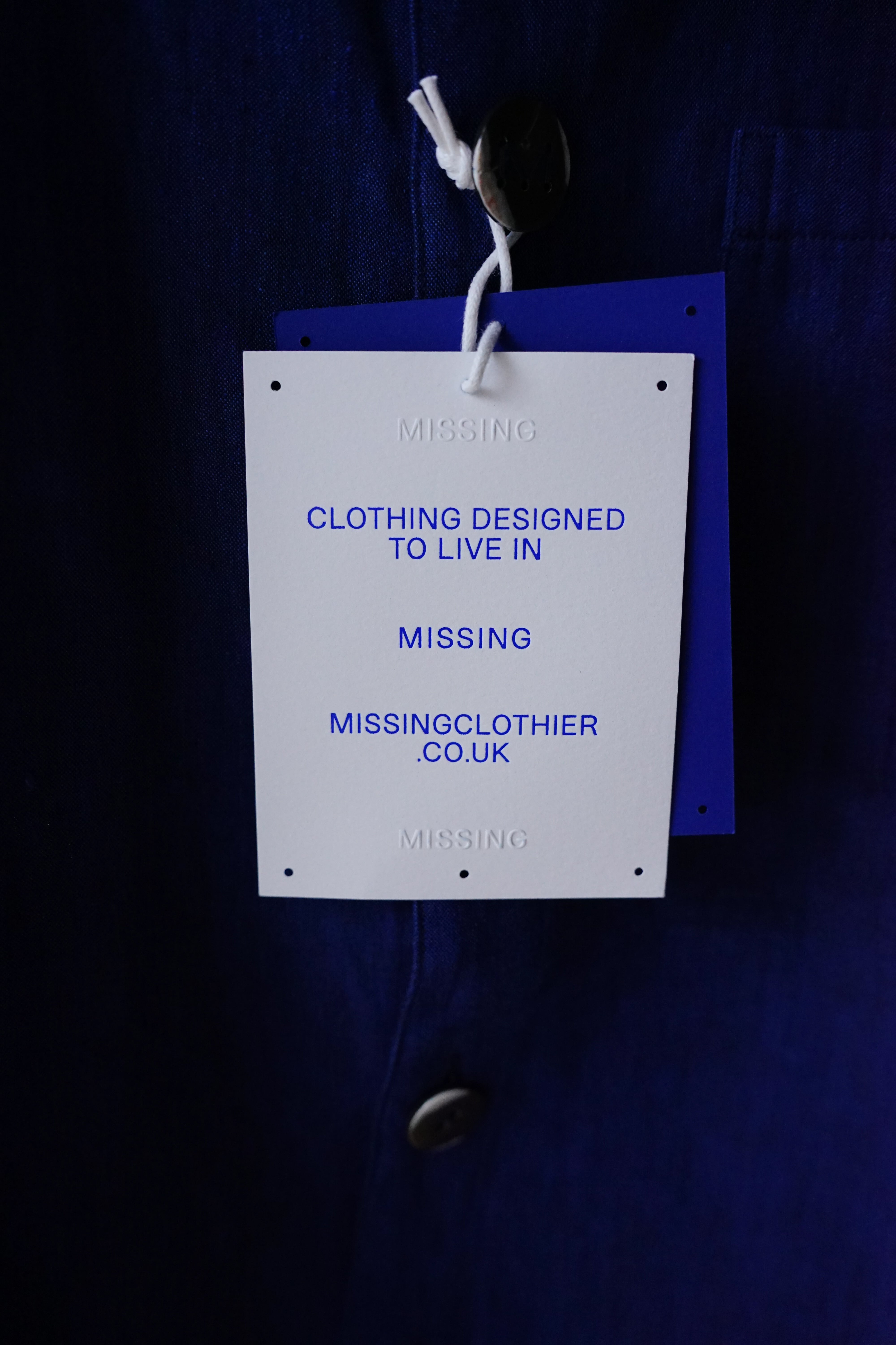 MISSINGはポール・ミッシングとデボラ・ミッシングという二人の作り手が、ロンドンを拠点にイギリスの伝統的なテーラリングと実用的なワークウェアの要素を掛け合わせ、時代を超える衣服を創り出すことを目的としてスタートしたブランドになります。