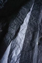 アメリカを代表するサイエンスカンパニーの知見が詰まったこの素材は、紙のようにドライで渇いた独特の質感を持ちながら、驚くほどの軽量性と、雨を退ける耐水性、そして過酷な使用にも耐えうる強靭さを兼ね備えています。