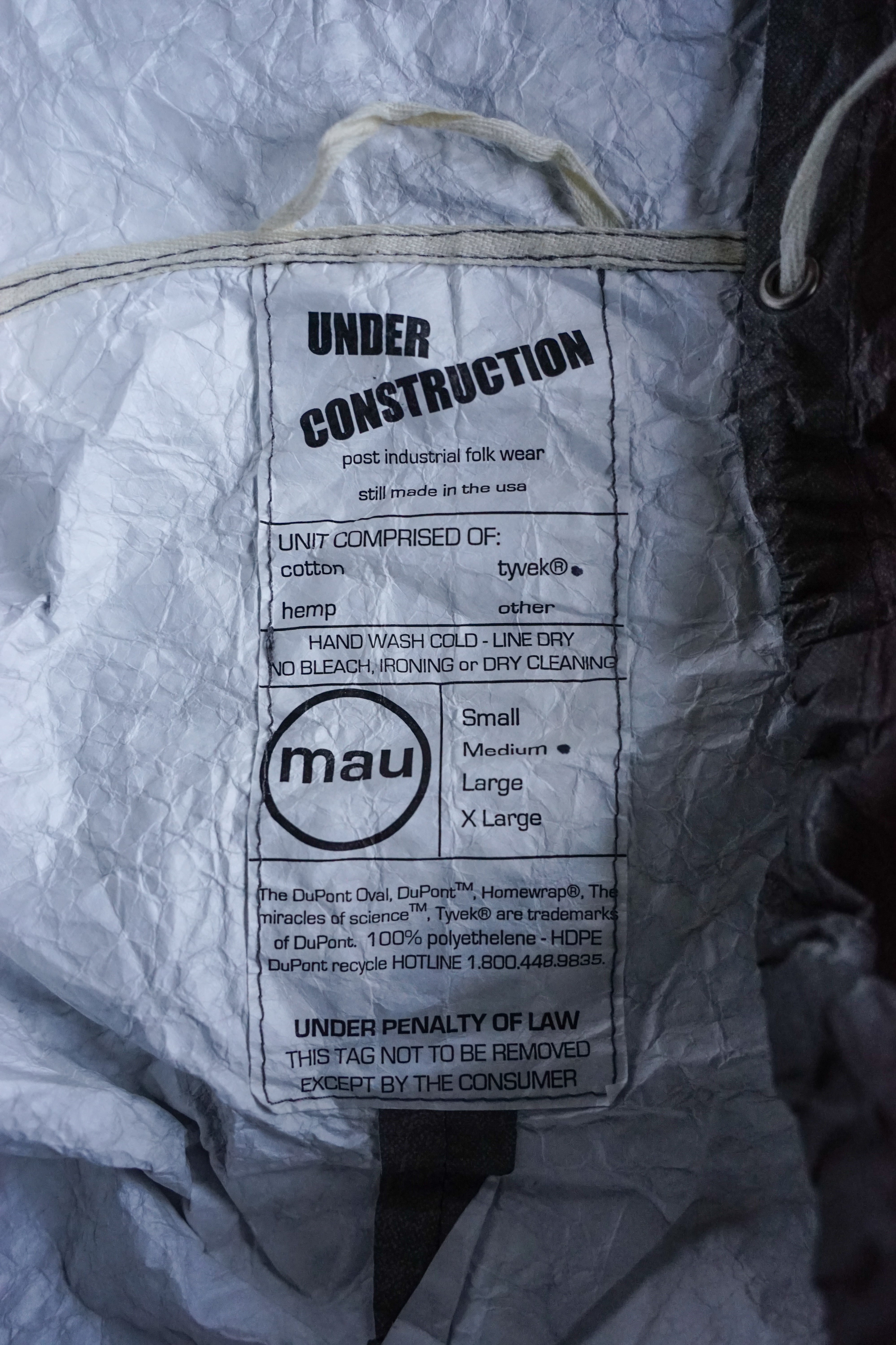 このアノラックを語る上で欠かせないのが、デュポン社が開発した高機能素材「Tyvek(タイベック)」の採用。