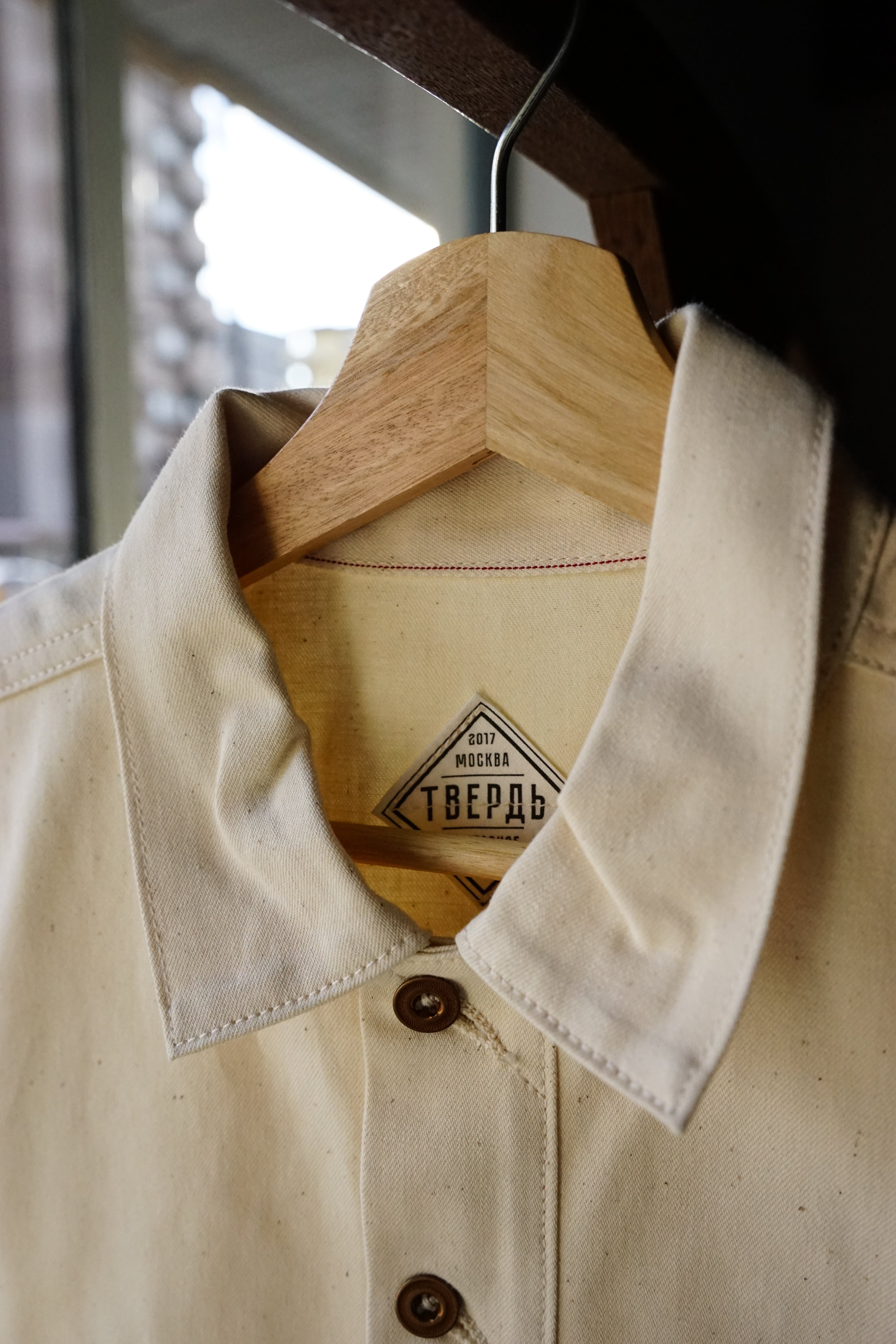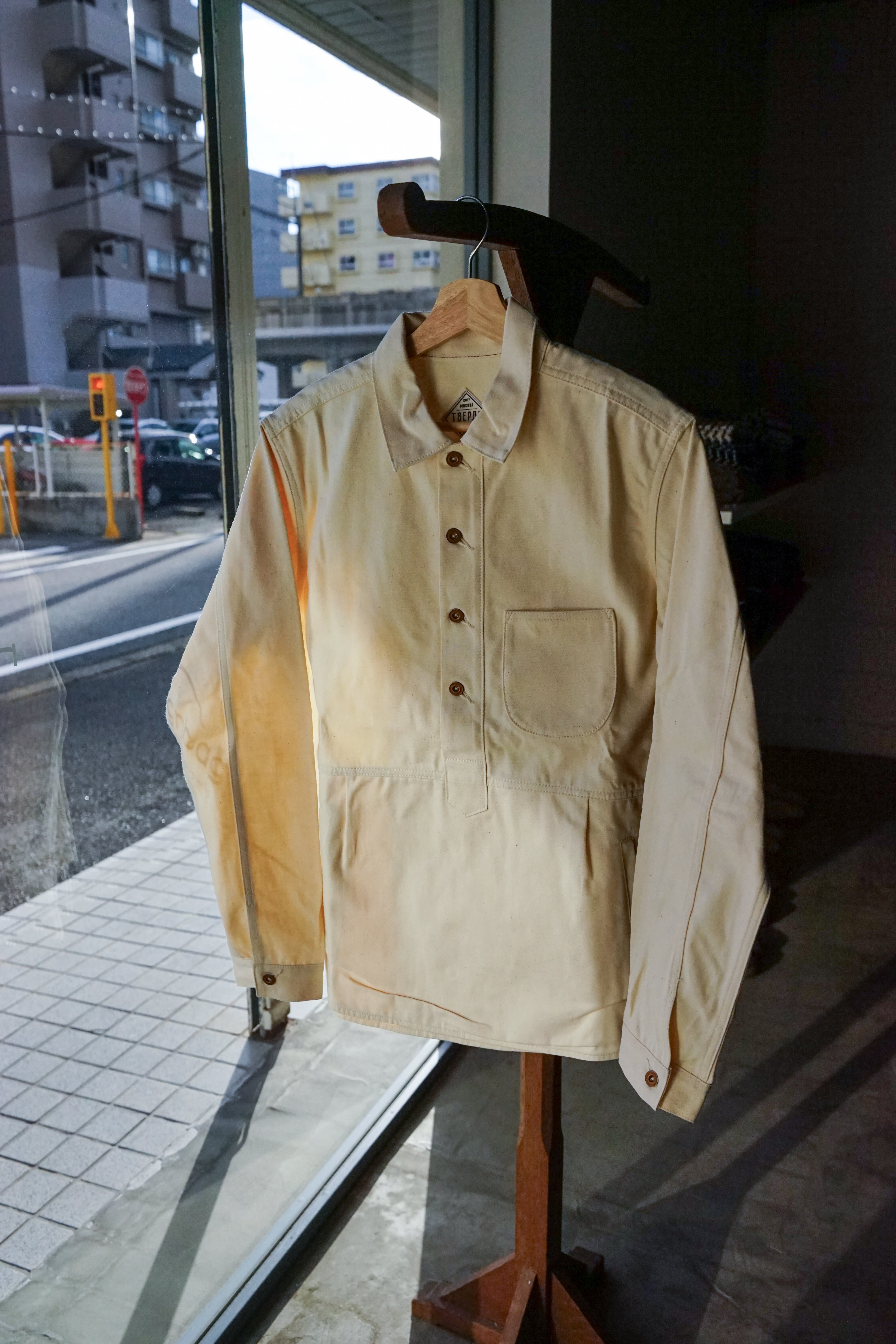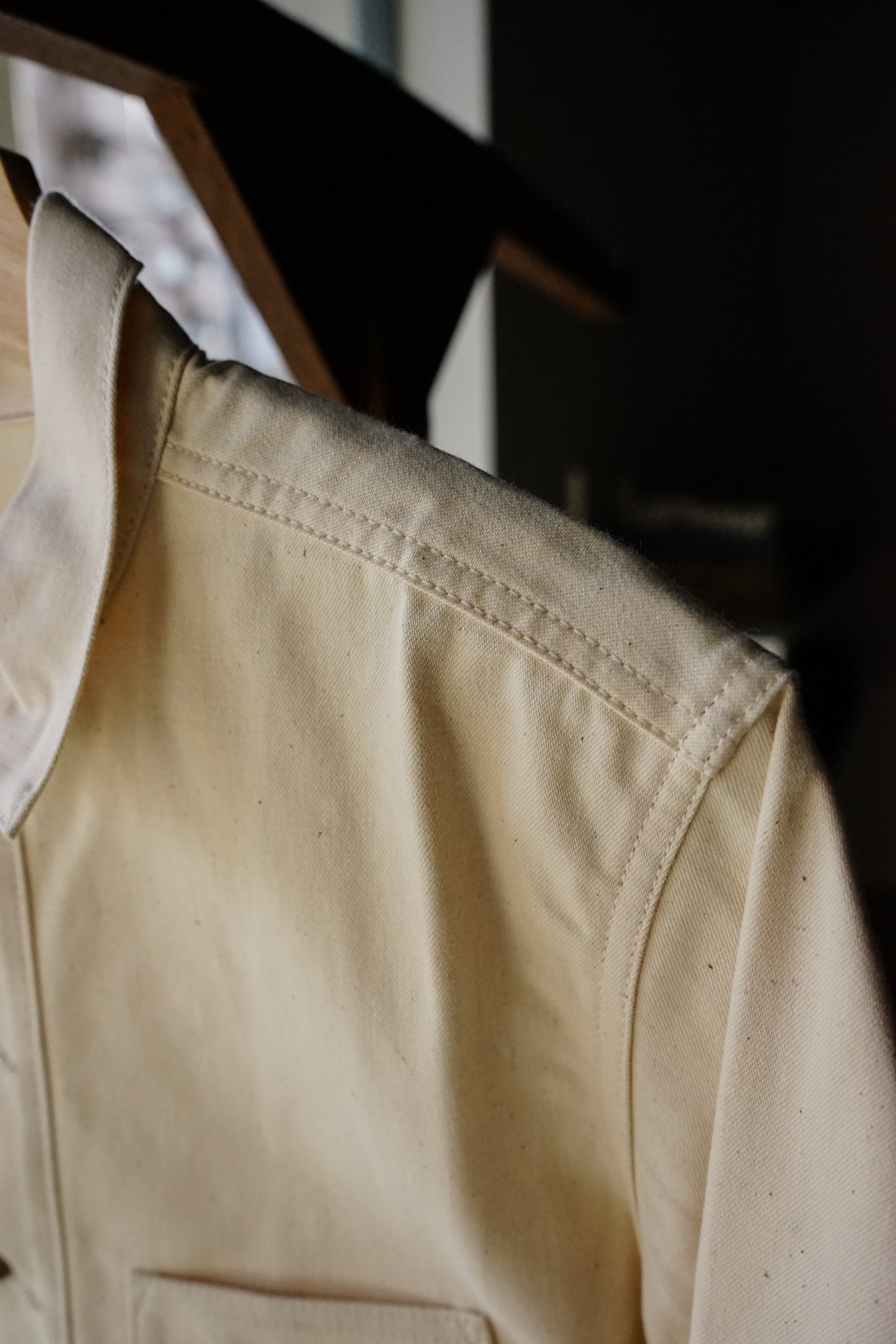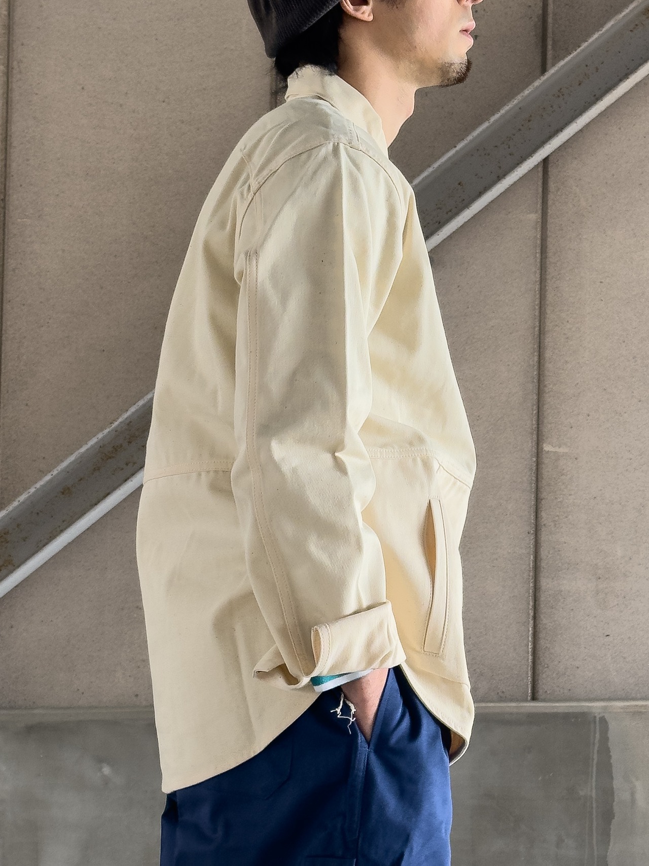TWERDより今回の入荷ラインナップの中でもひと際清涼感と無骨さが同居する一着、#201 KINARI SHOP SHIRTが届きました。