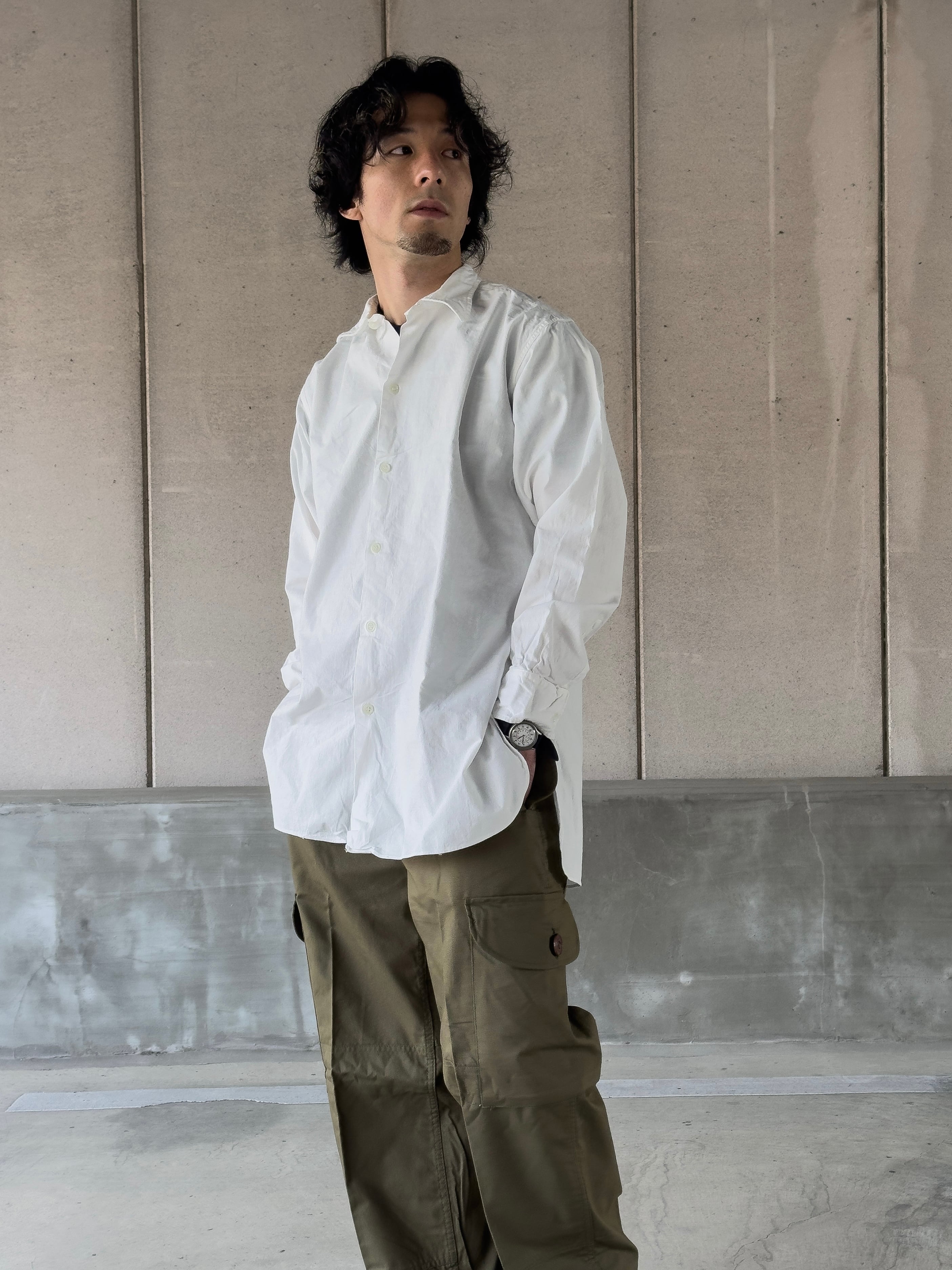 前線で使用されていたシャツではないため、無骨な印象が強いミリタリーのアイテムとはかなり違った印象を受けるかと思います。