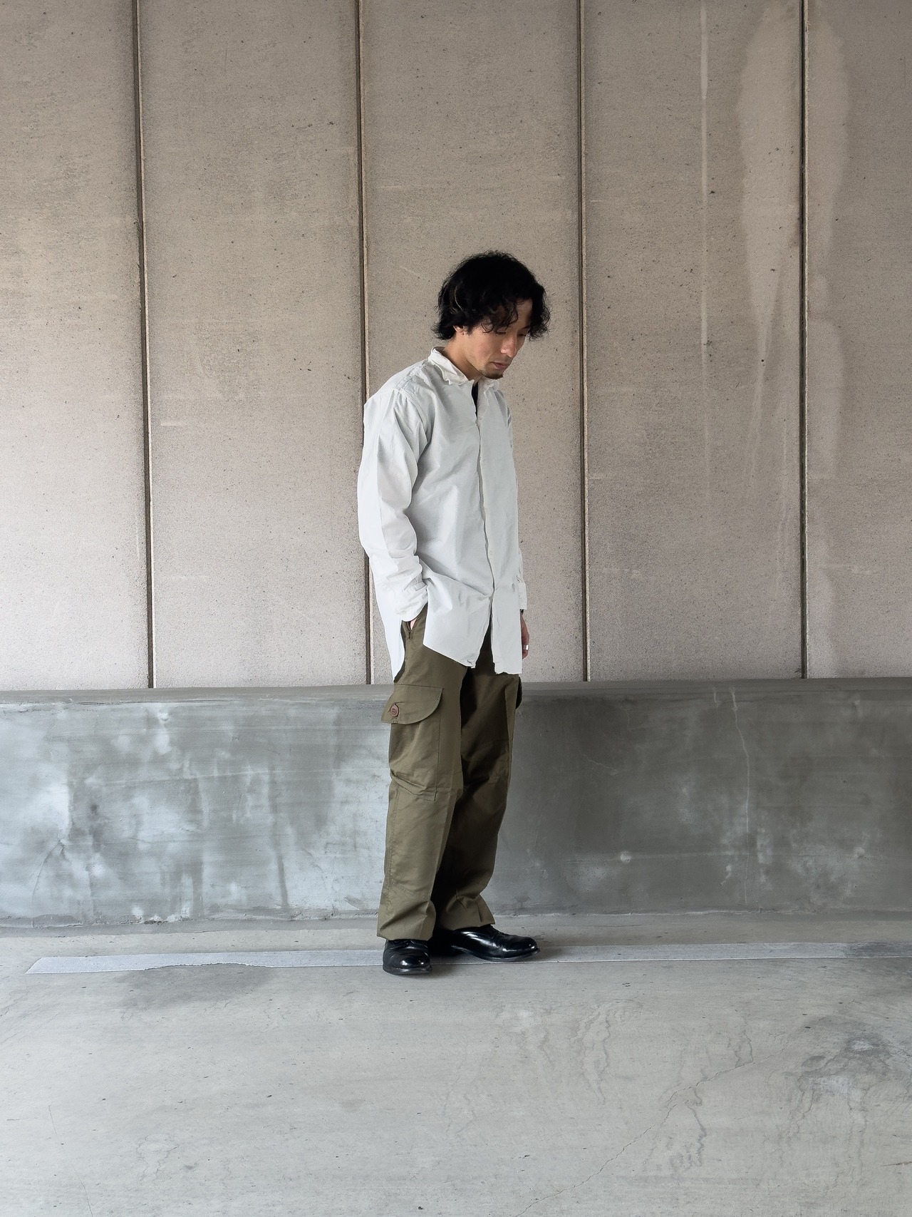 シルエットに特徴があるため、太めのミリタリートラウザーに合わせても野暮ったくならず、洗練された大人のリラックススタイルを演出してくれます。