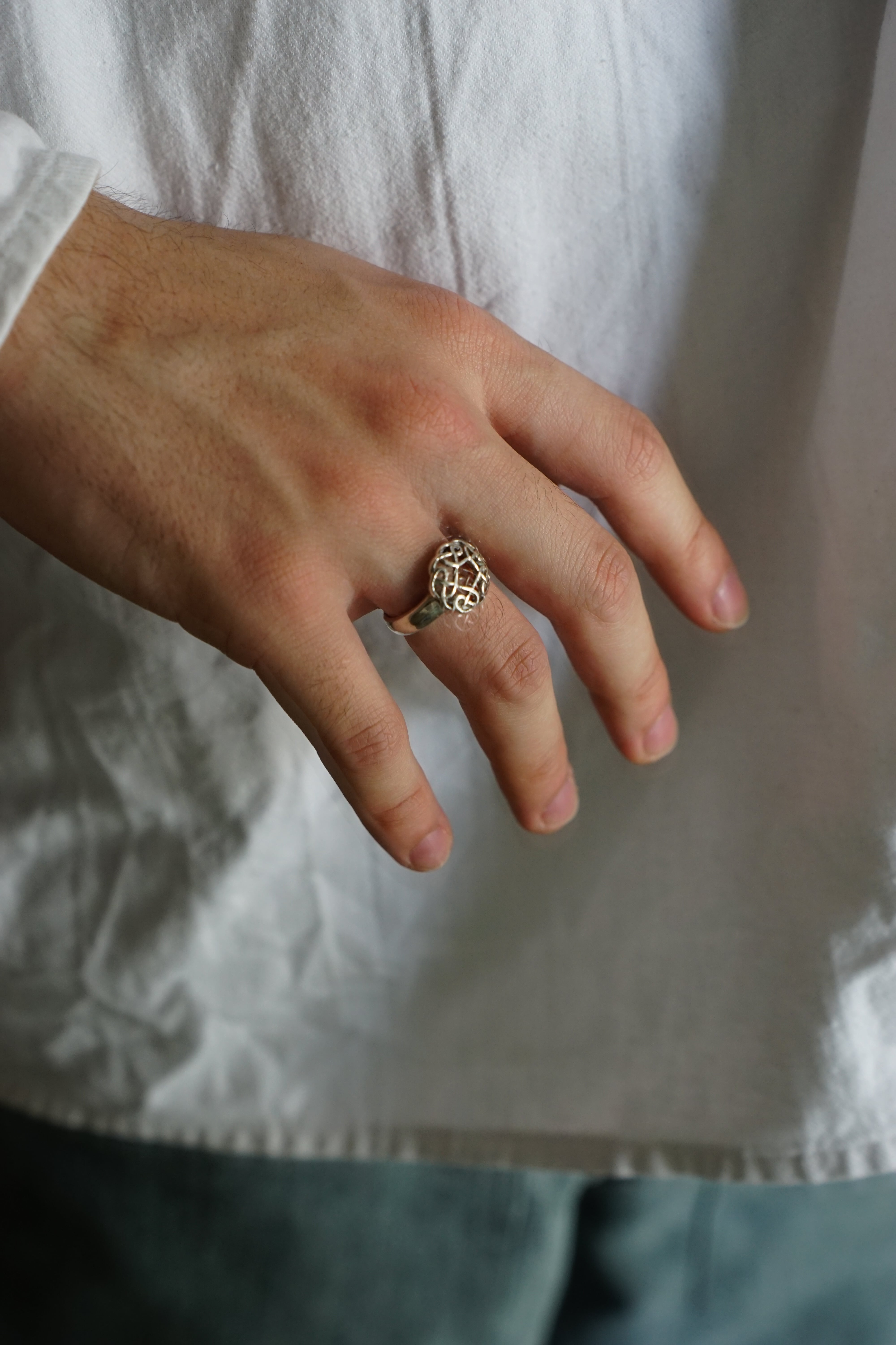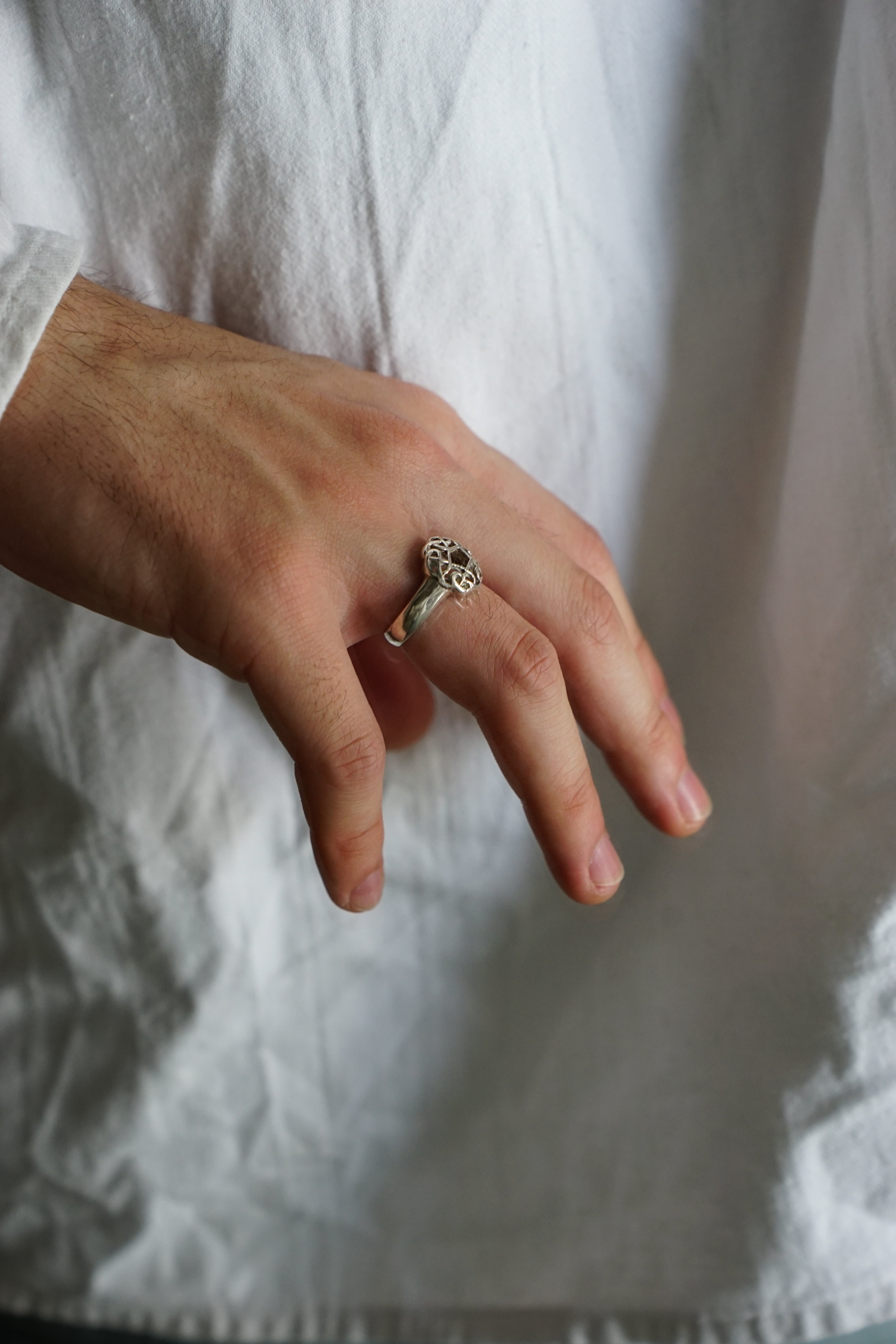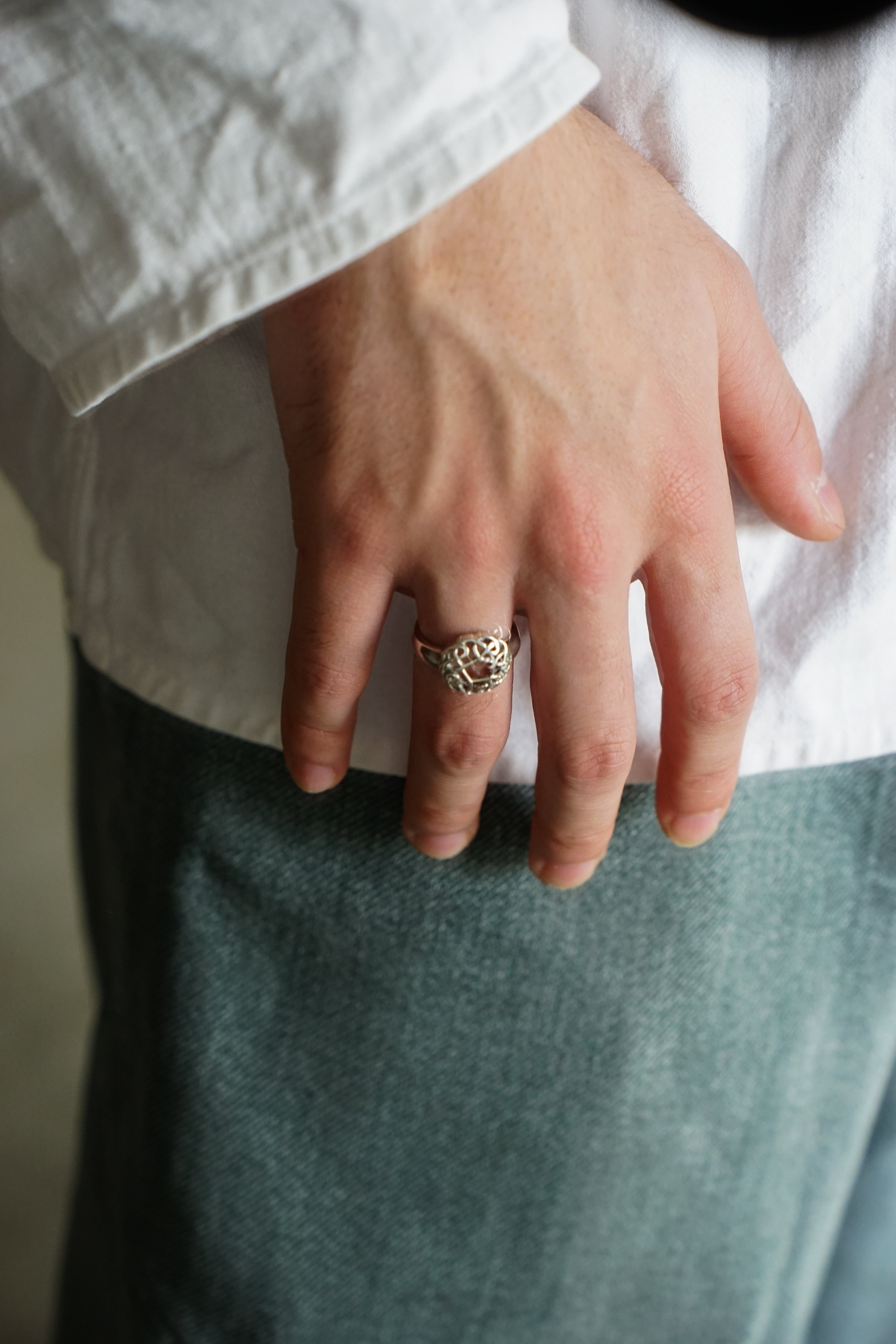 このリングの大きな特徴はフロントに配されたユニークなデザインをしたモチーフ。