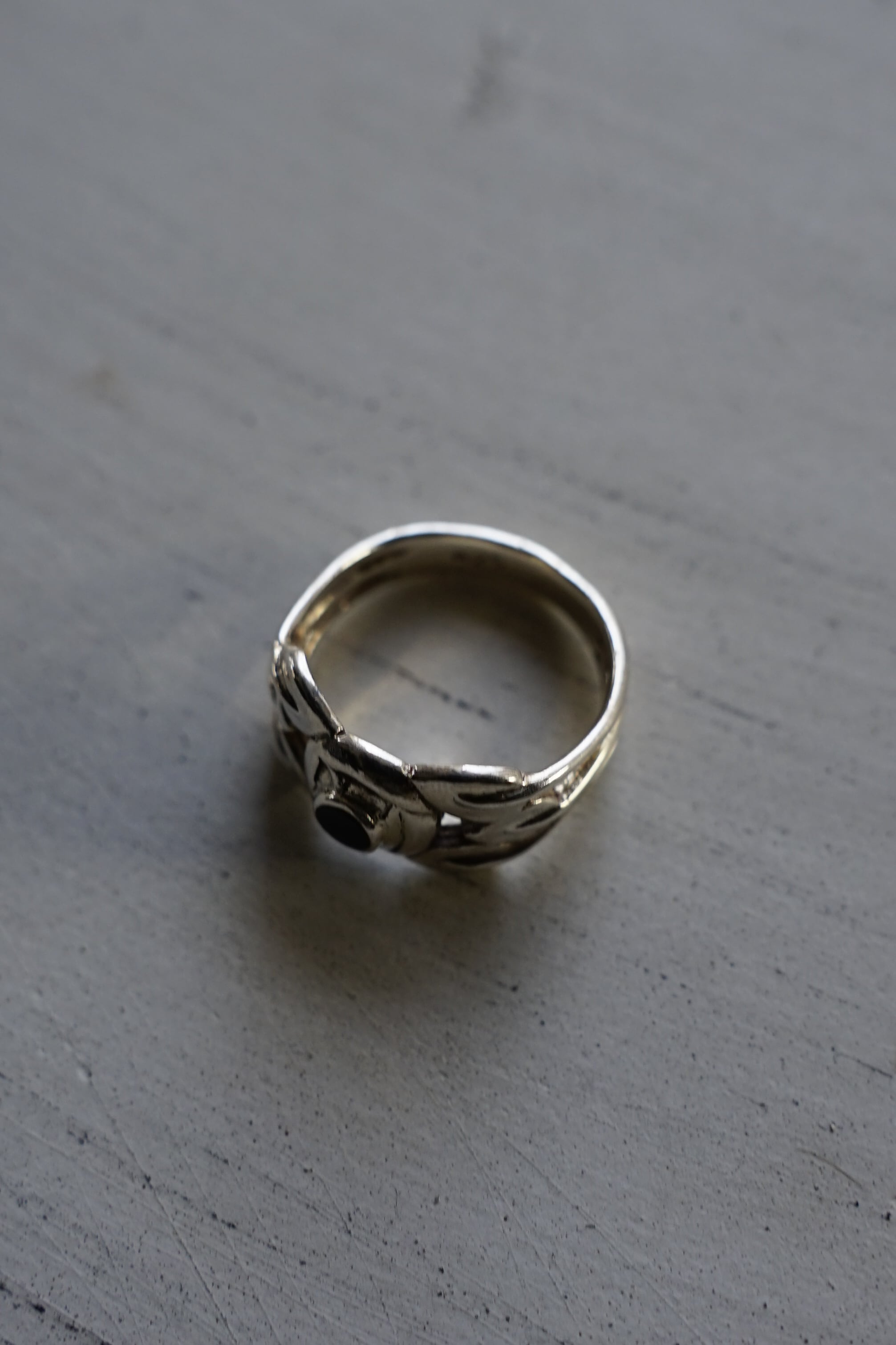 [Vintage] 70〜80's UK Jewelry "Silver925" Botanical Onyx Ring 13.5号