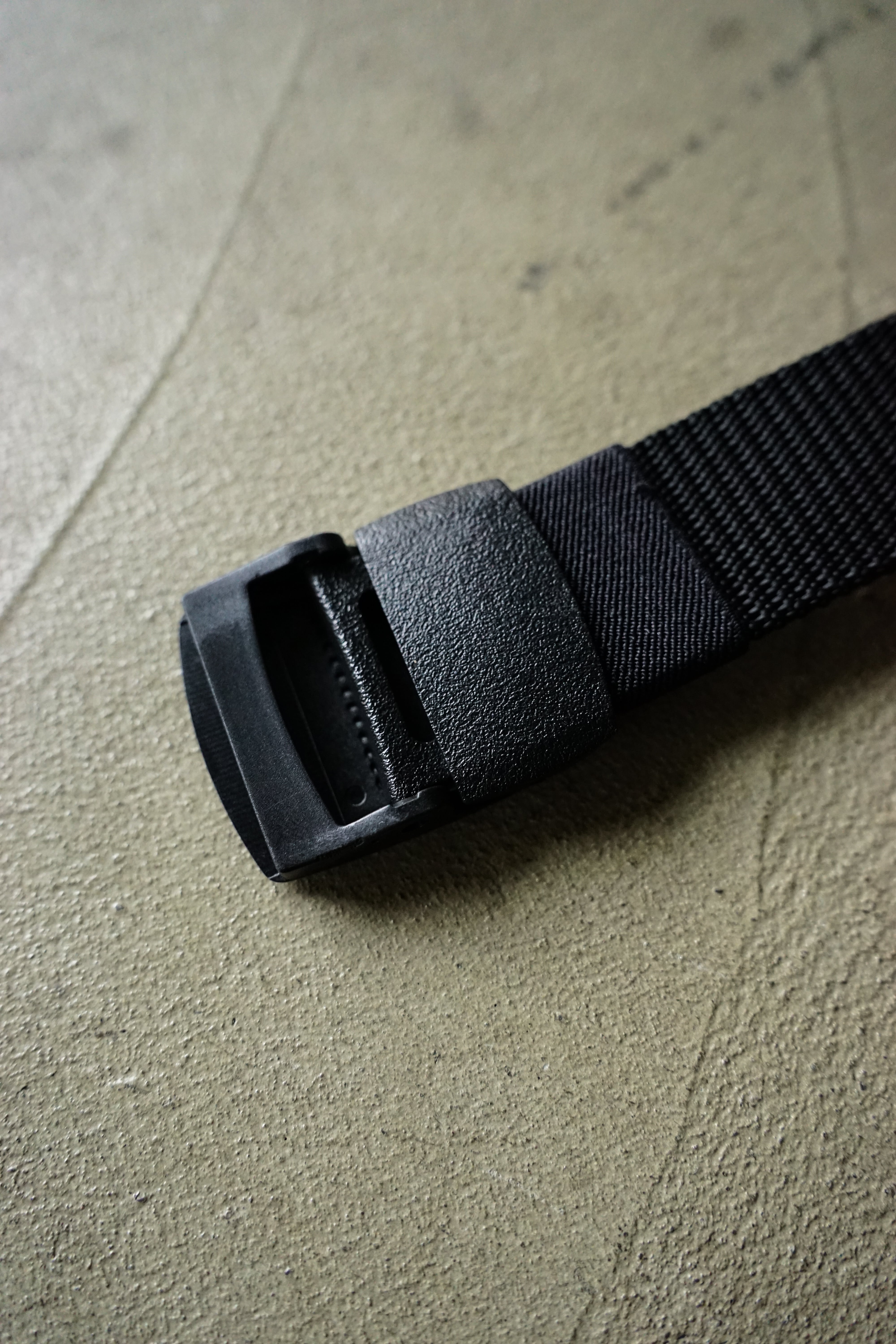 バックル自体はざらっとしたマットな質感と、ベルト穴がなく自由に長さを調整できる機能美を兼ね備えた、非常に使い勝手の良い作りが魅力となっています。