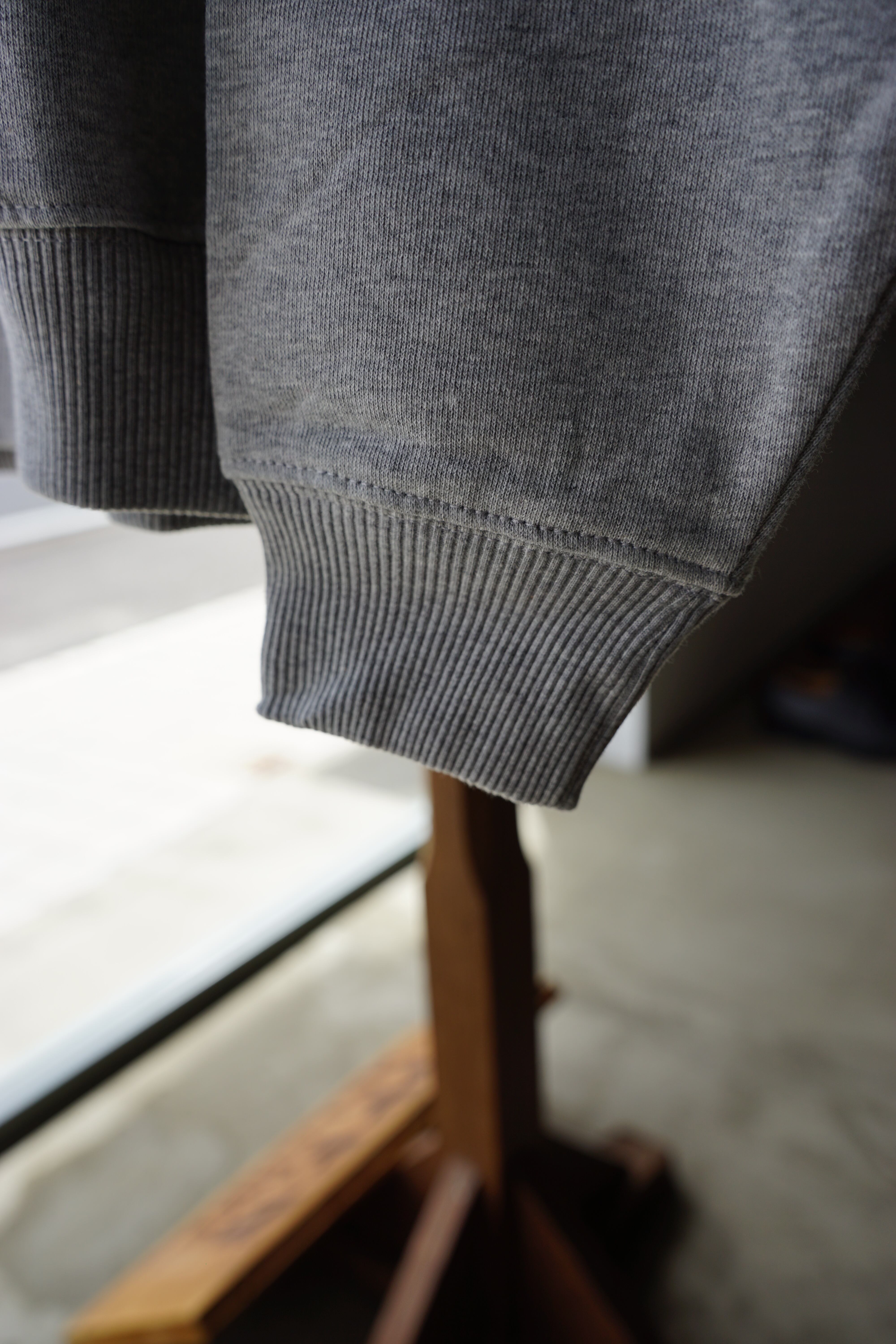 ボディには杢グレーの柔らかなスウェット生地を採用。