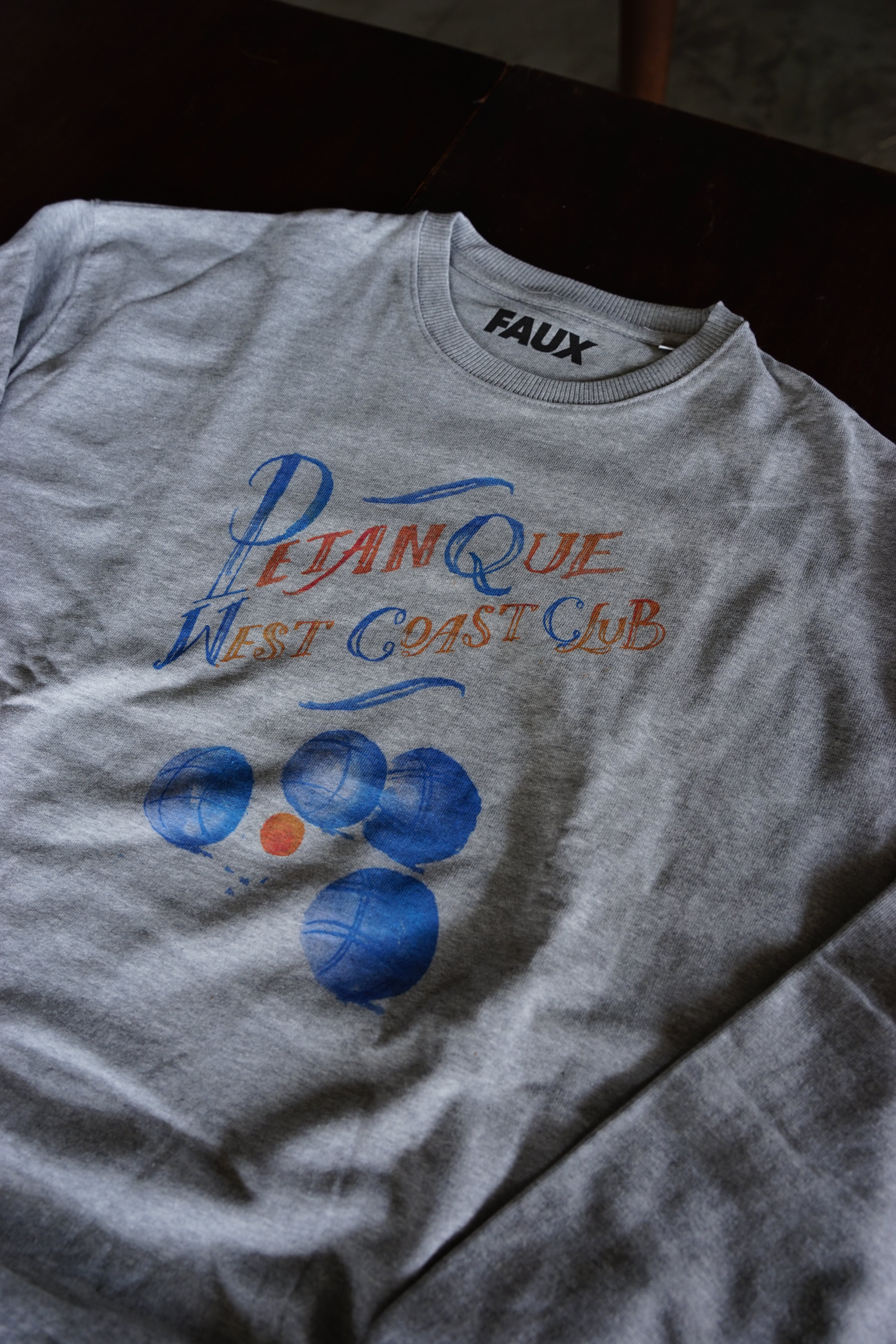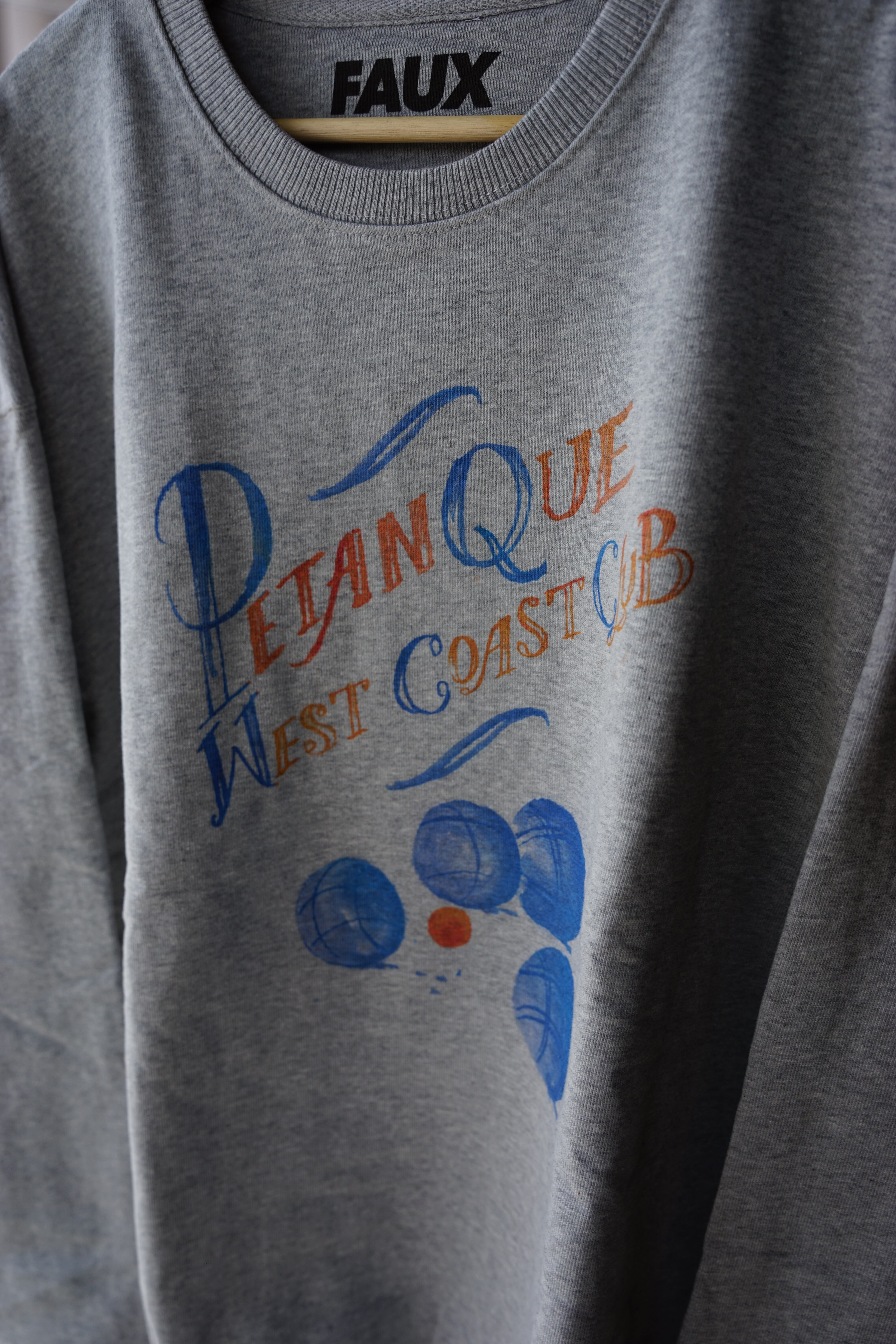 [FAUX](XLサイズ相当) "PETANQUE WEST COAST CLUB" Printed Sweat Shirt Gray